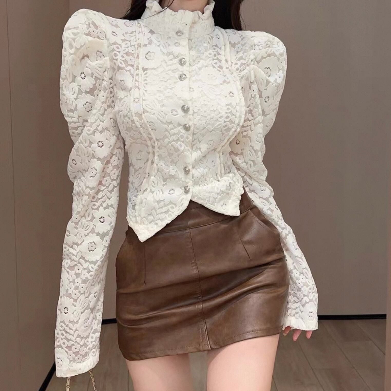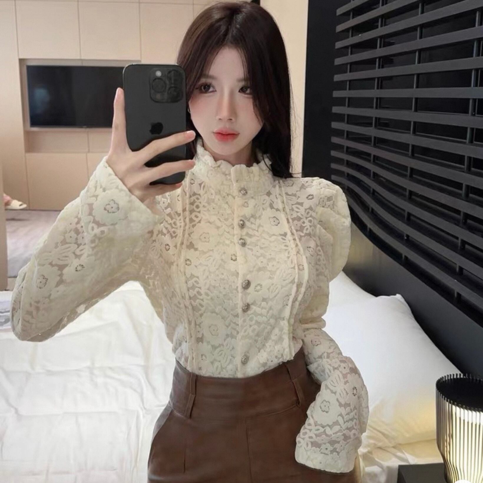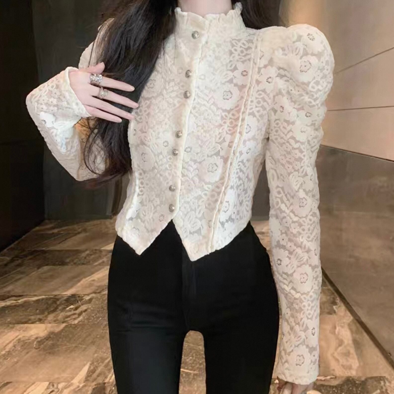 【tops】レースデザインタイトブラウス2色 HK0225