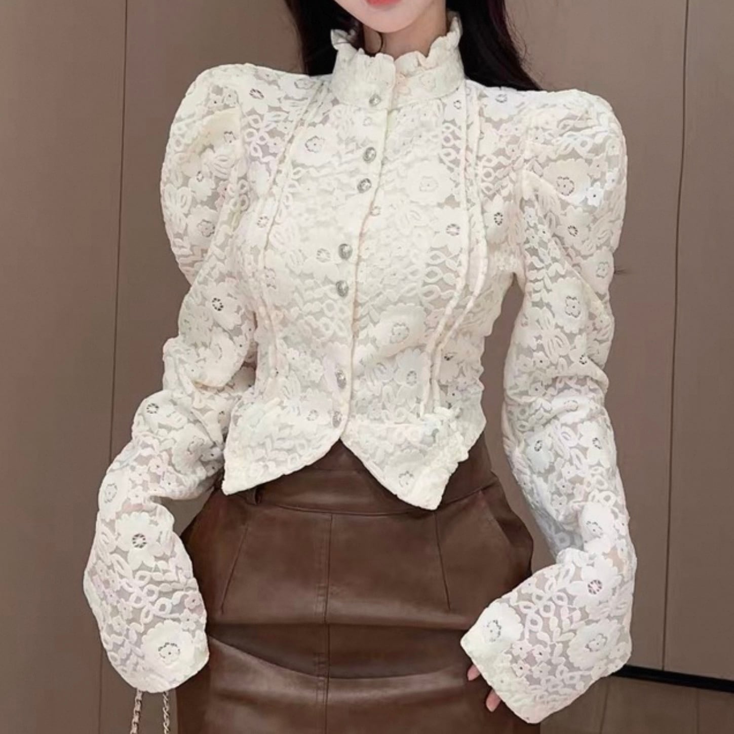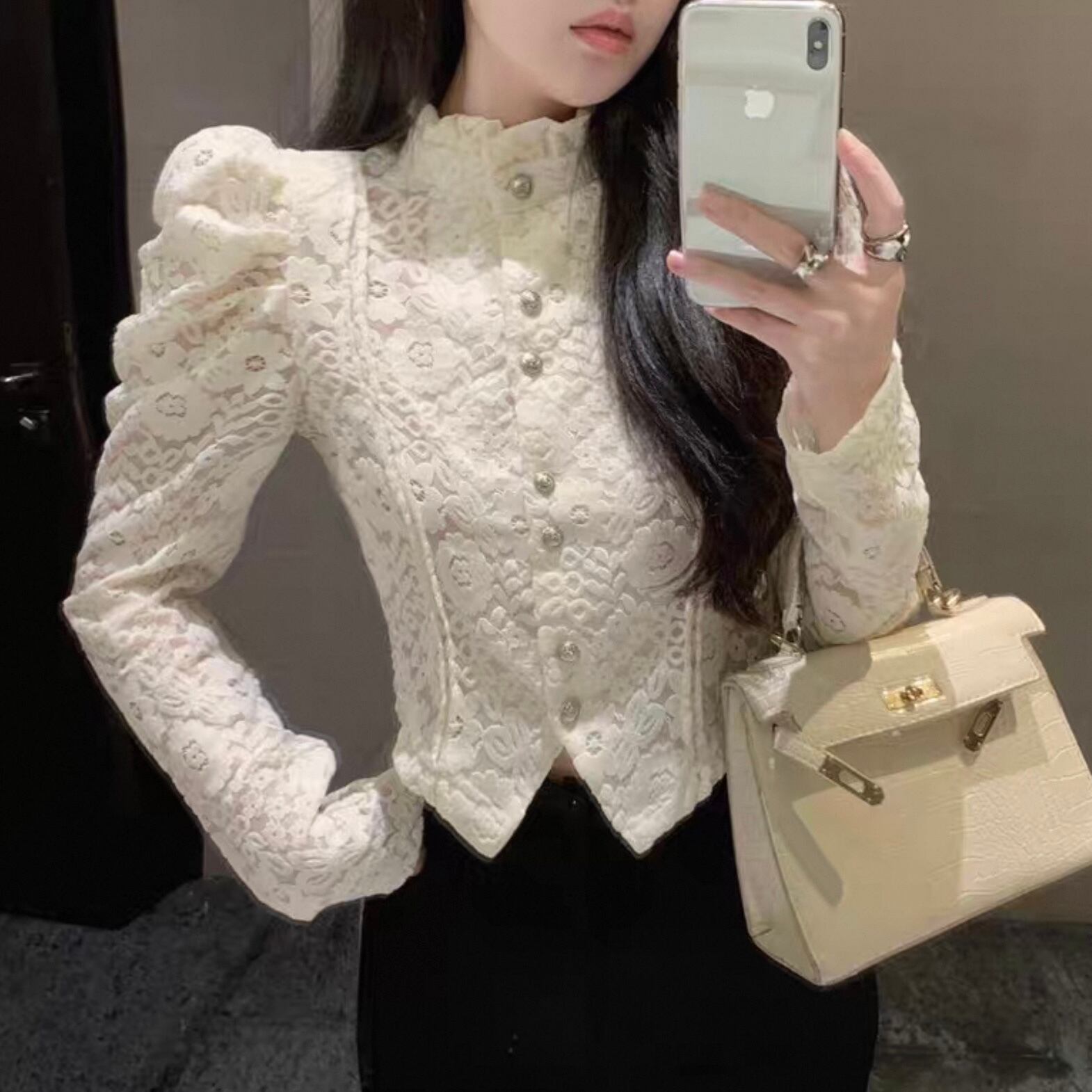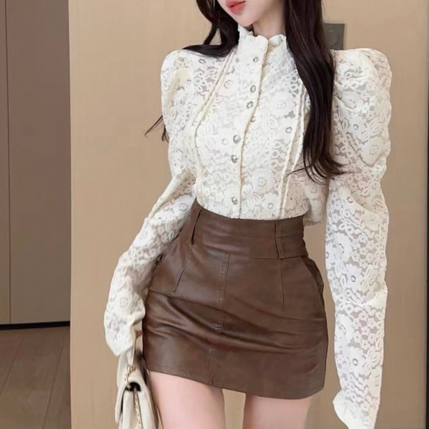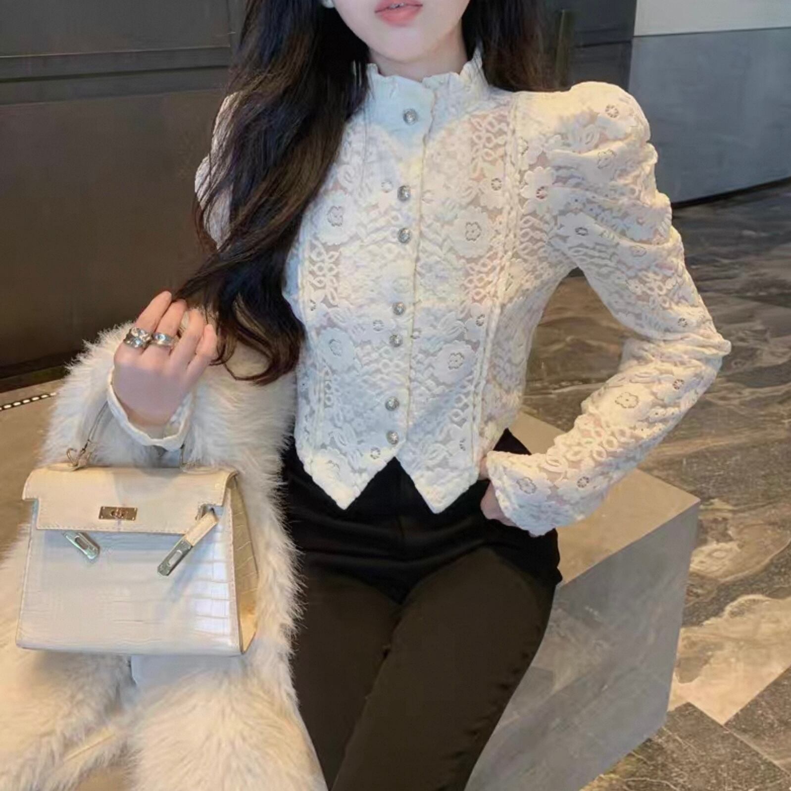【tops】レースデザインタイトブラウス2色 HK0225