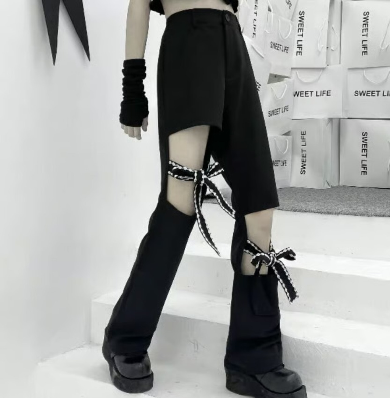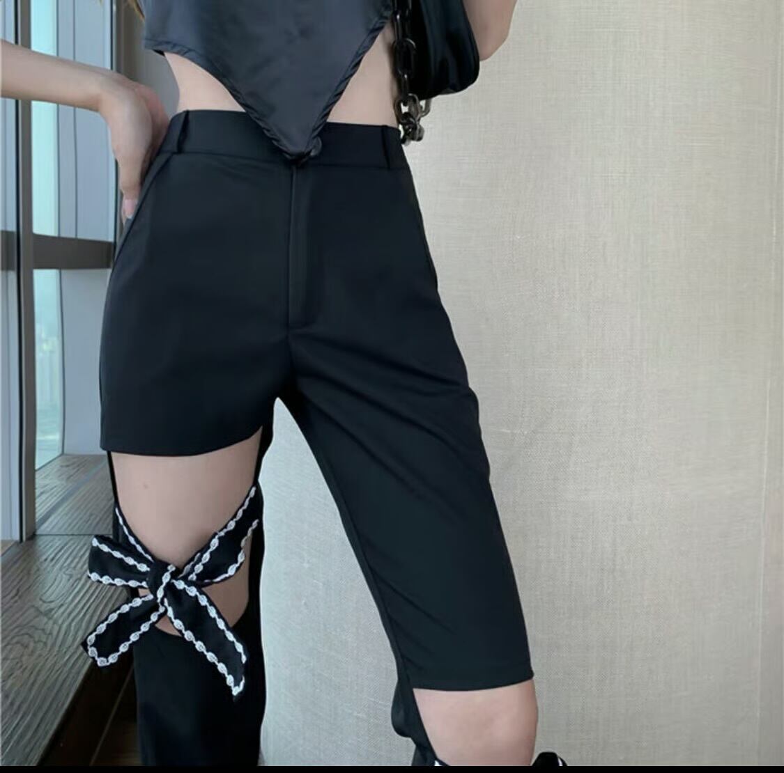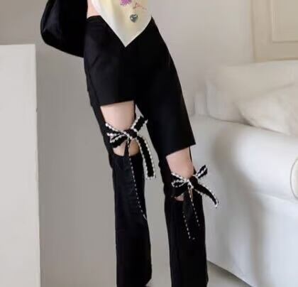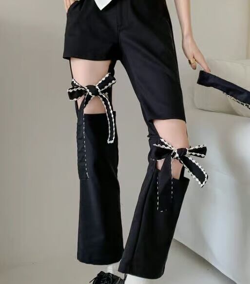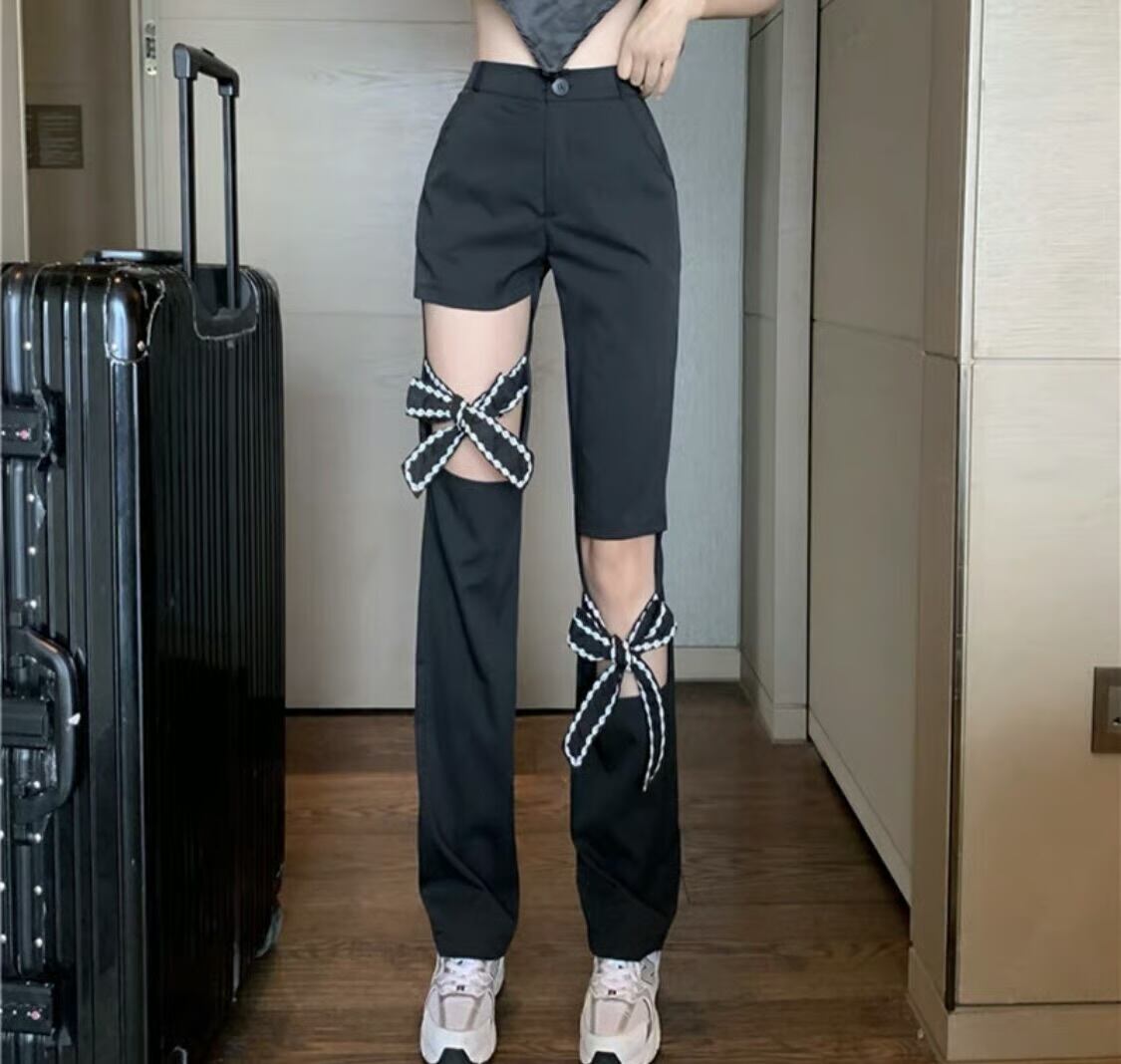 【bottoms】リボンくり抜きデザインパンツ HK0228