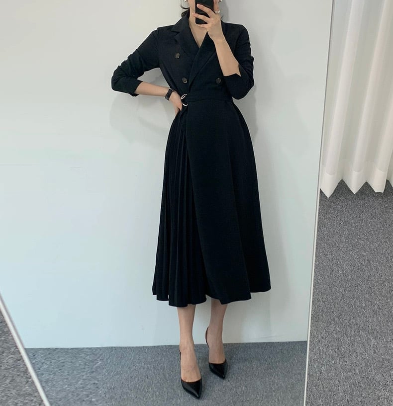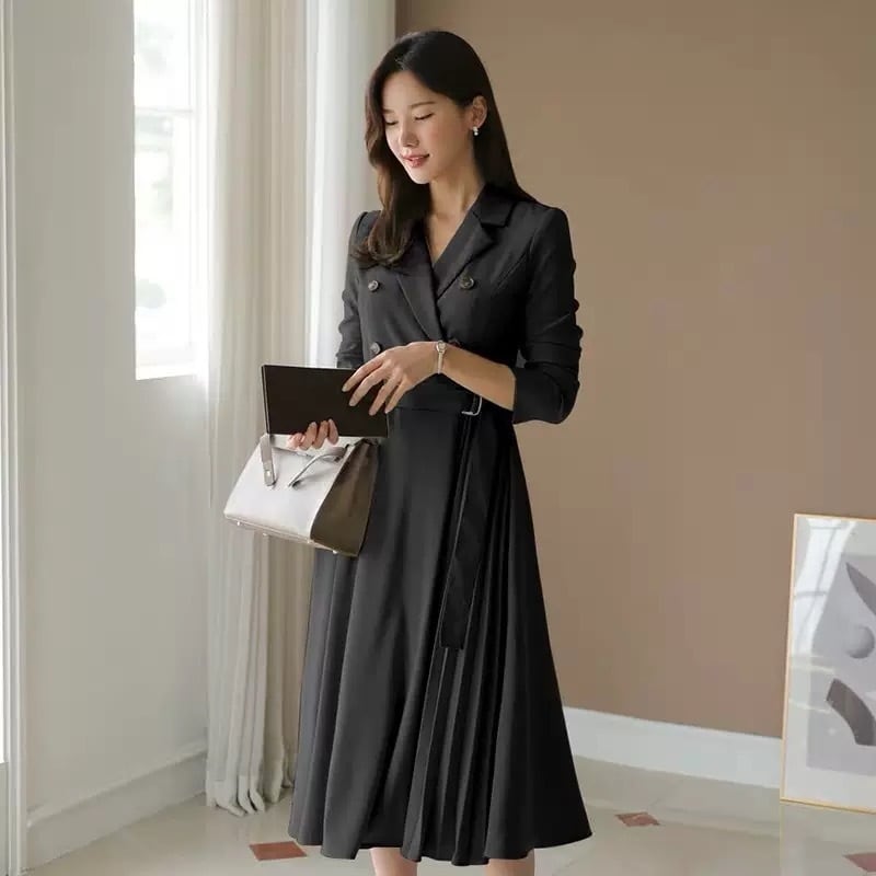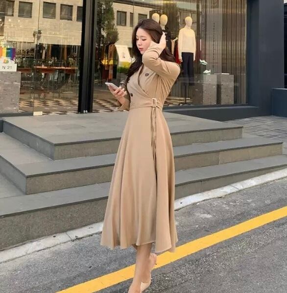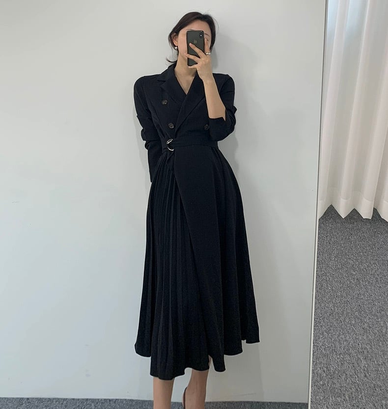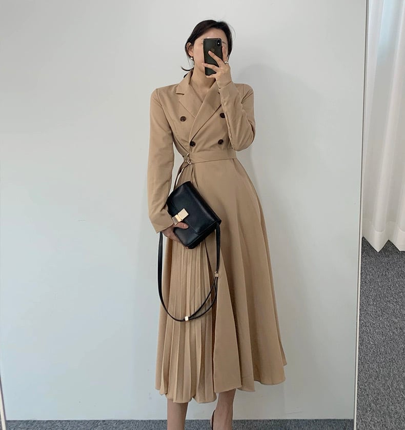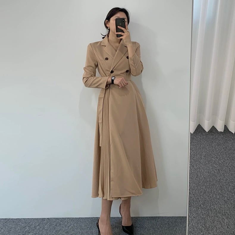【dress】リボンベルト付きプリーツシャツワンピース2色 HO2904