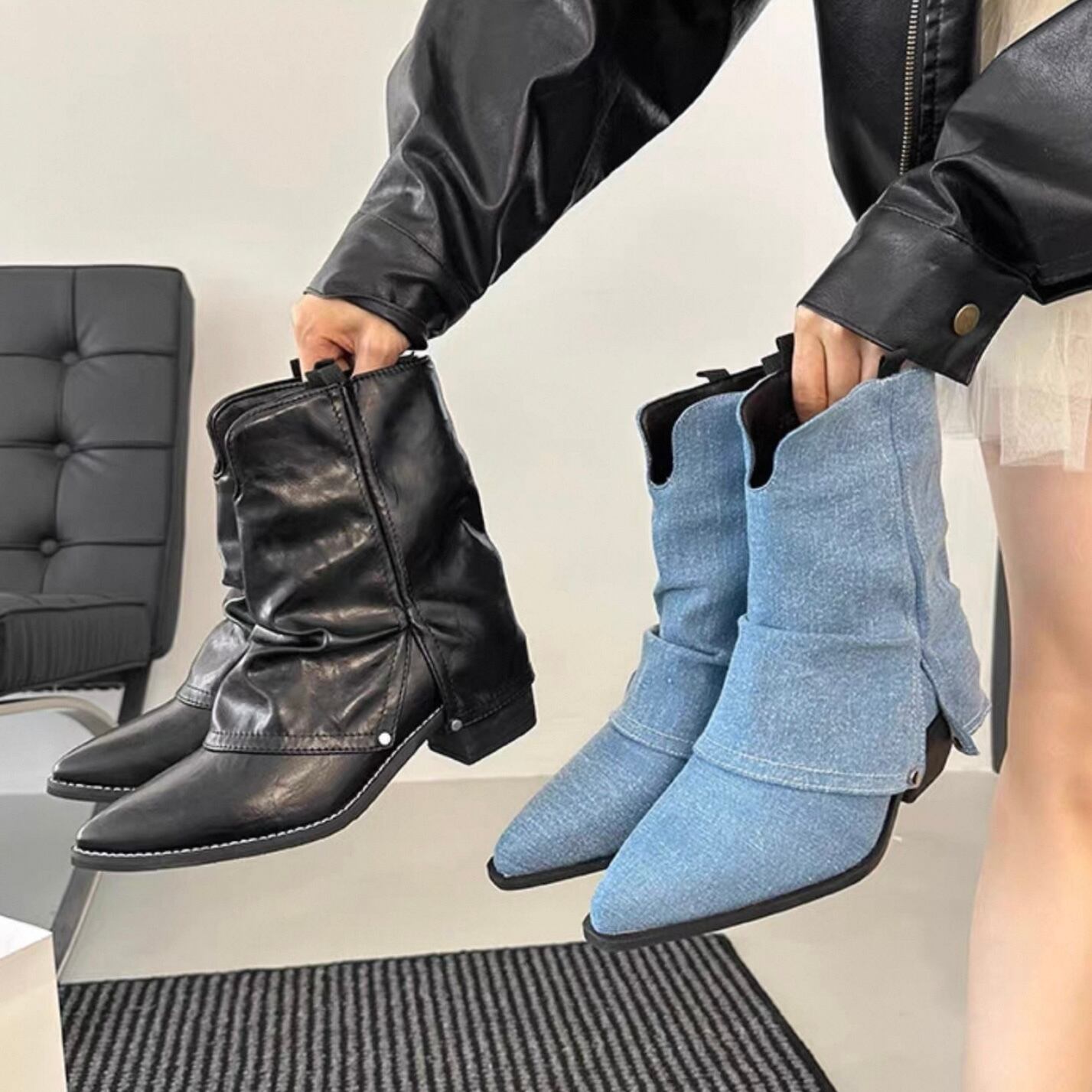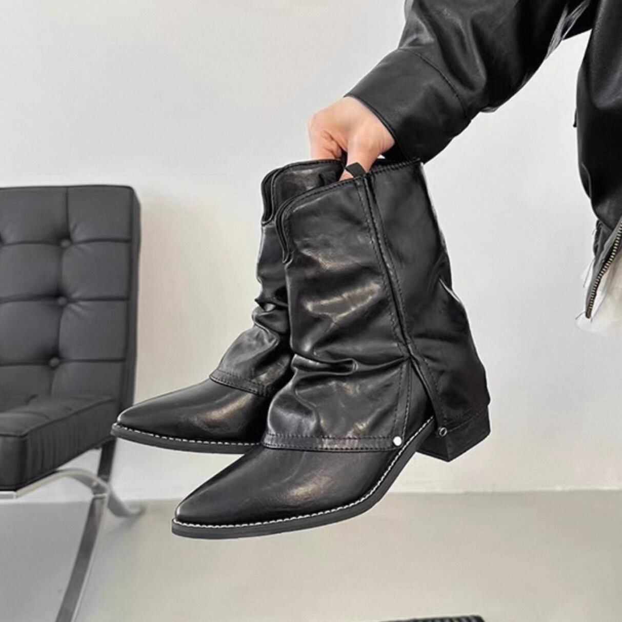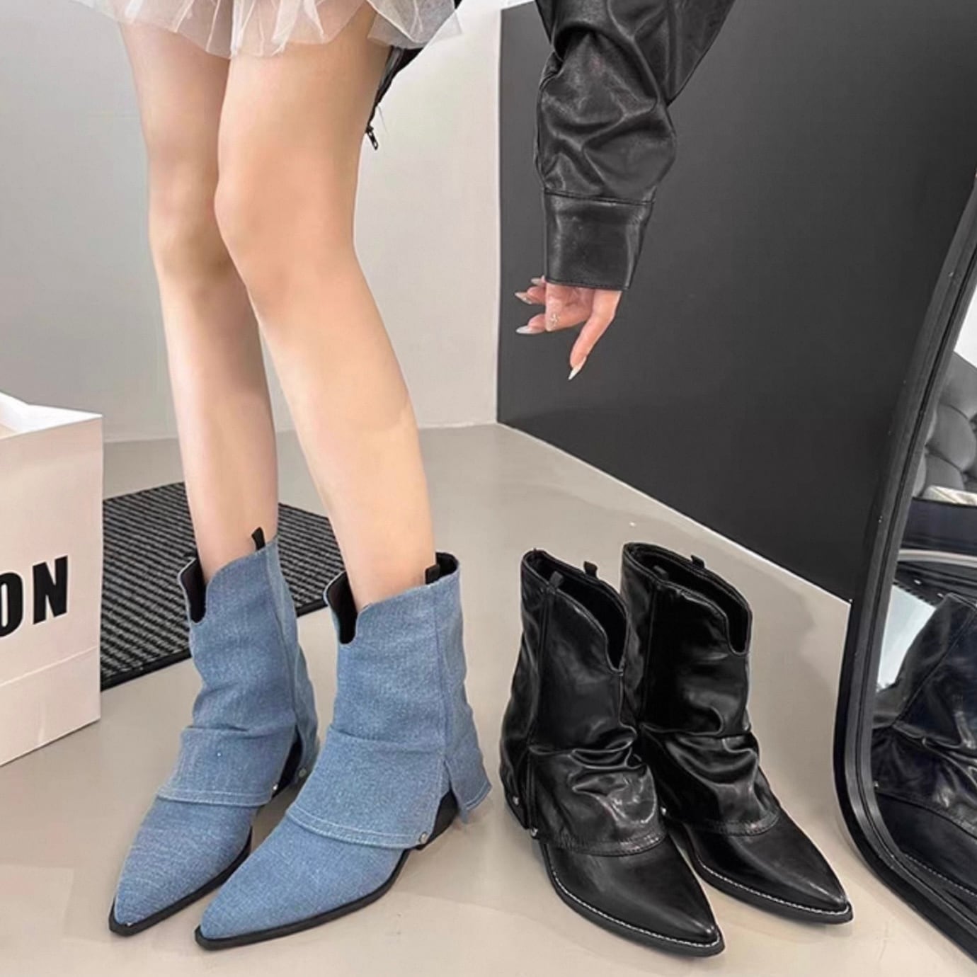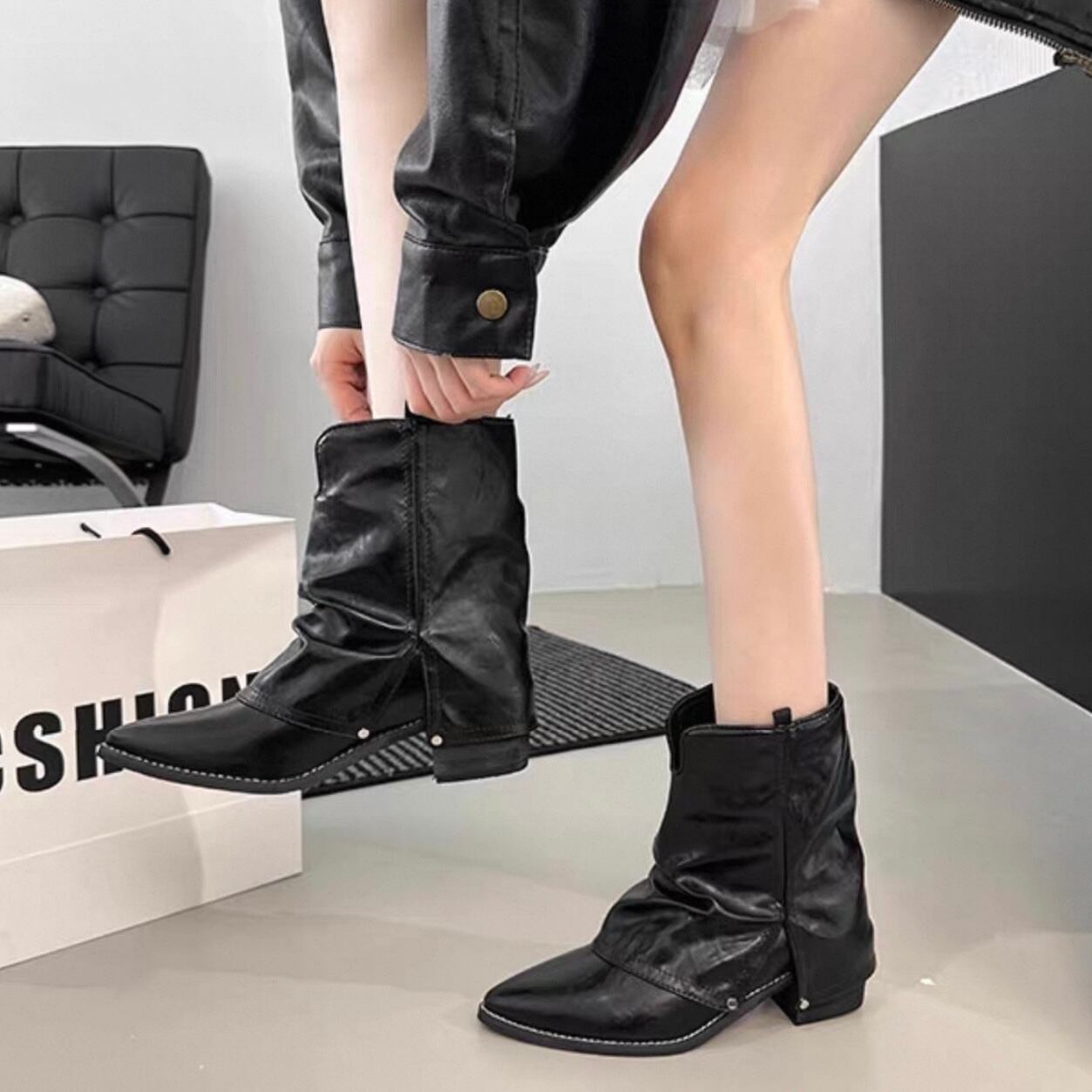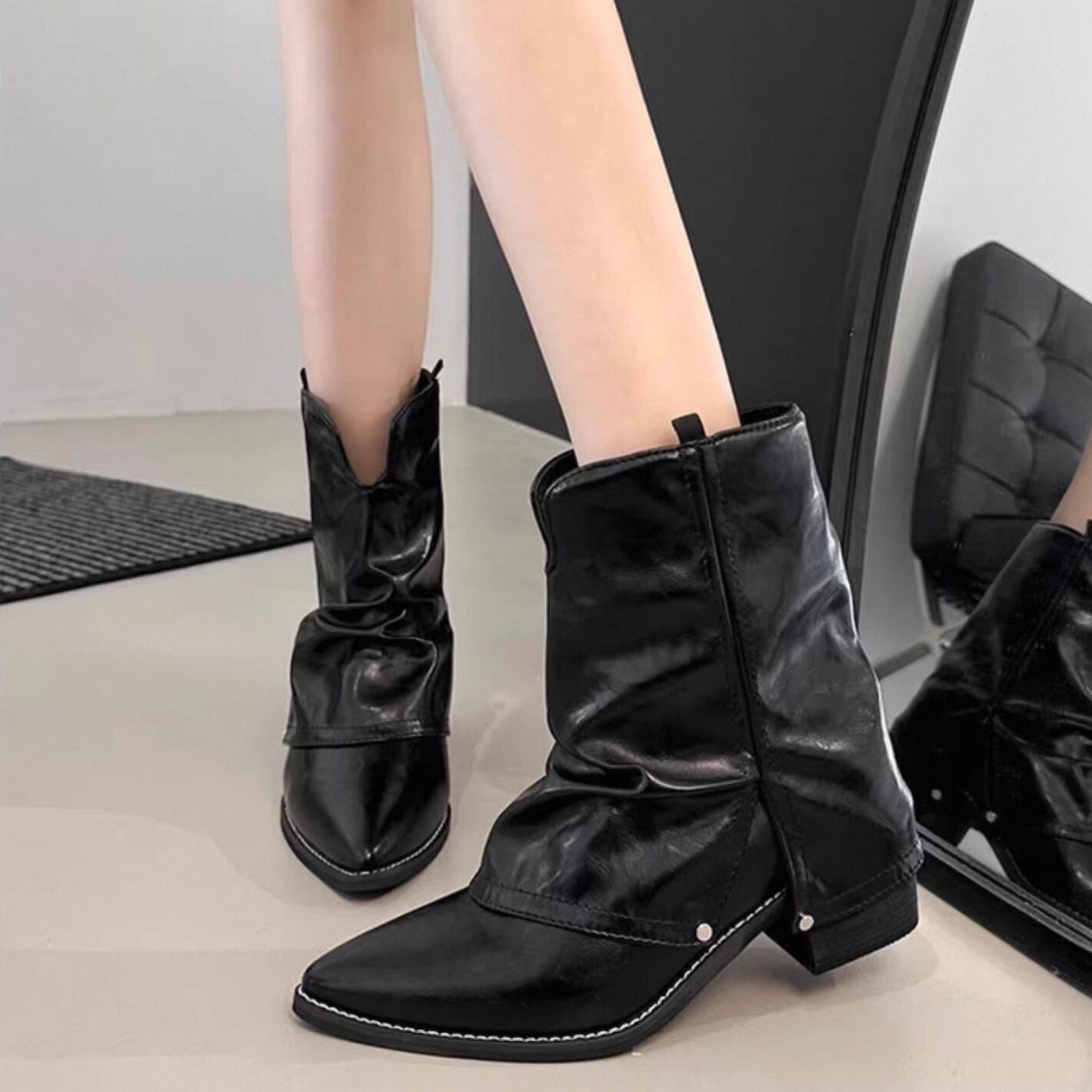 【shoes】ポインテッドトゥショートブーツ2色 HK4557