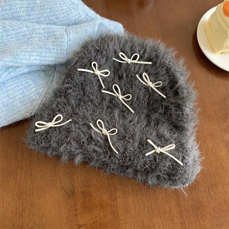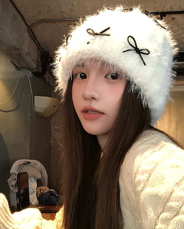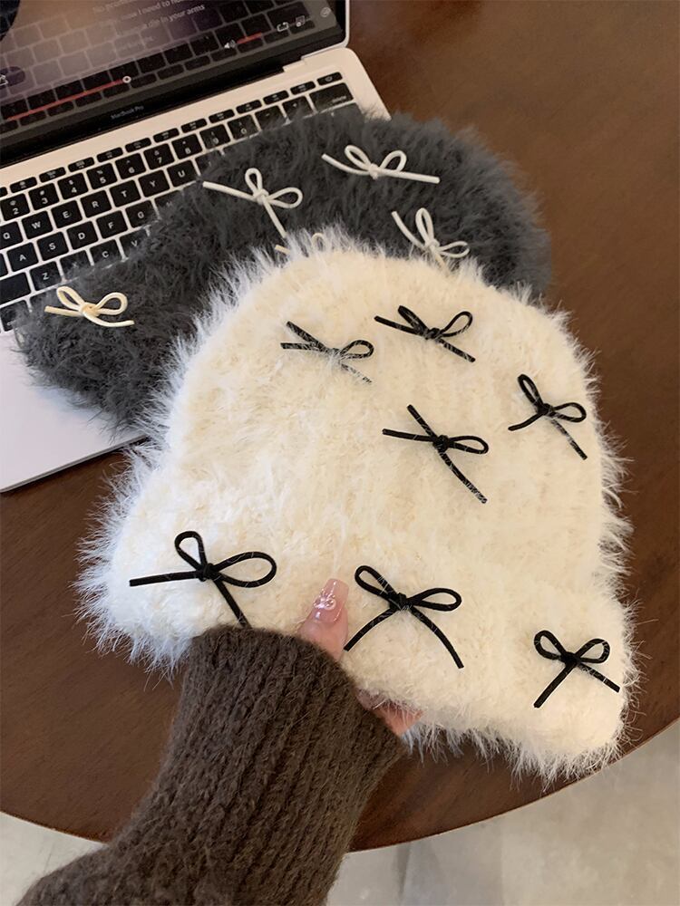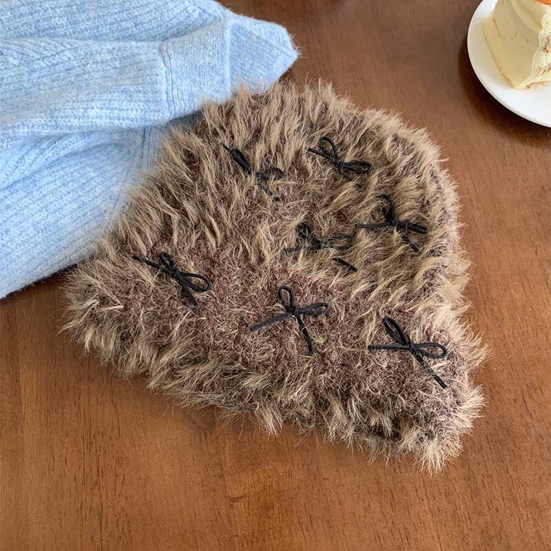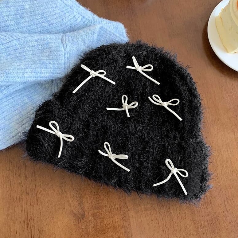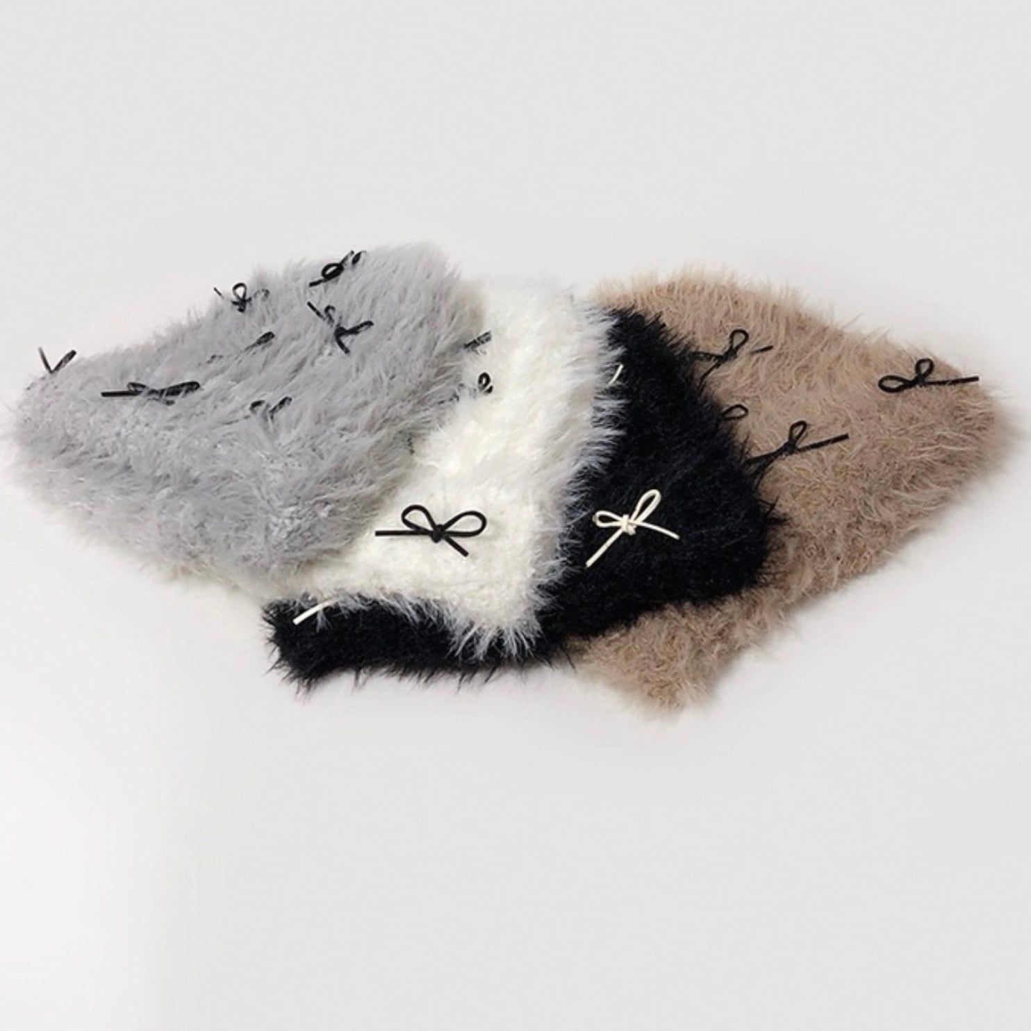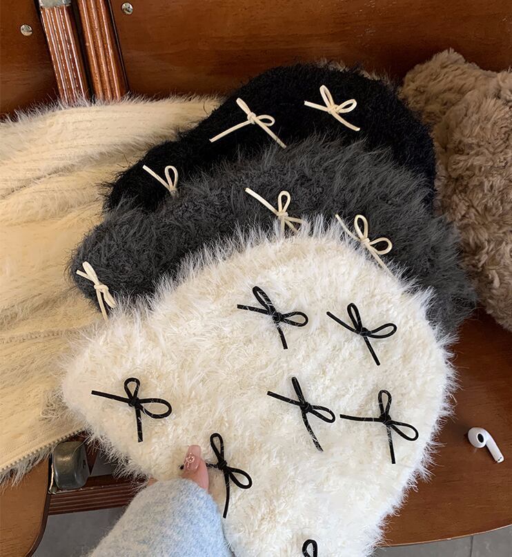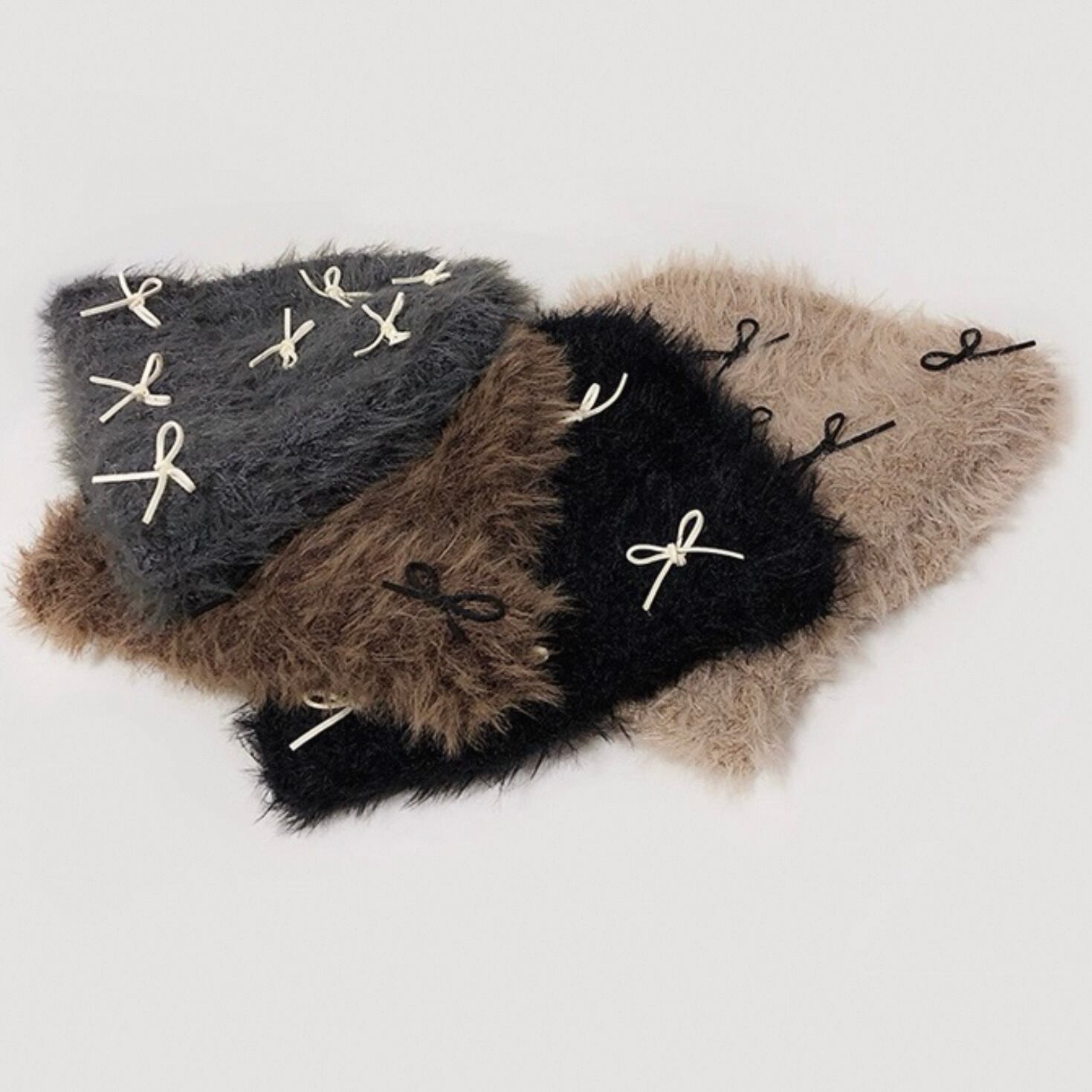 【雑貨】ふわふわファーリボンニット帽5色 HK0239