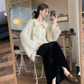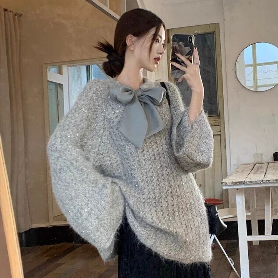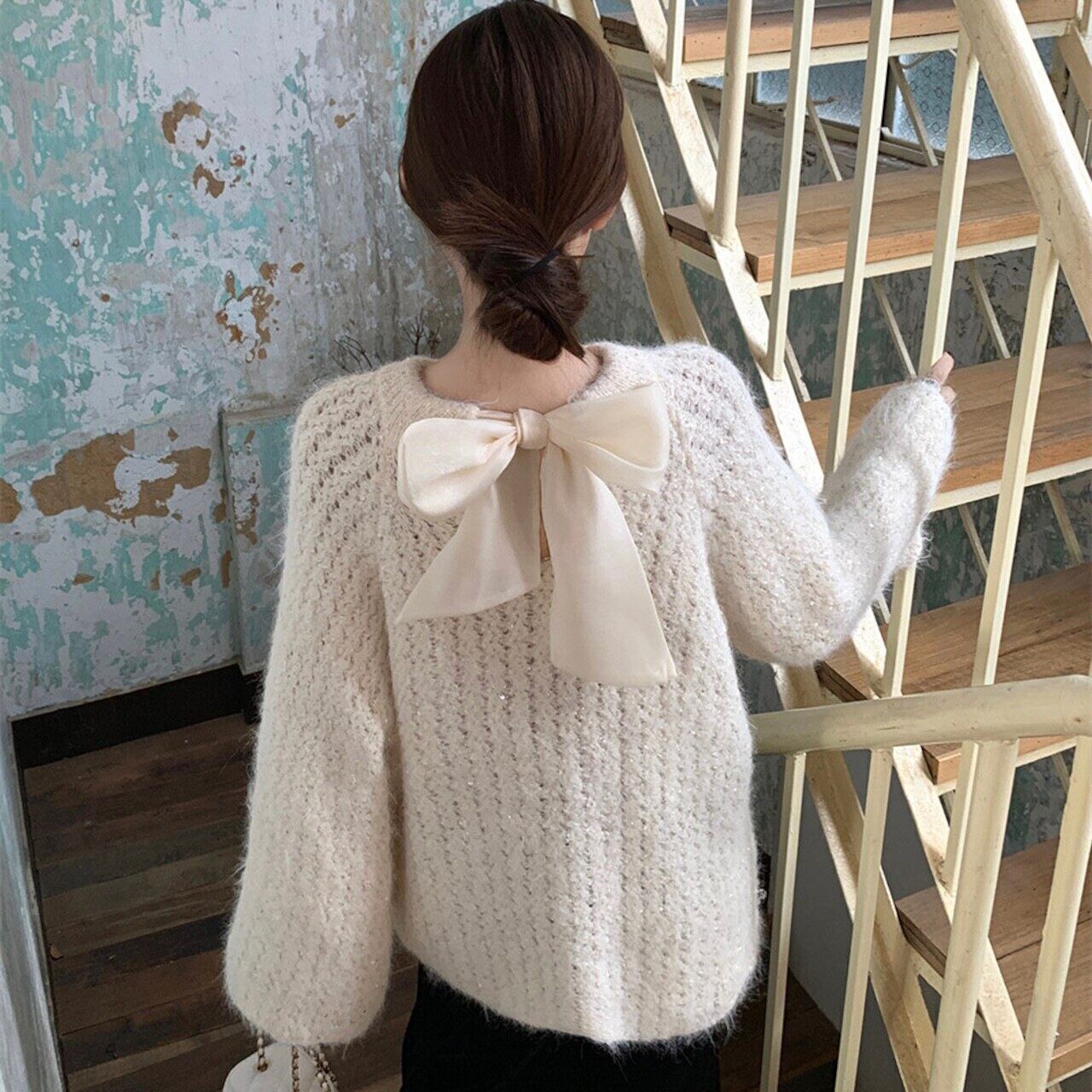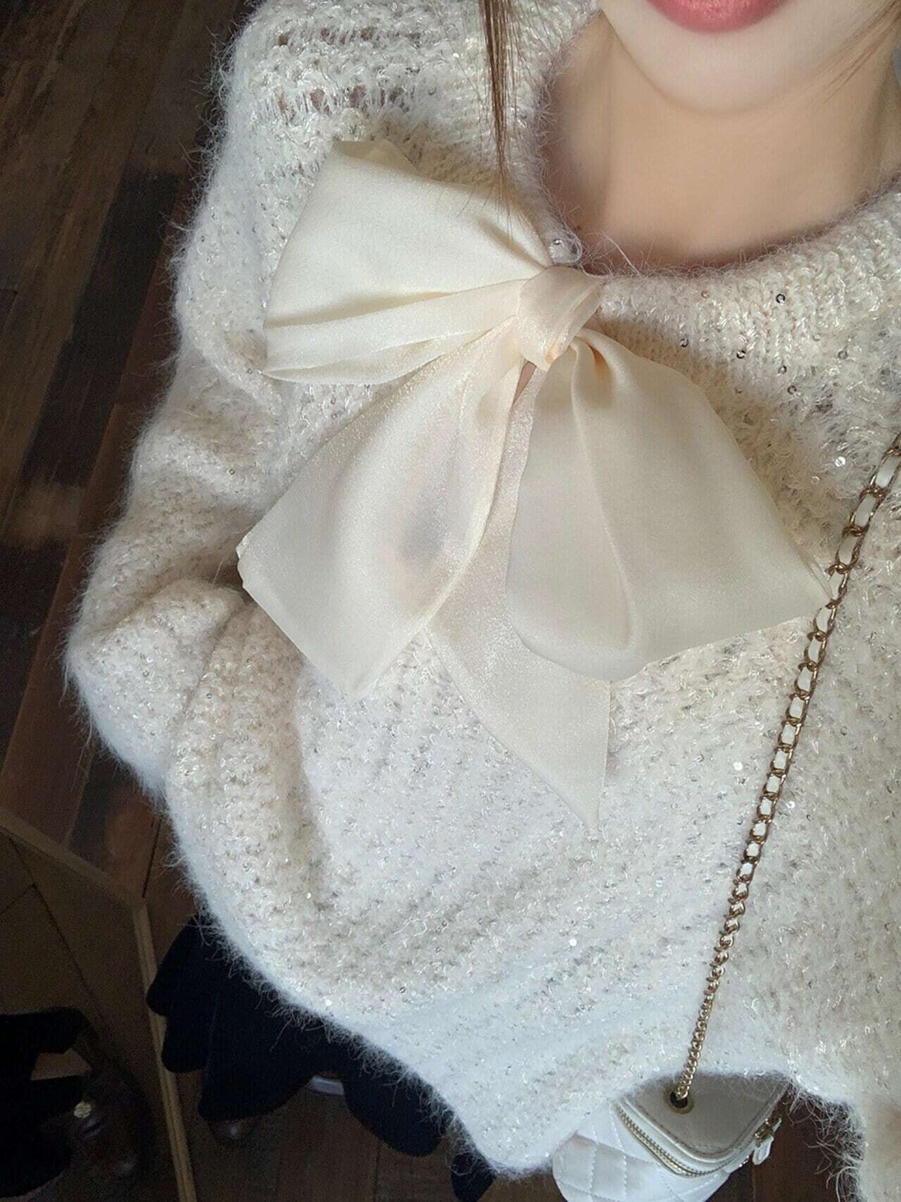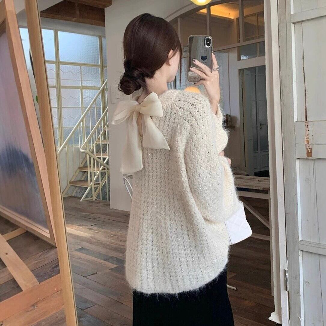 【tops】2wayリボンラメ入りニットトップス2色 HK0244