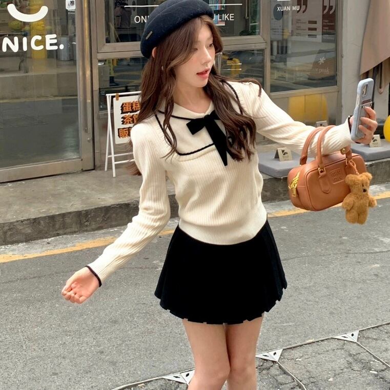 【tops】配色ニットトップス HN0200