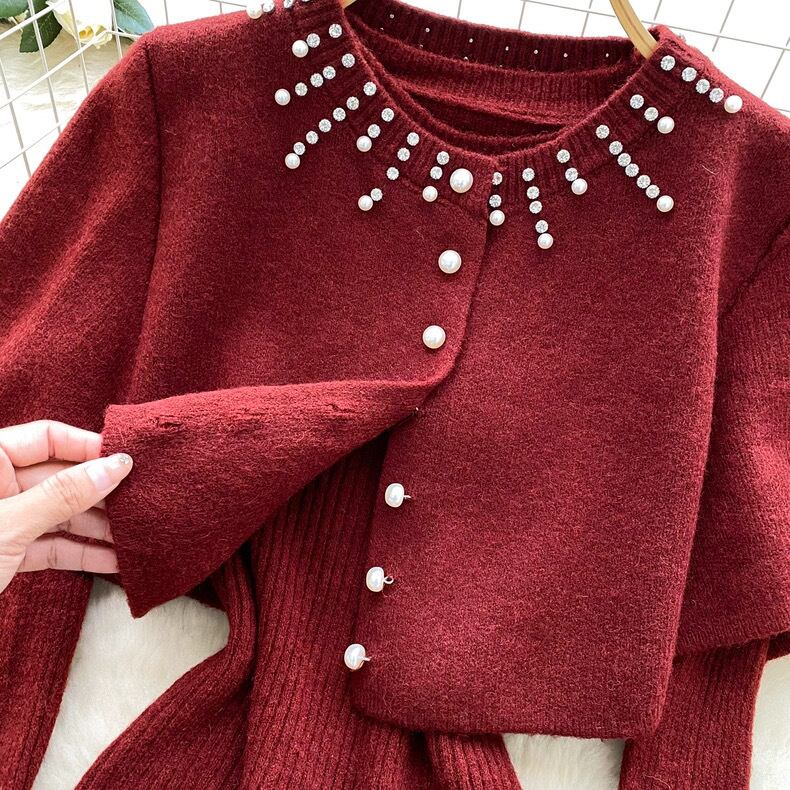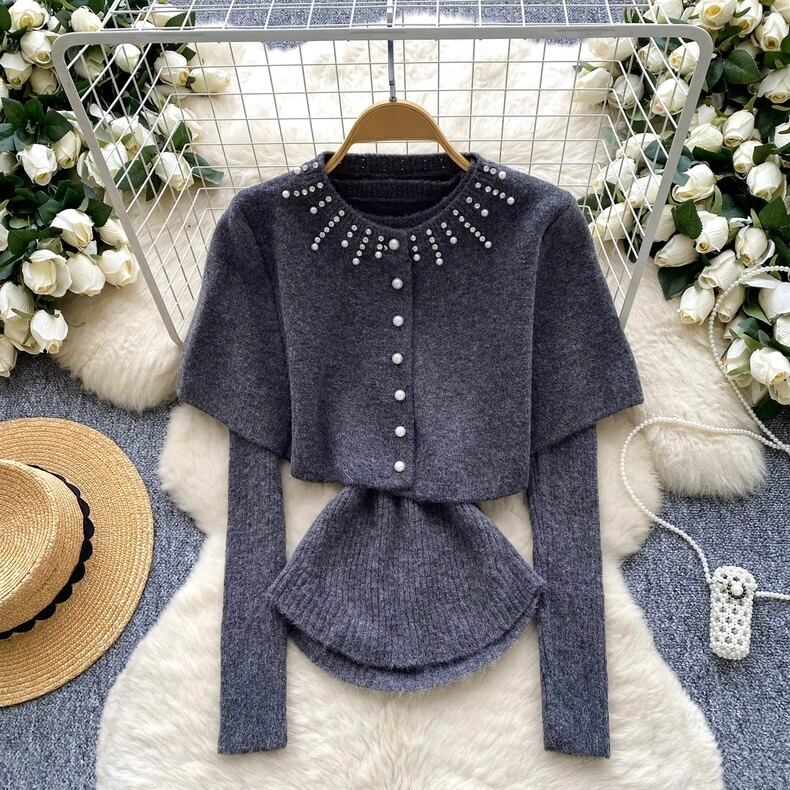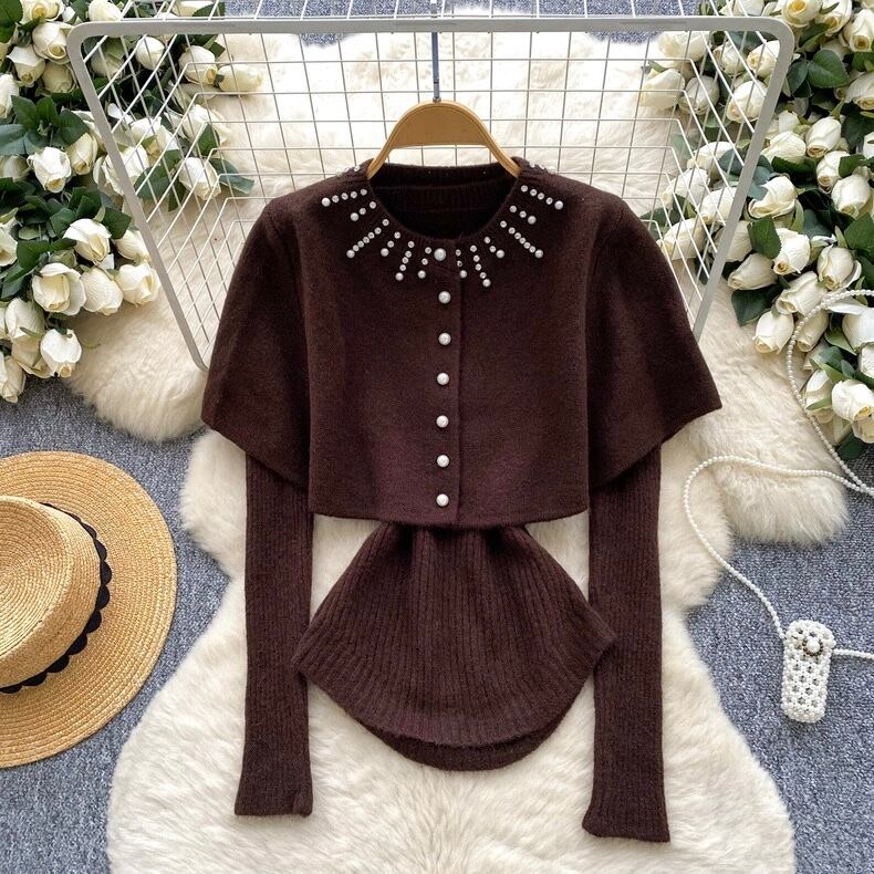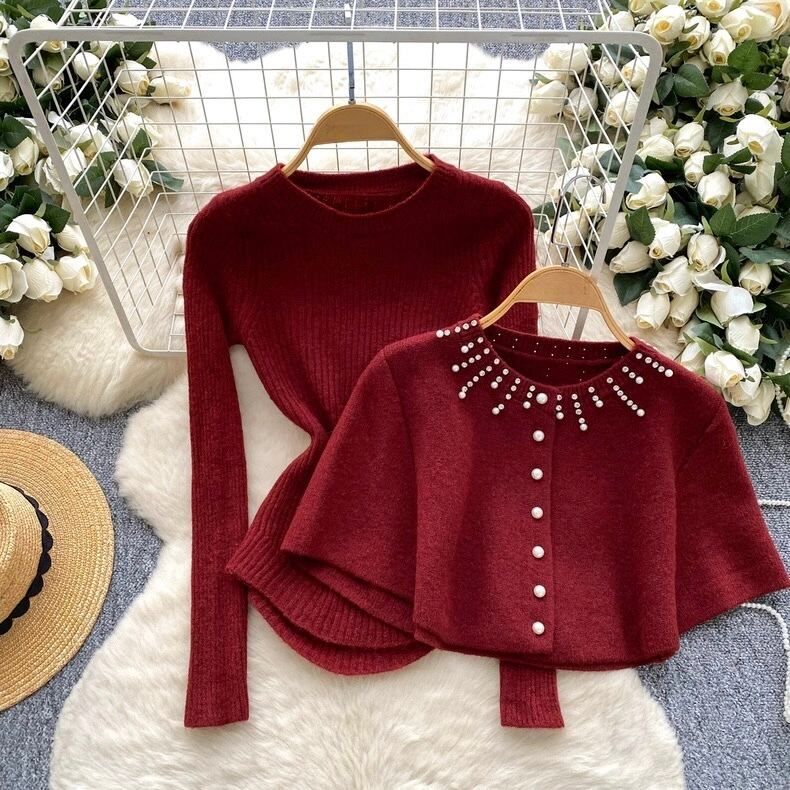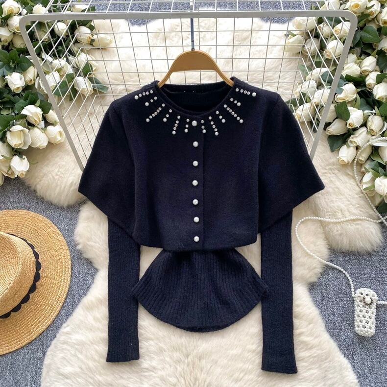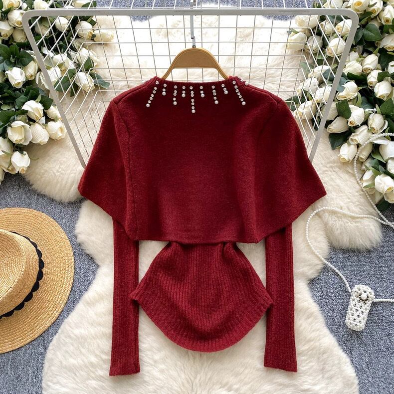 【set】ケープx長袖ニットトップス5色 HN0203