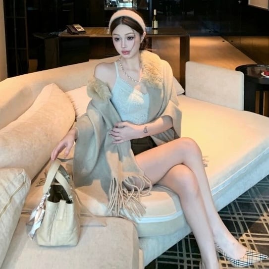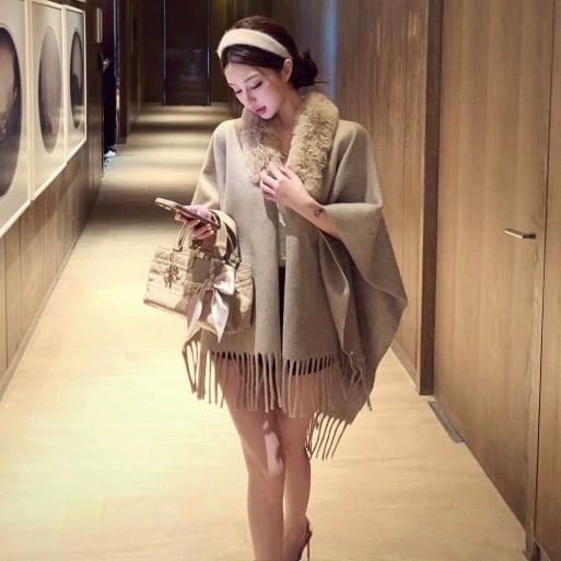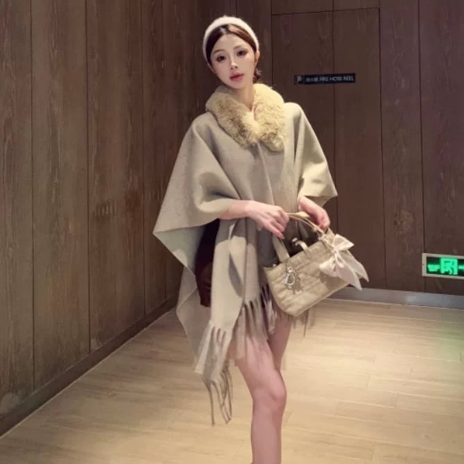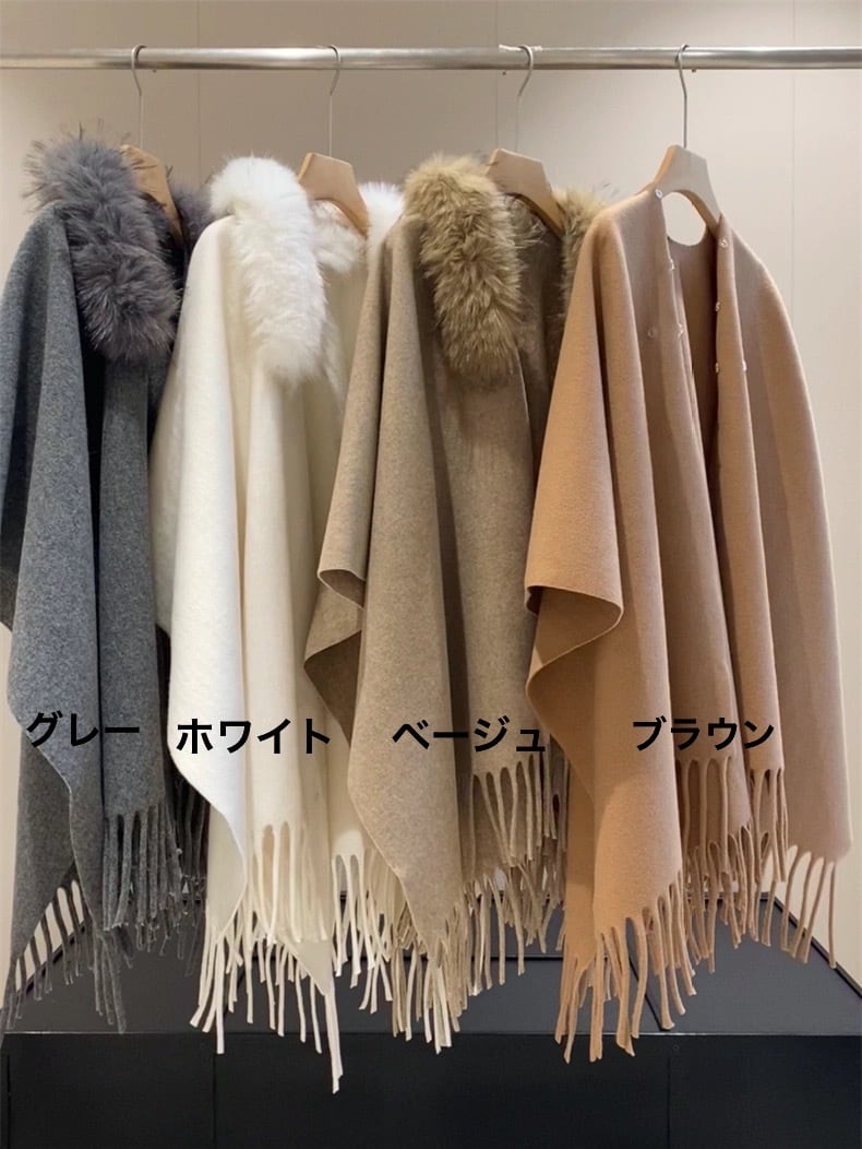 【雑貨】2wayファー付きポンチョ4色 HN0003