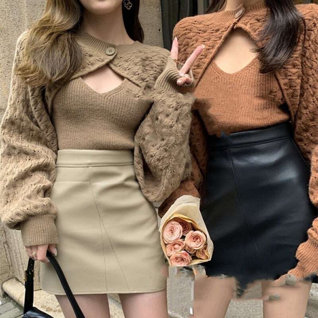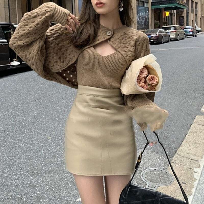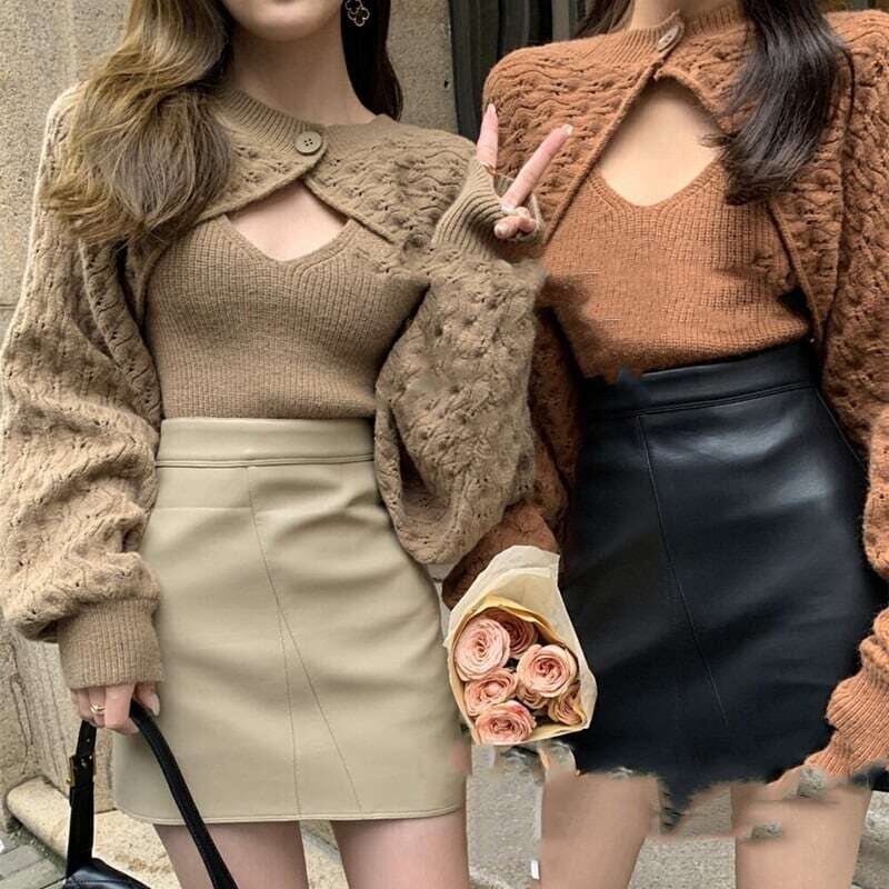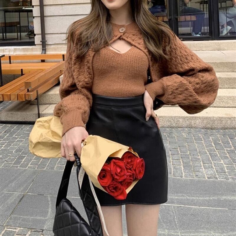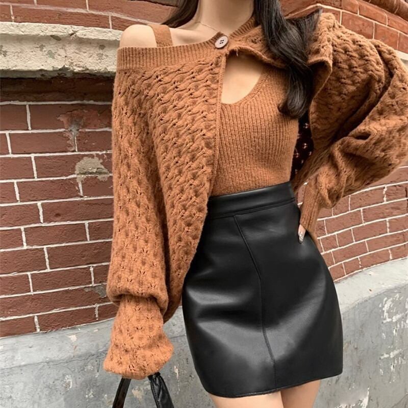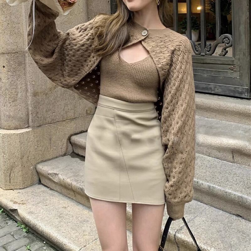 【set】ニットショルダーカーディガン×ニットキャミソール2色 HK0250