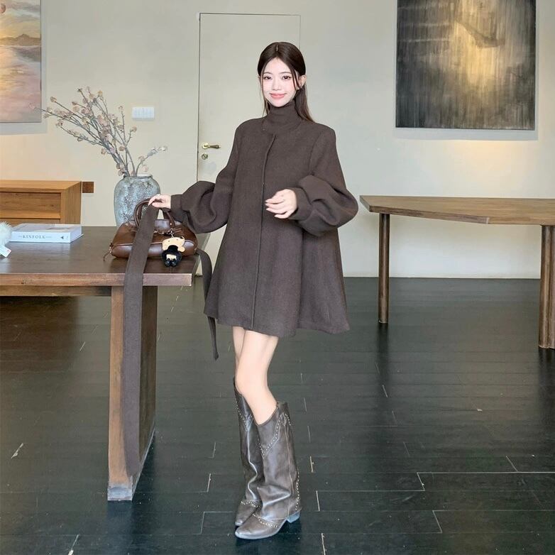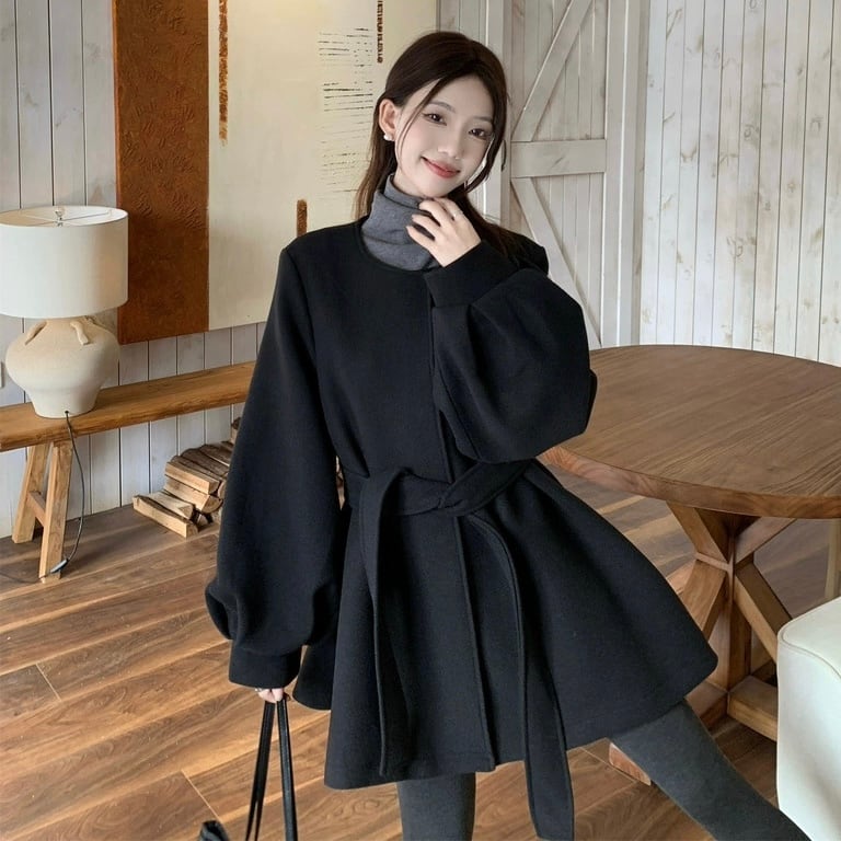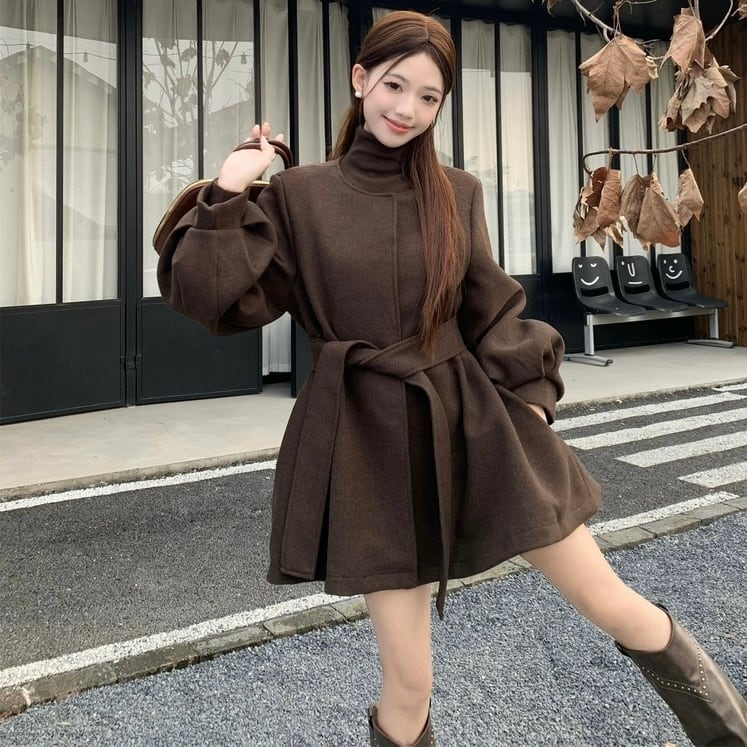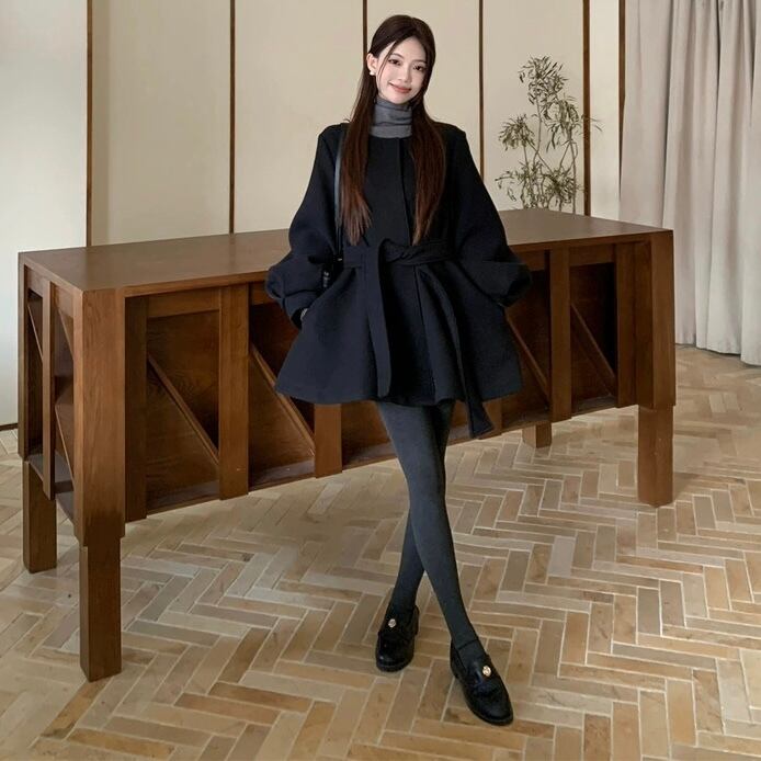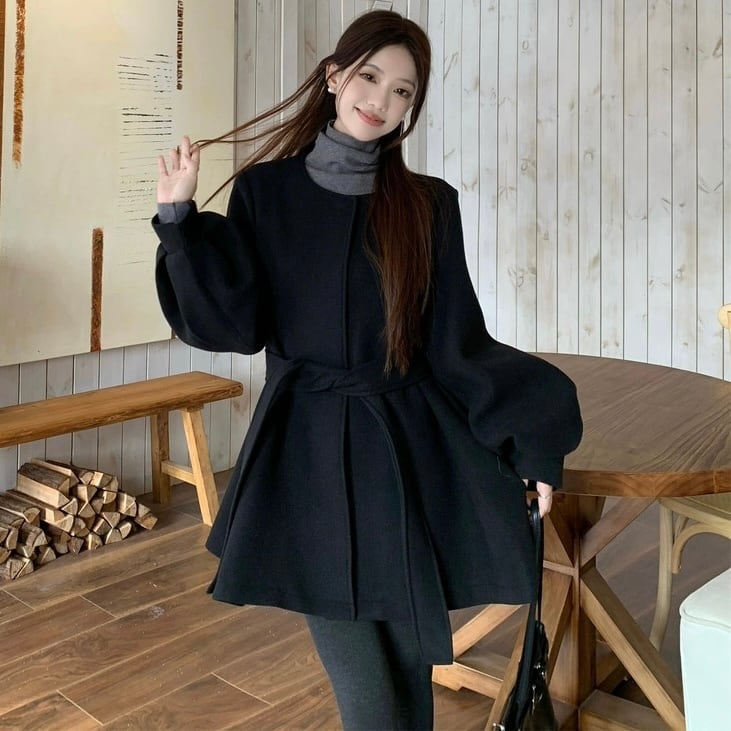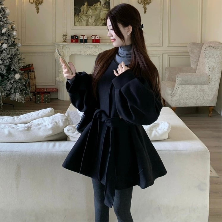 【outer】ノーカラーリボンベルト付きコート2色 HN0017
