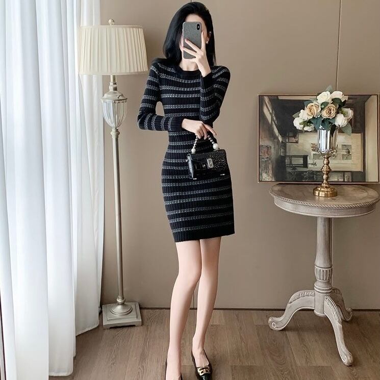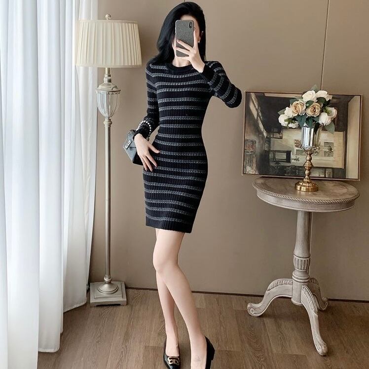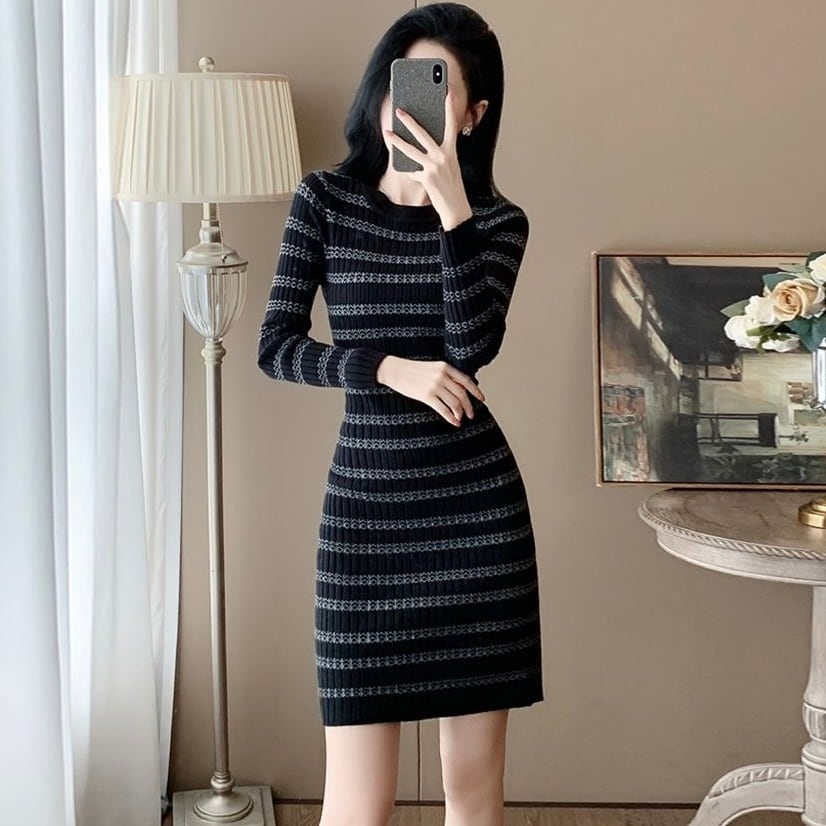 【dress】ボーダー長袖ニットワンピース HN0023