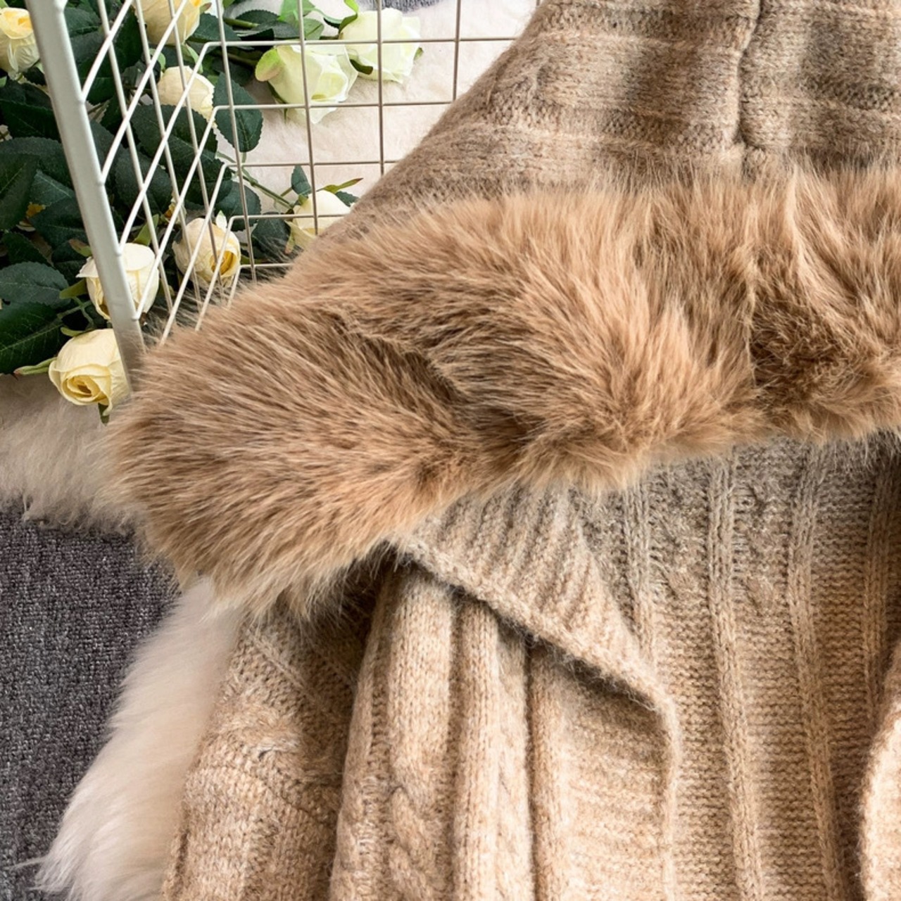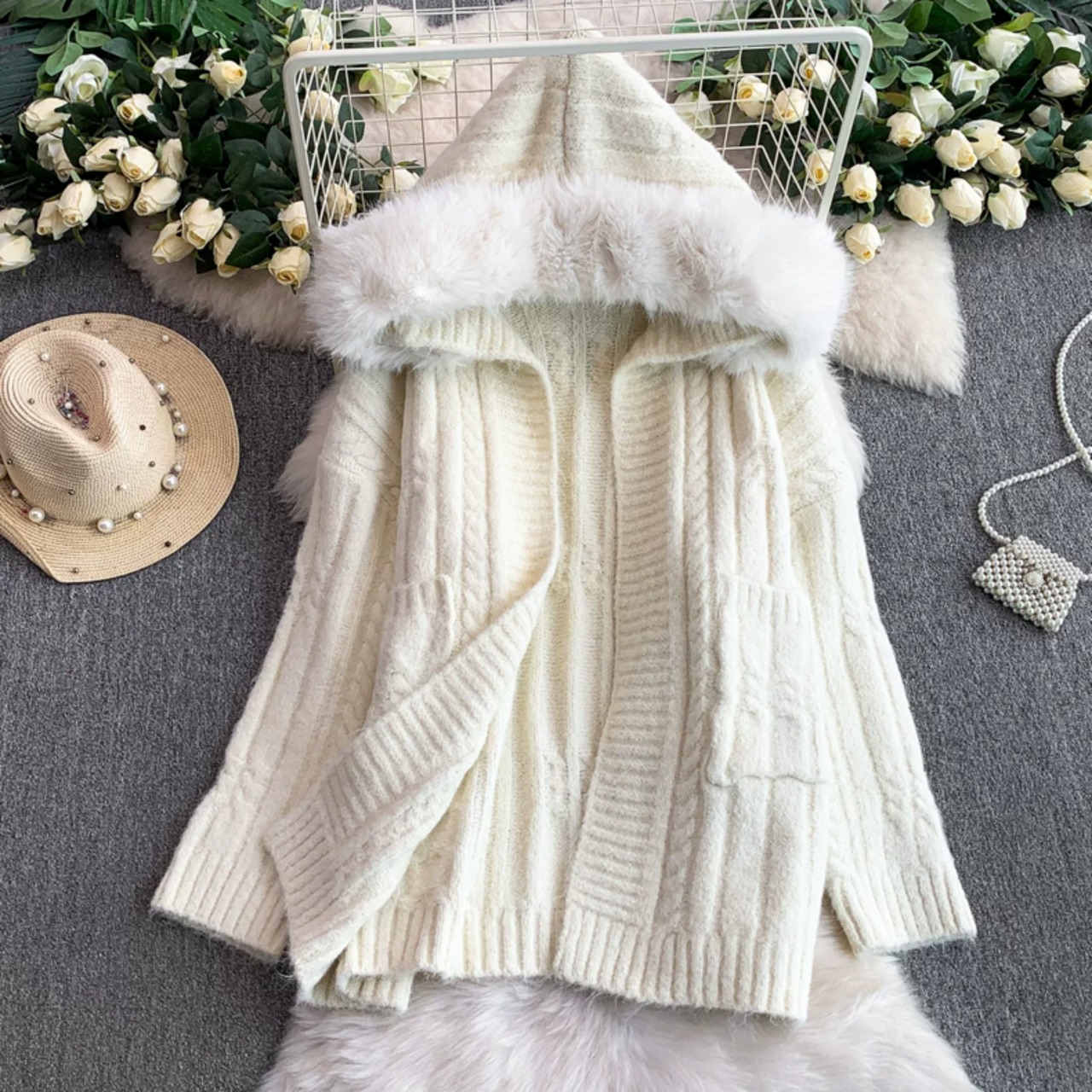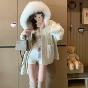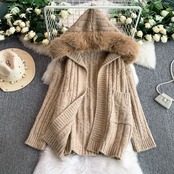 【outer】ファーフードニットカーディガン3色 HN0031