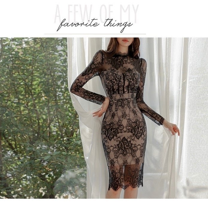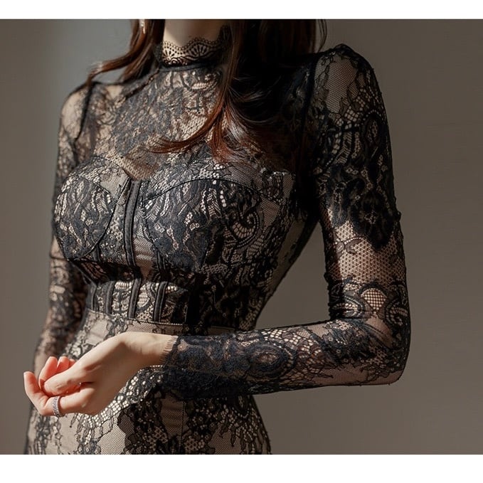 【dress】レース長袖ワンピース2色 HN0044