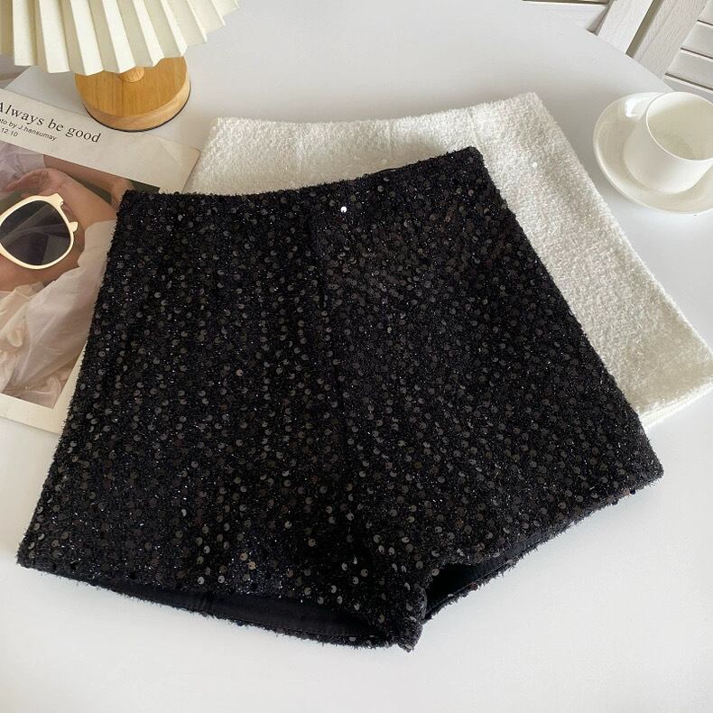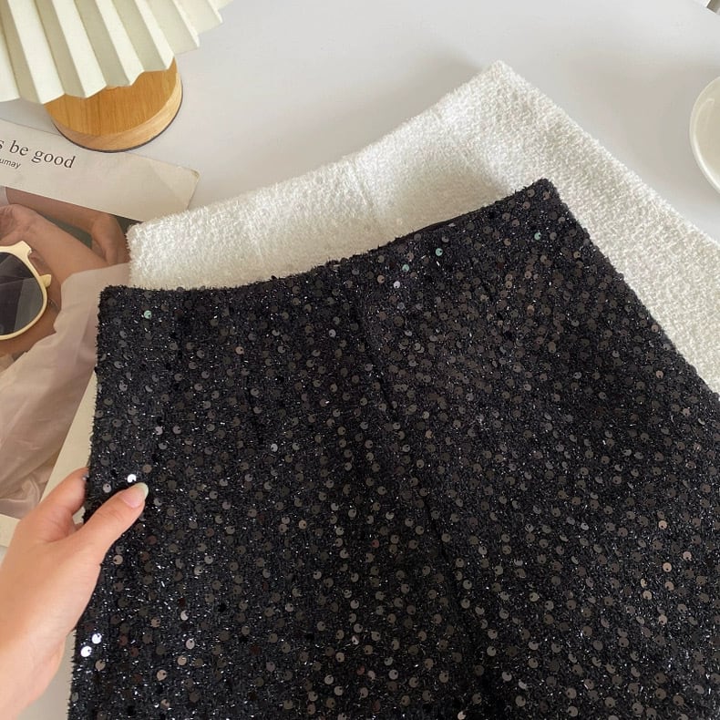 【bottoms】スパンコールツイードハイウエストパンツ3色 HN0045