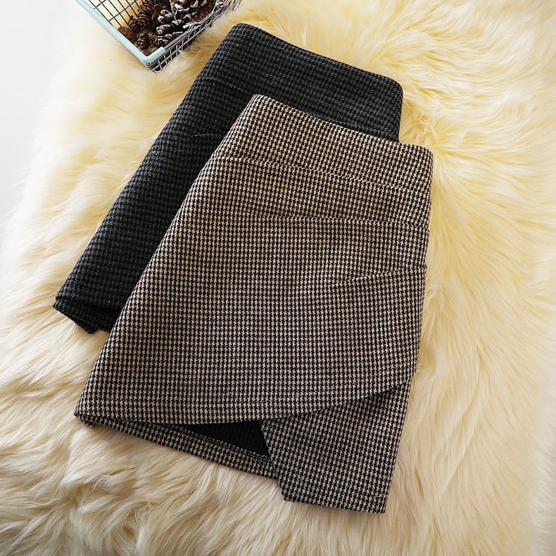 【bottoms】インパン付き千鳥柄スカート2色 HN0056
