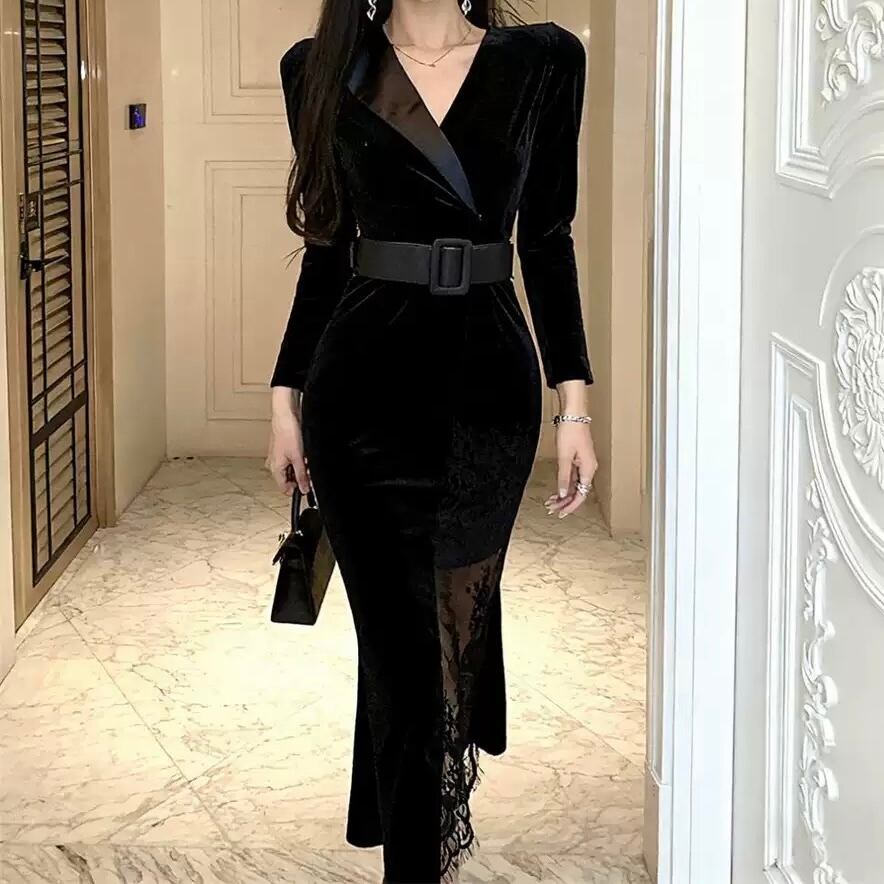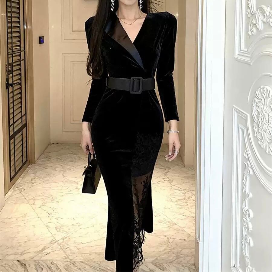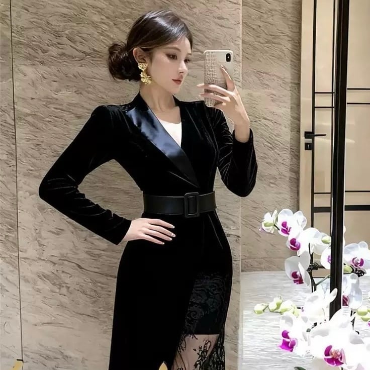 【dress】ベルト付きレースワンピース HN0072
