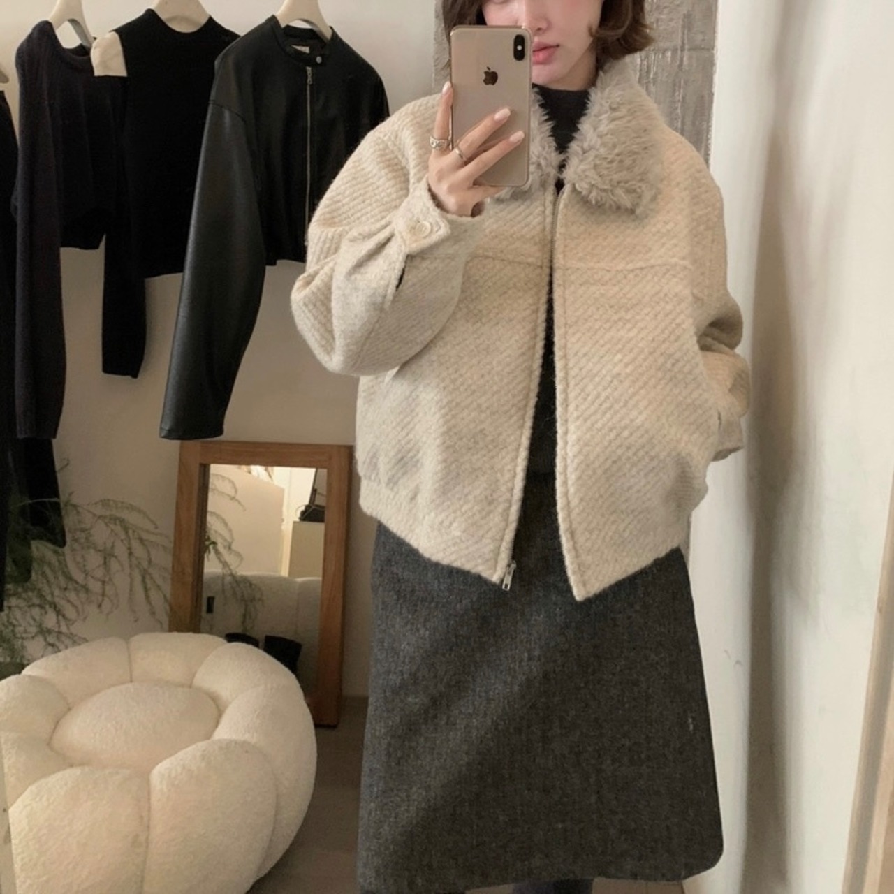 【outer】ファー襟ジャケット HN0081
