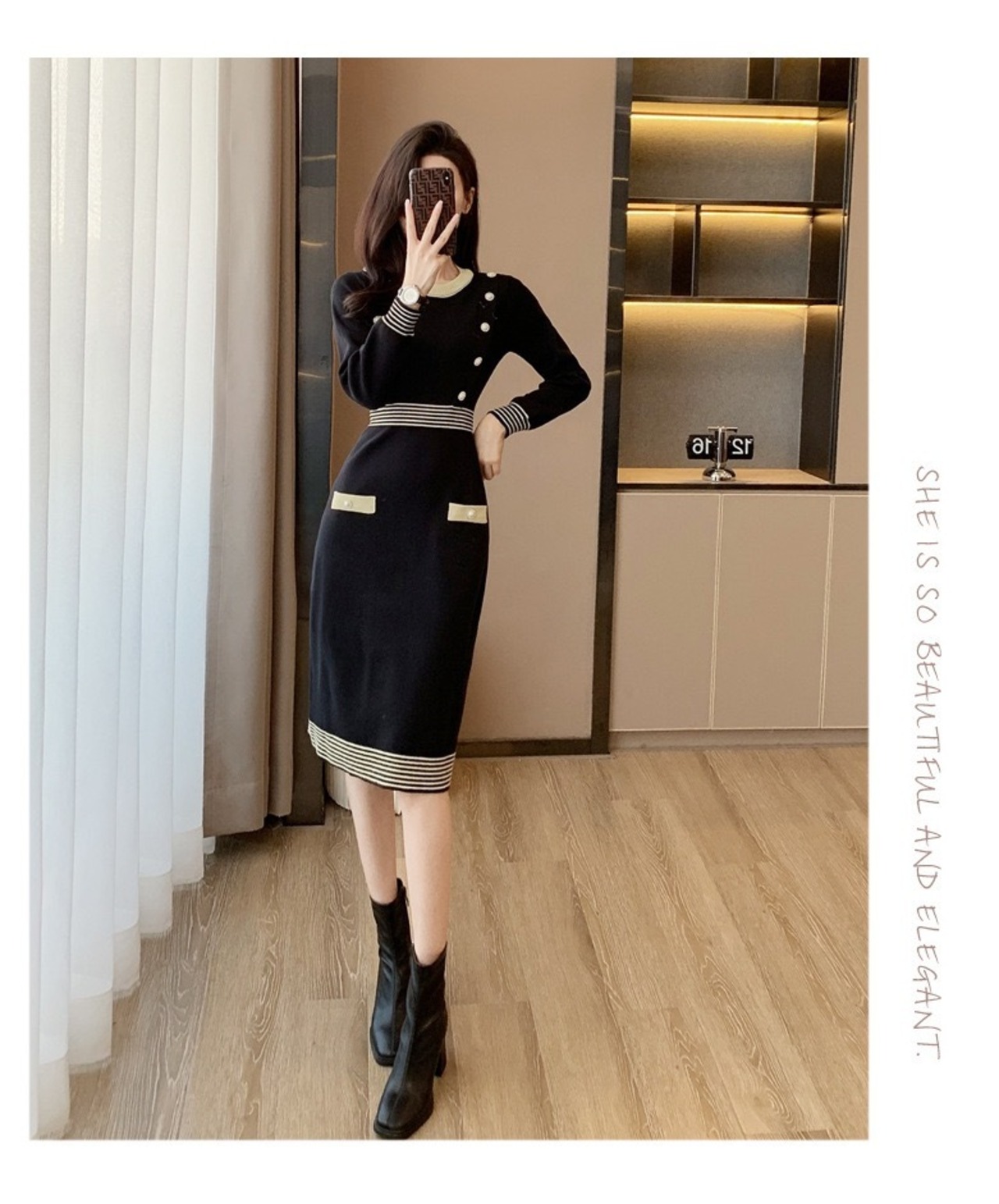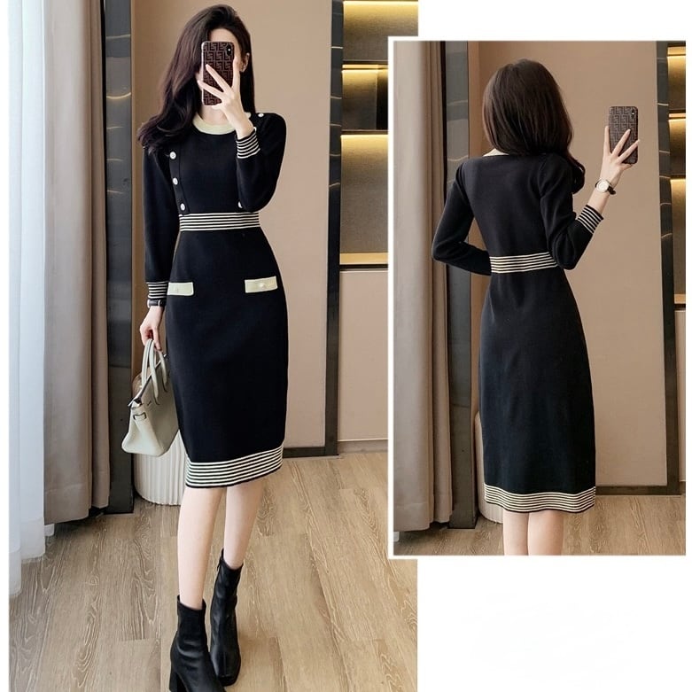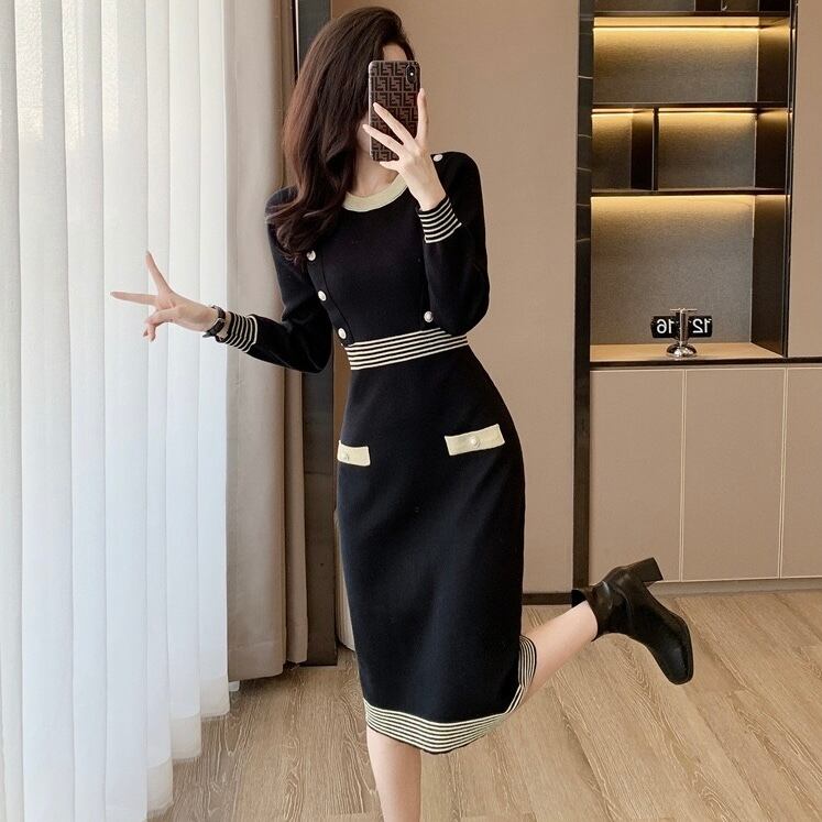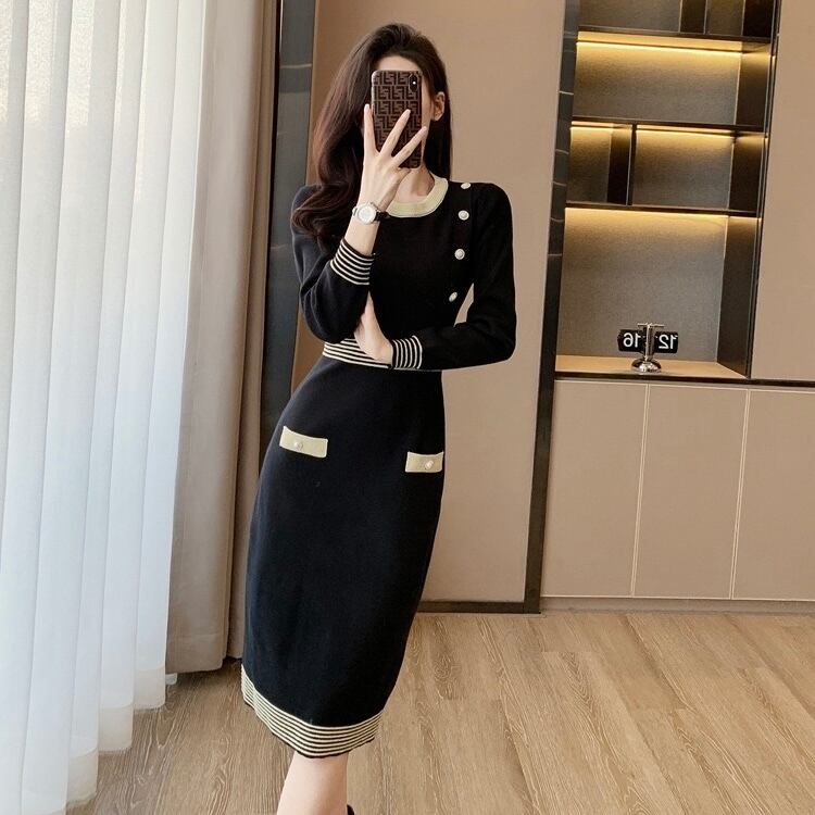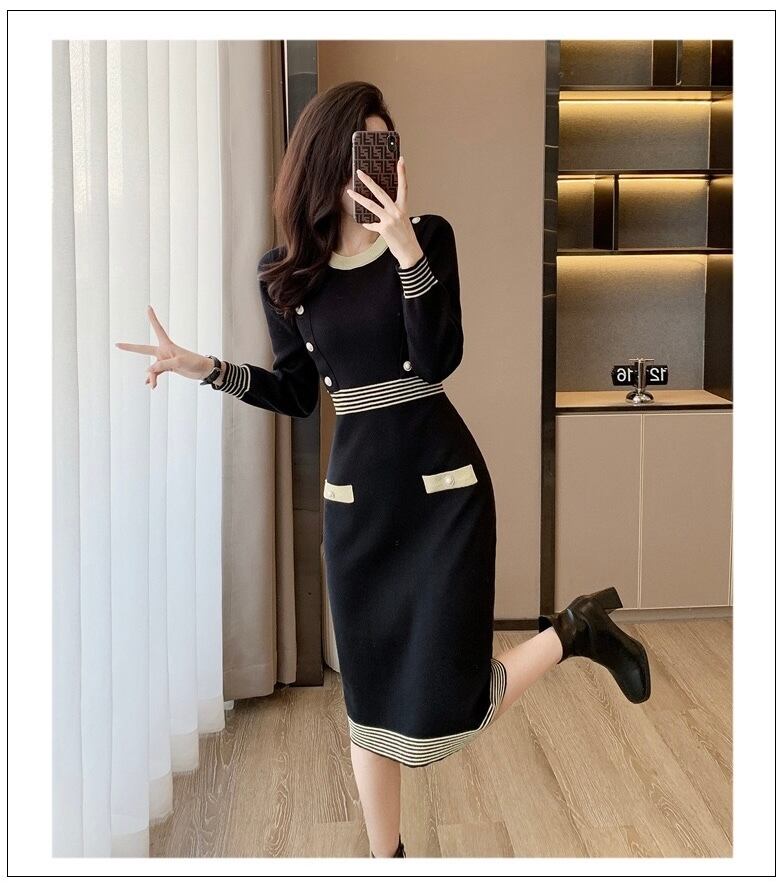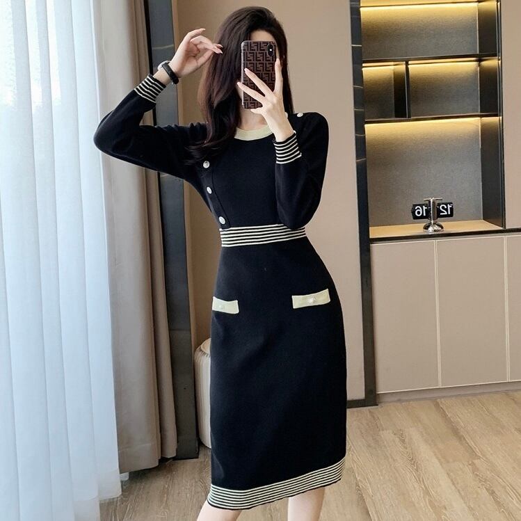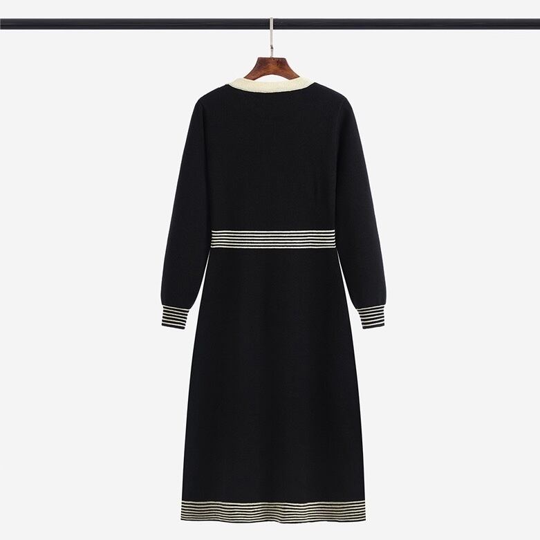 【dress】配色Aラインニットワンピース HN0089