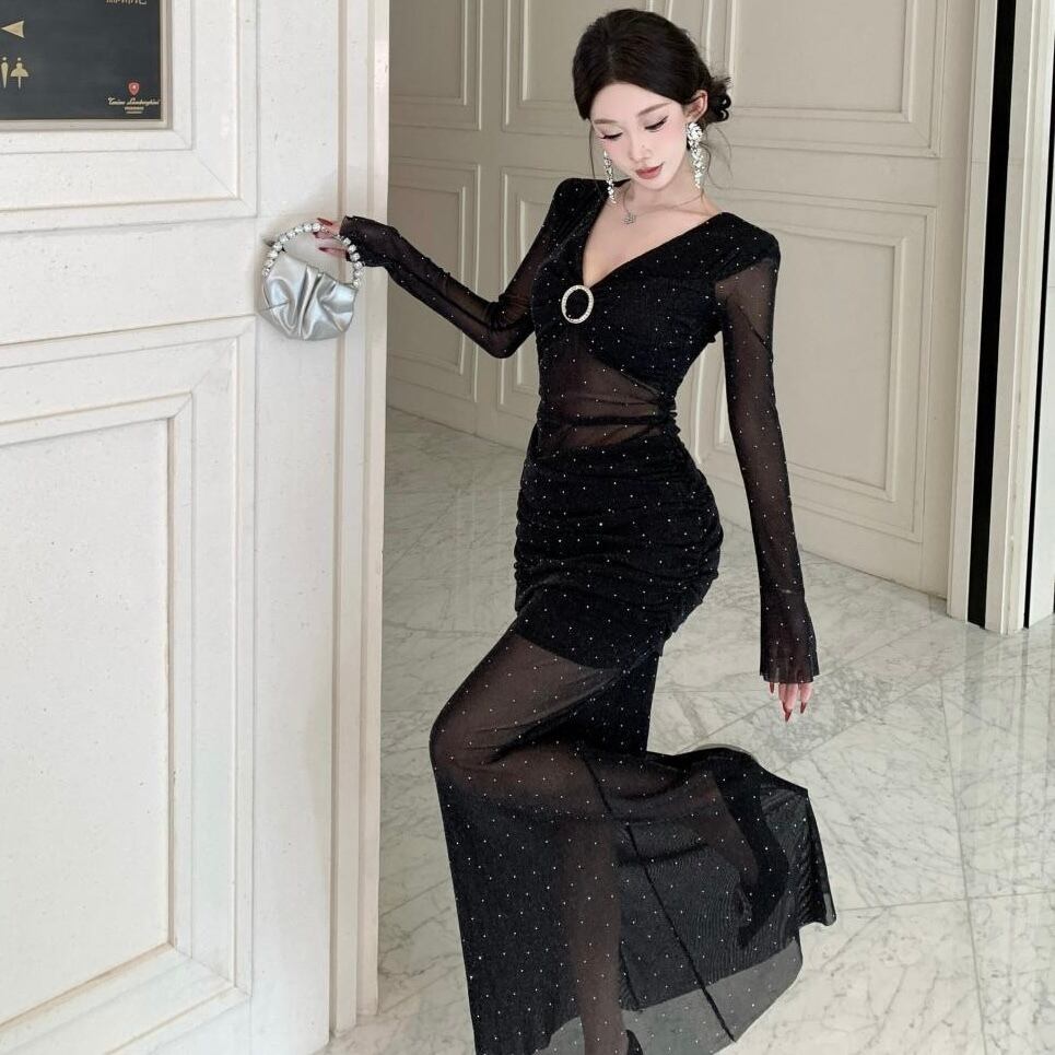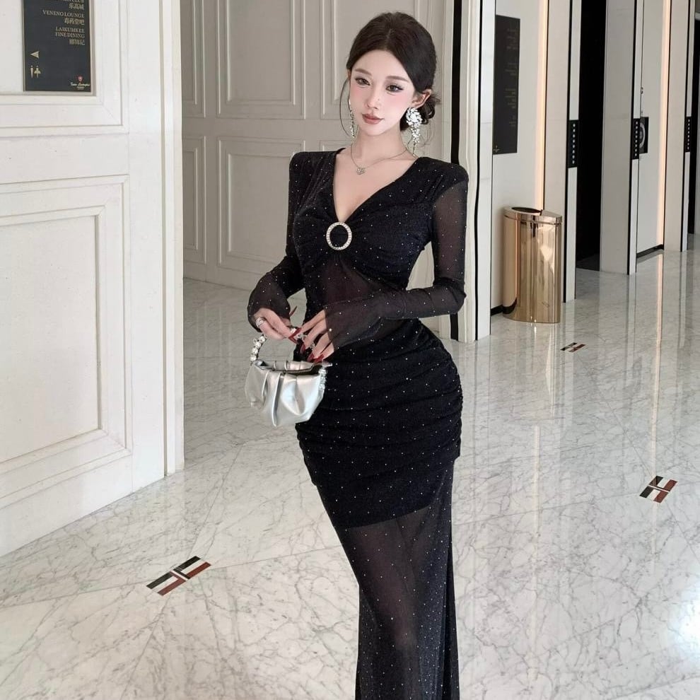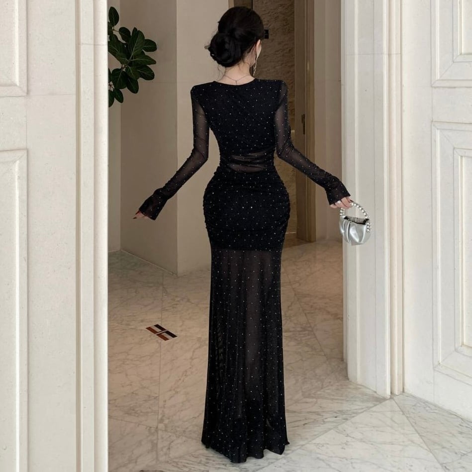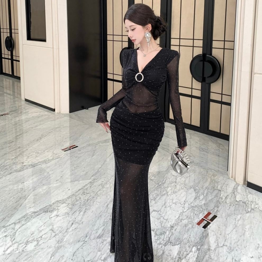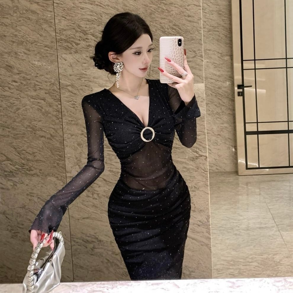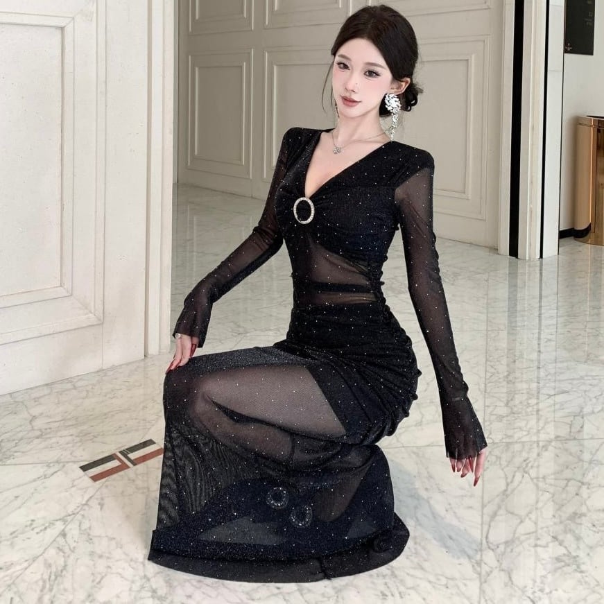 【dress】ドット柄シースルーワンピース HN0092