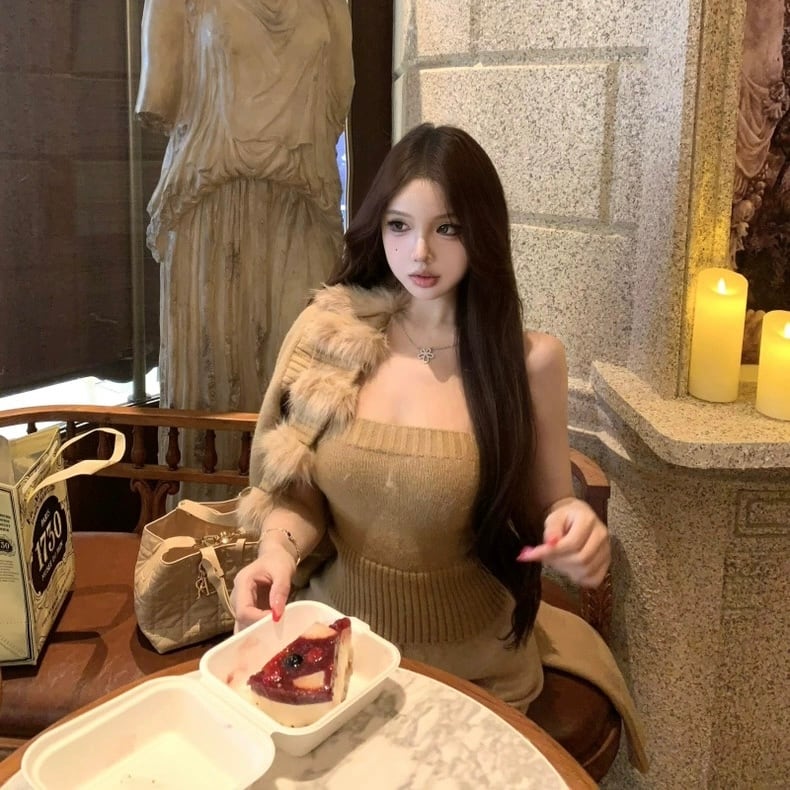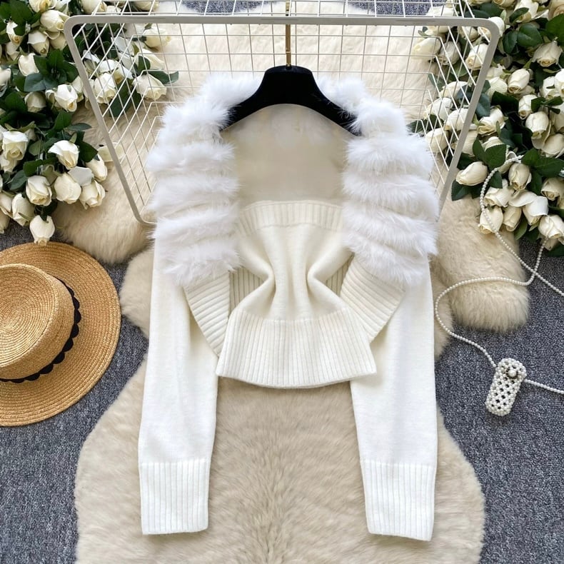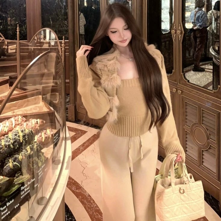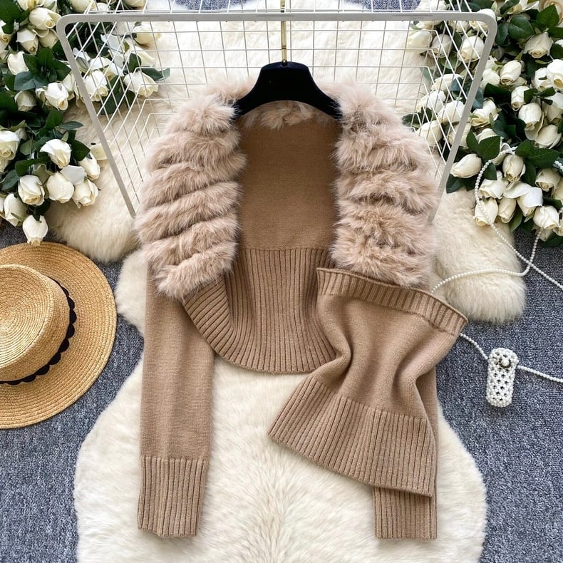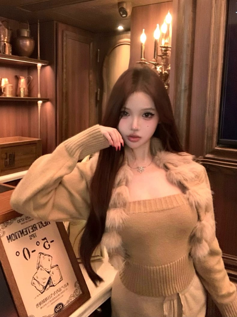 【set】ファーニットボレロxベアトップ2色 HN0095