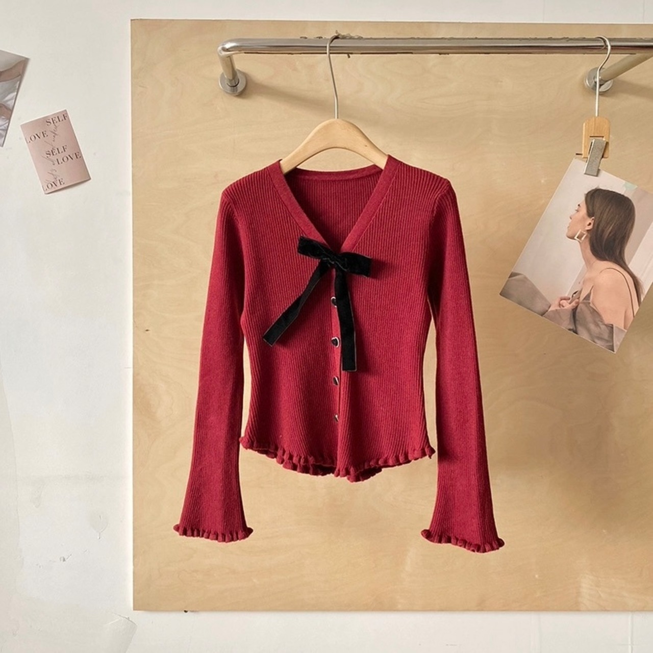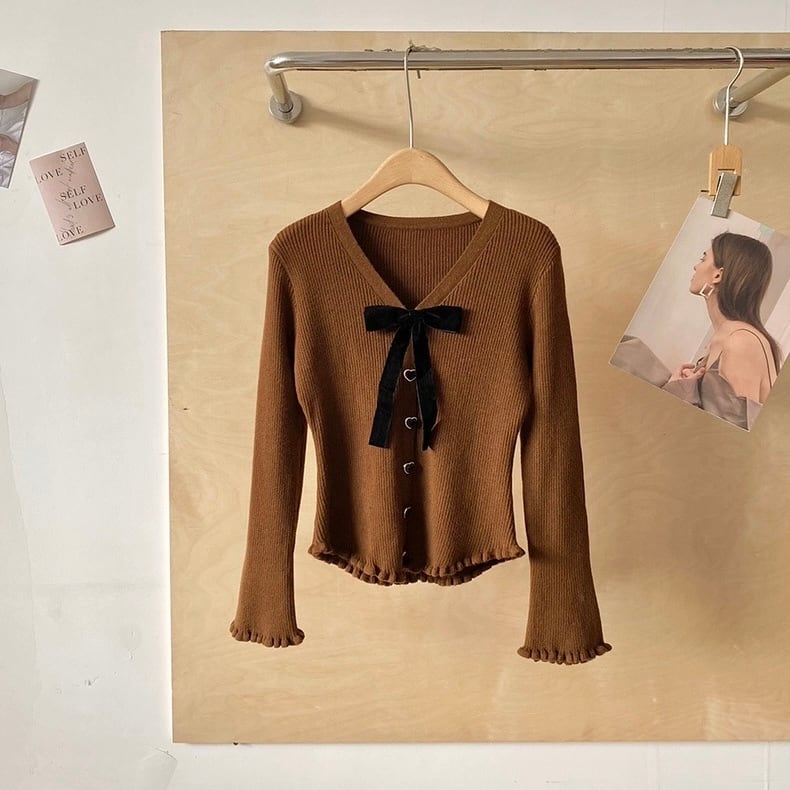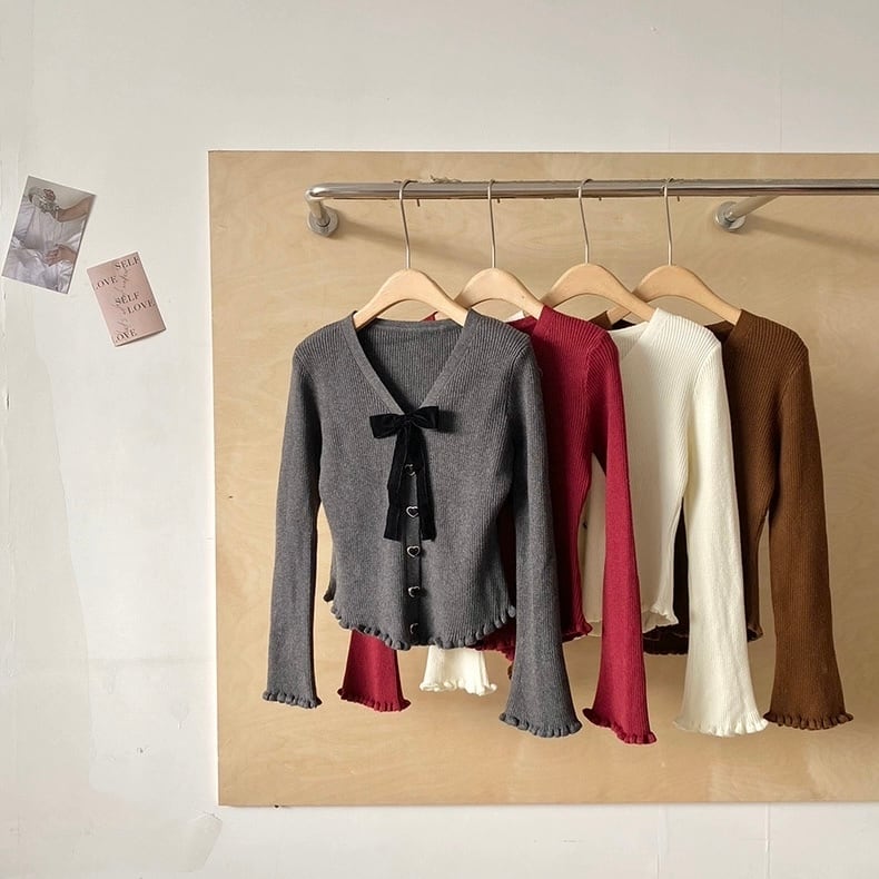 【tops】リボンブローチ付きニットトップス4色 HN0098
