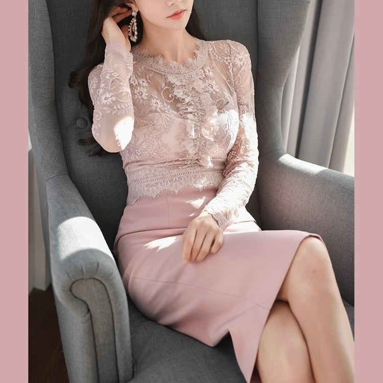 【dress】シースルーレースワンピース2色 RD006