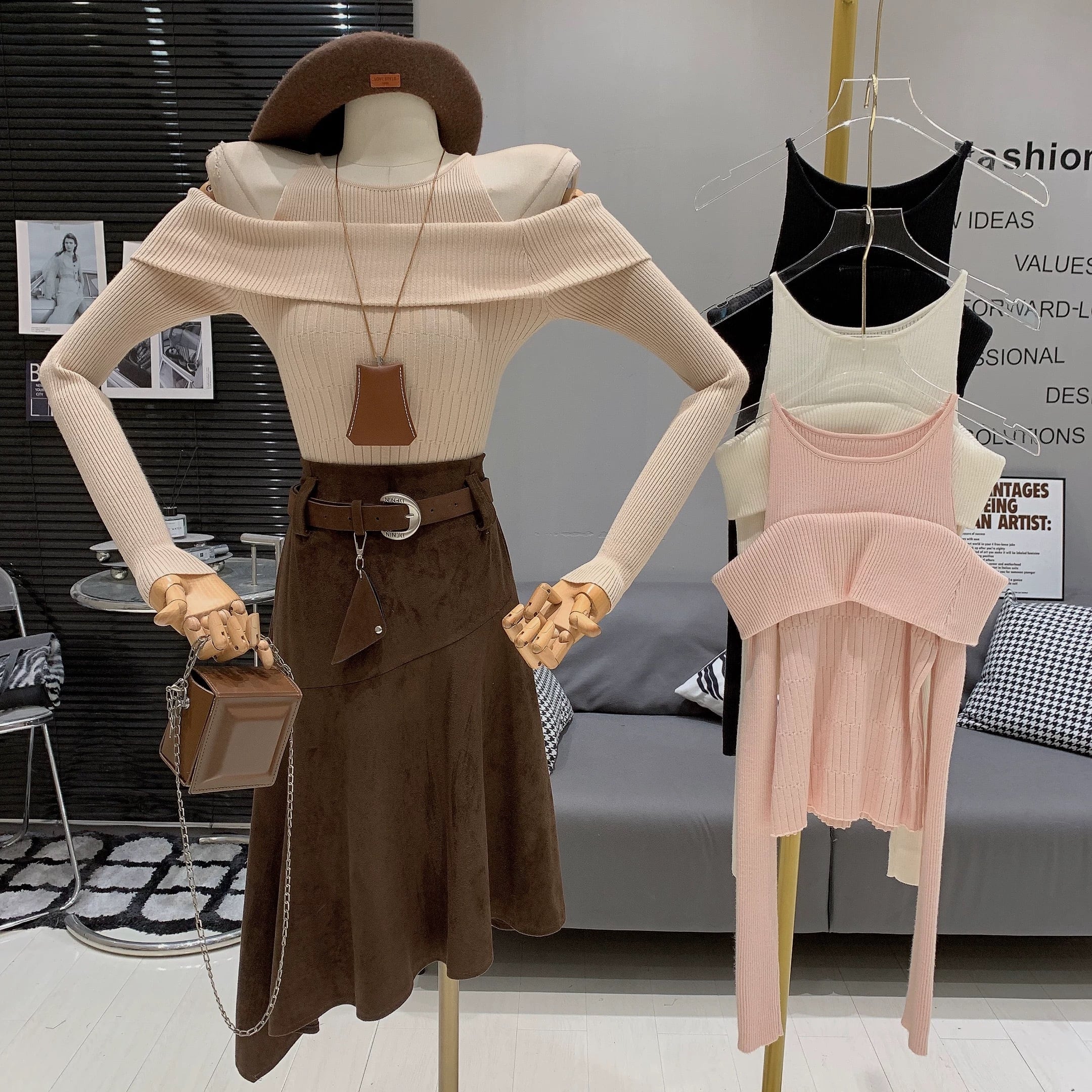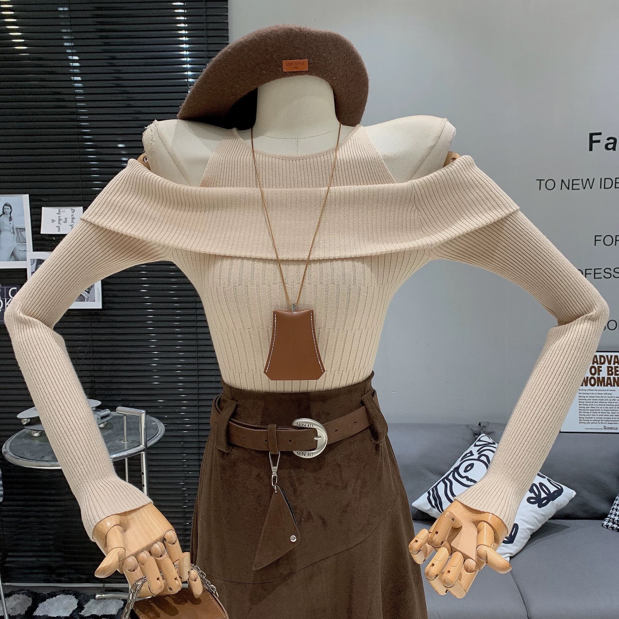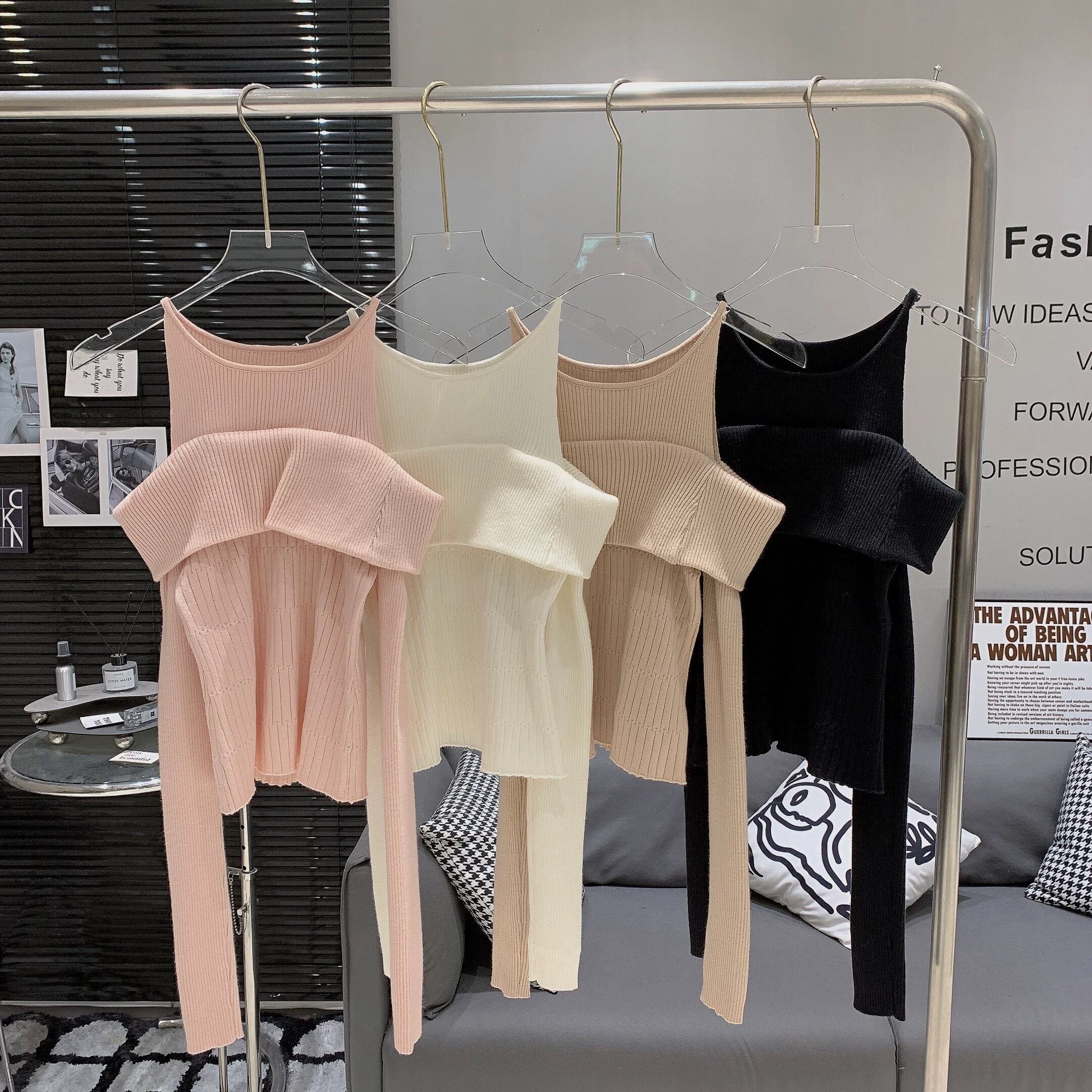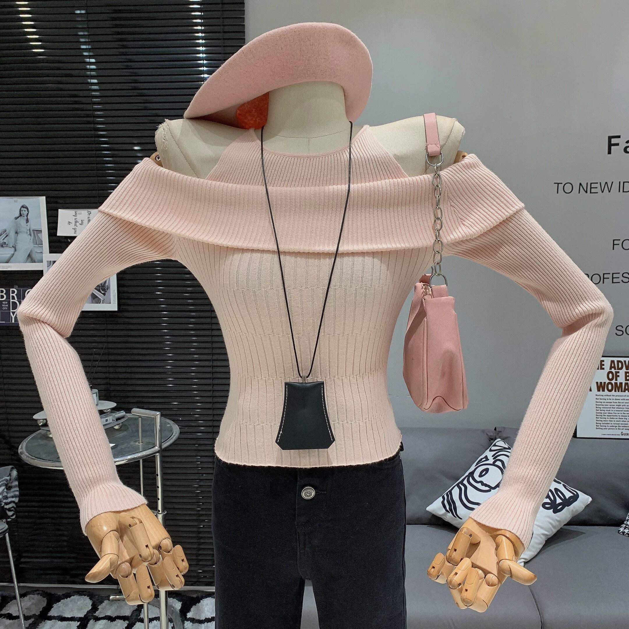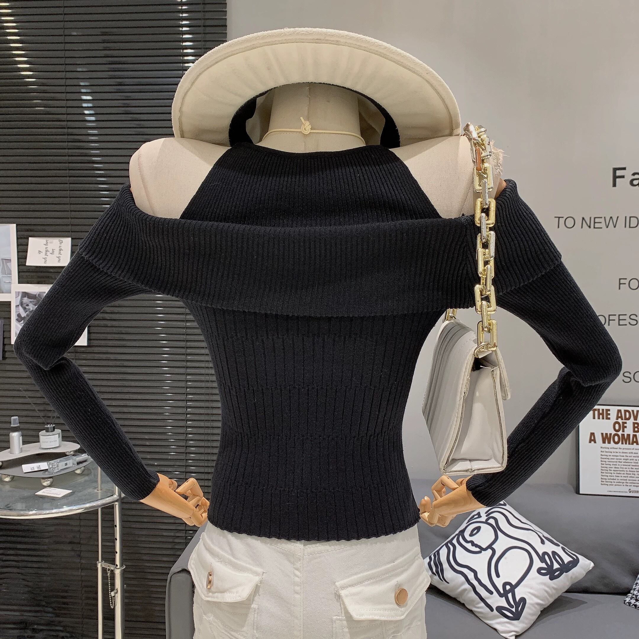 【tops】オフショルダーニットトップス5色 RD011