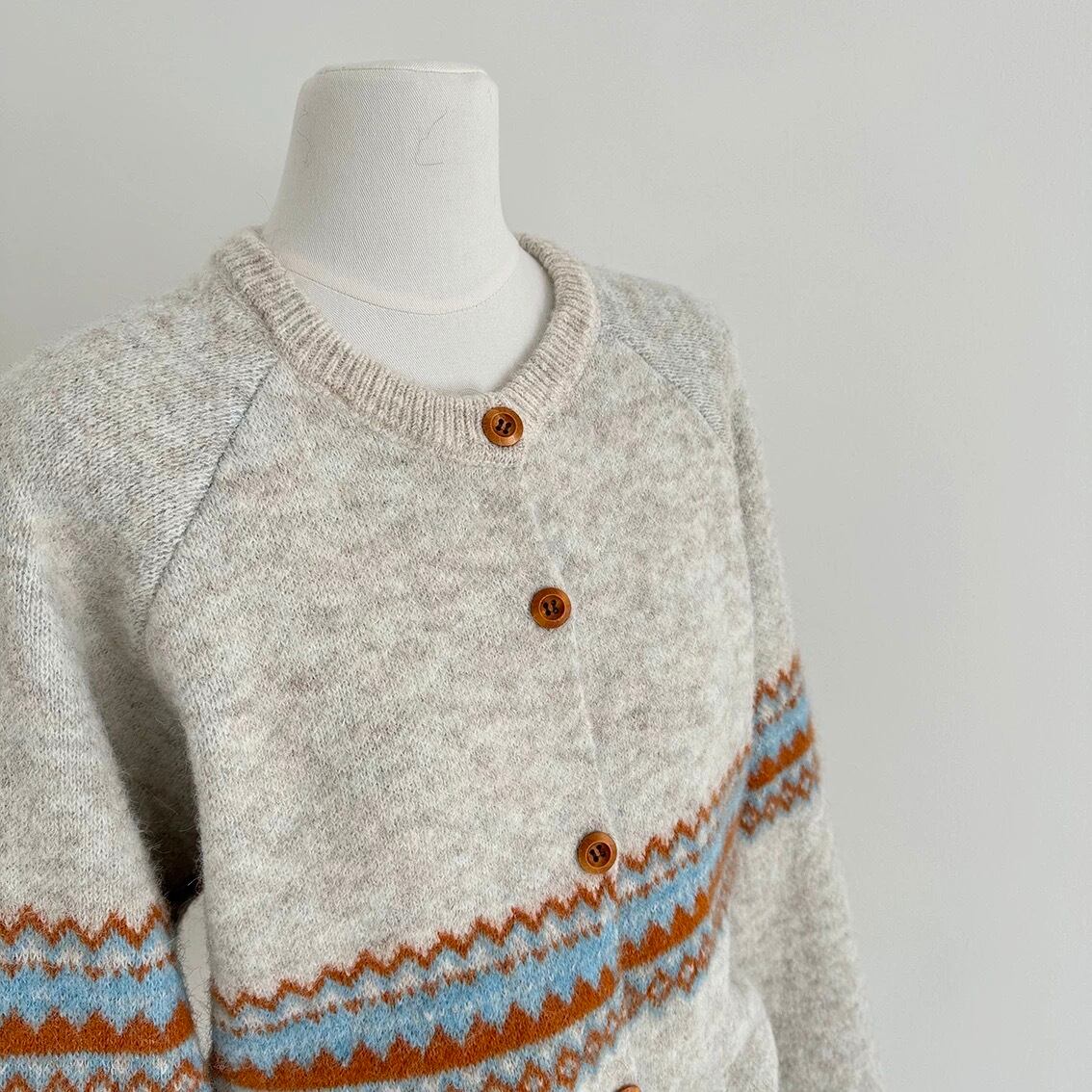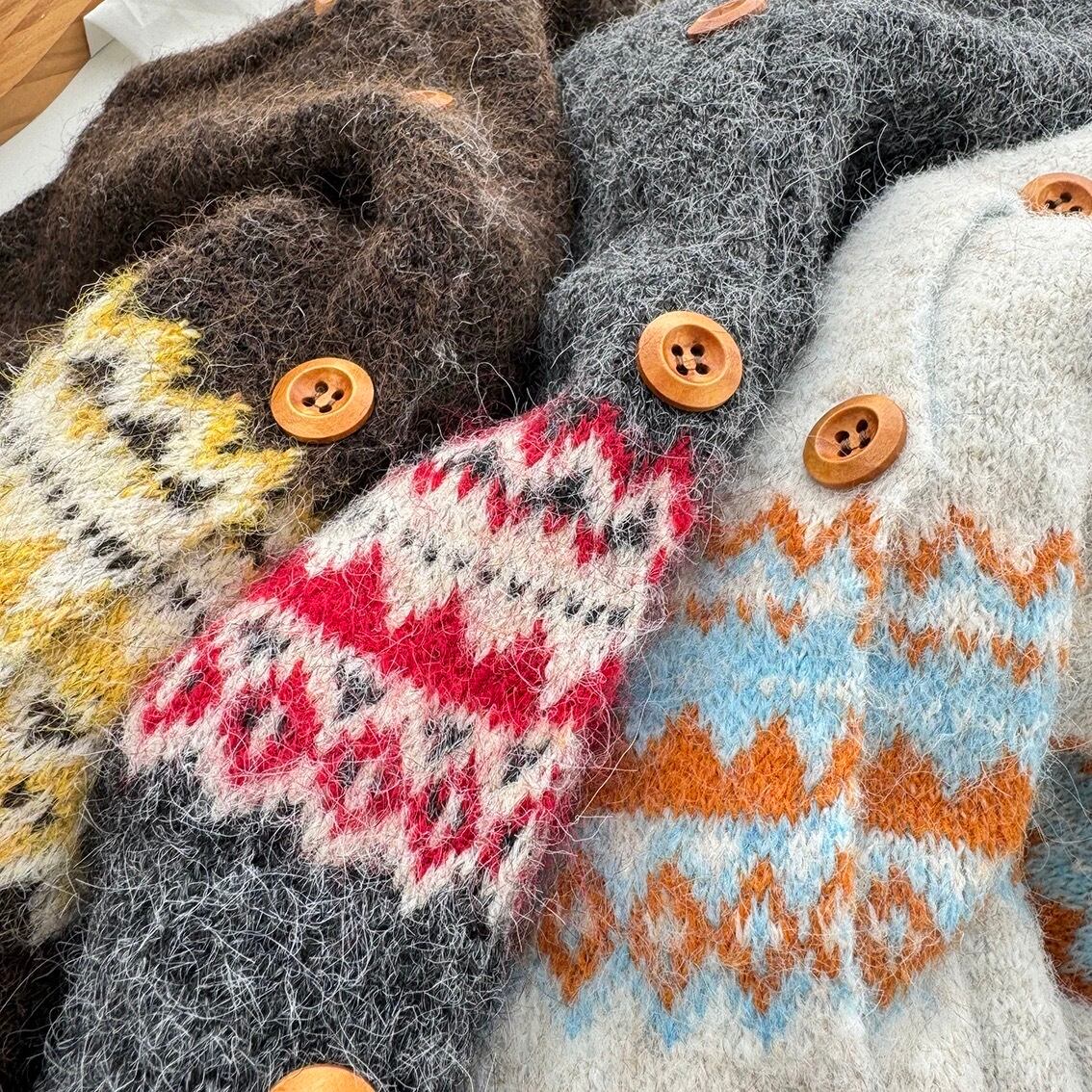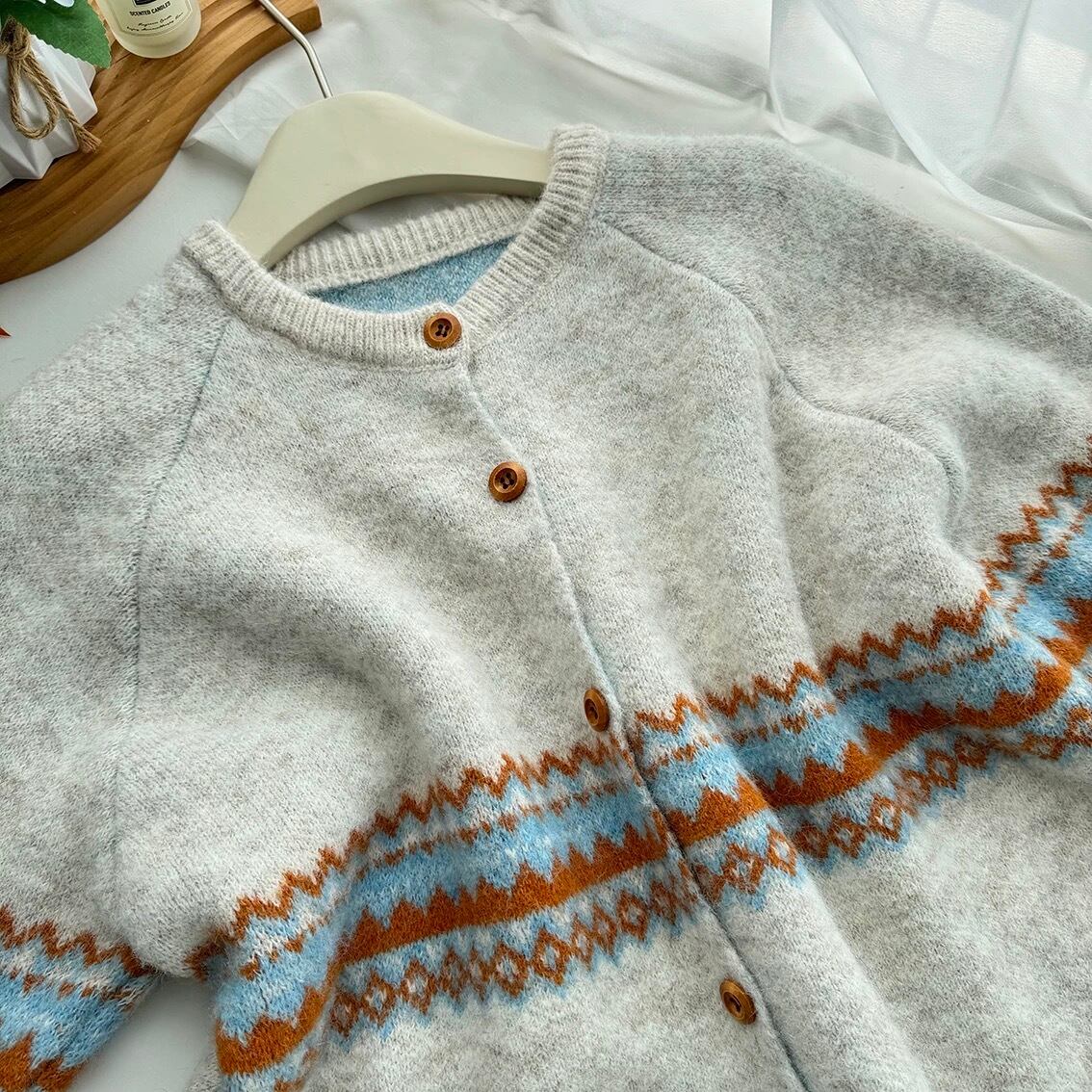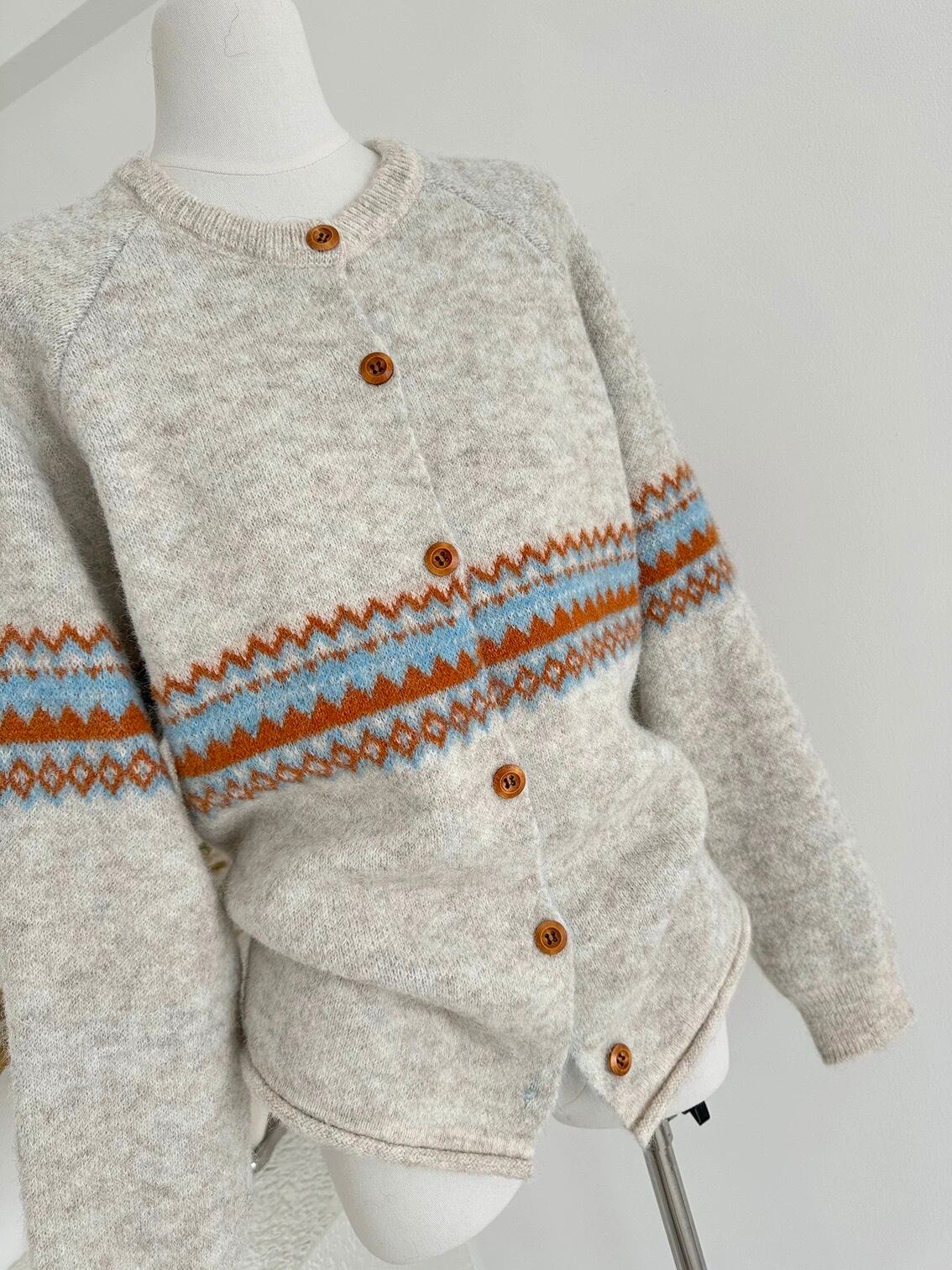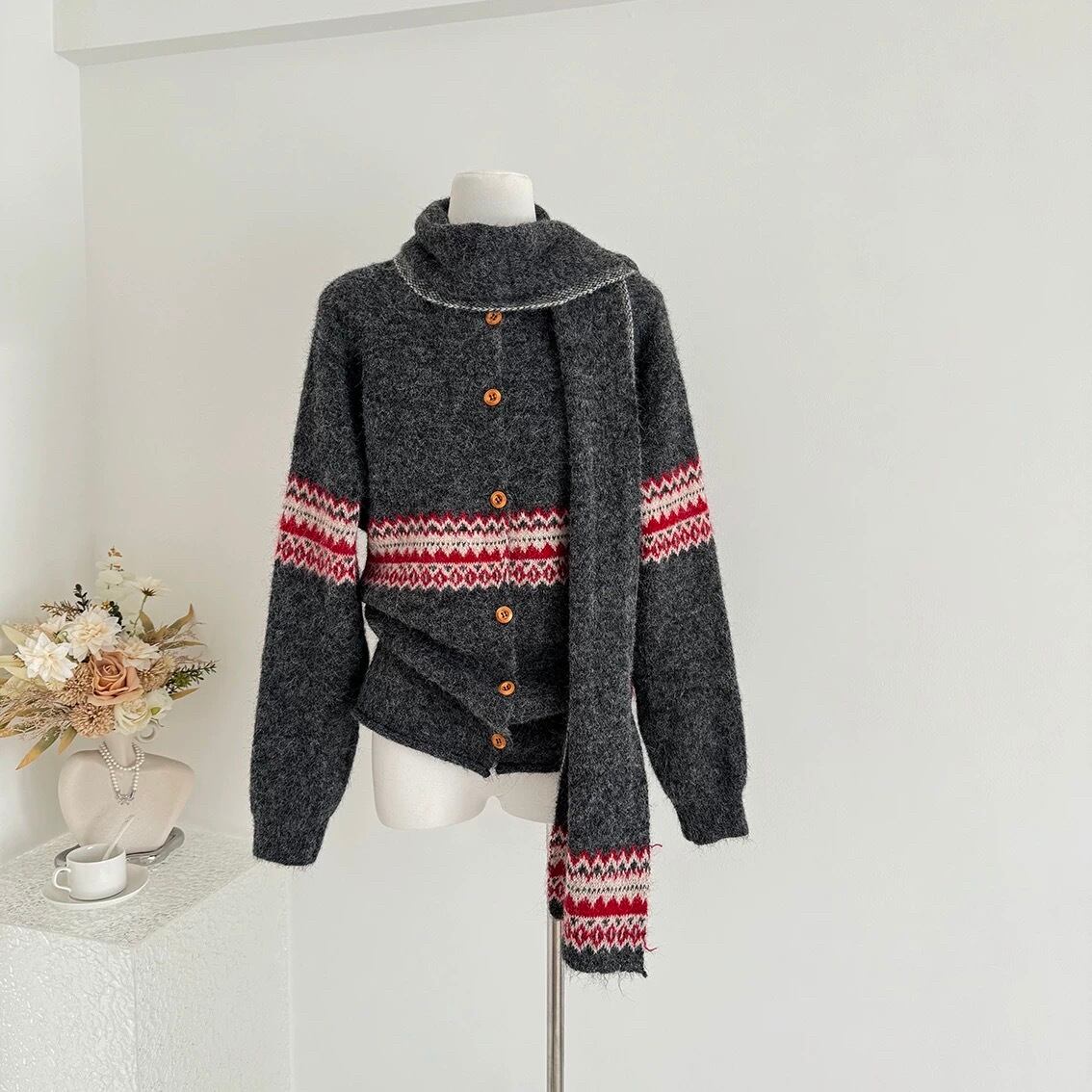 【outer】マフラー付き模様カーディガン3色 RD015
