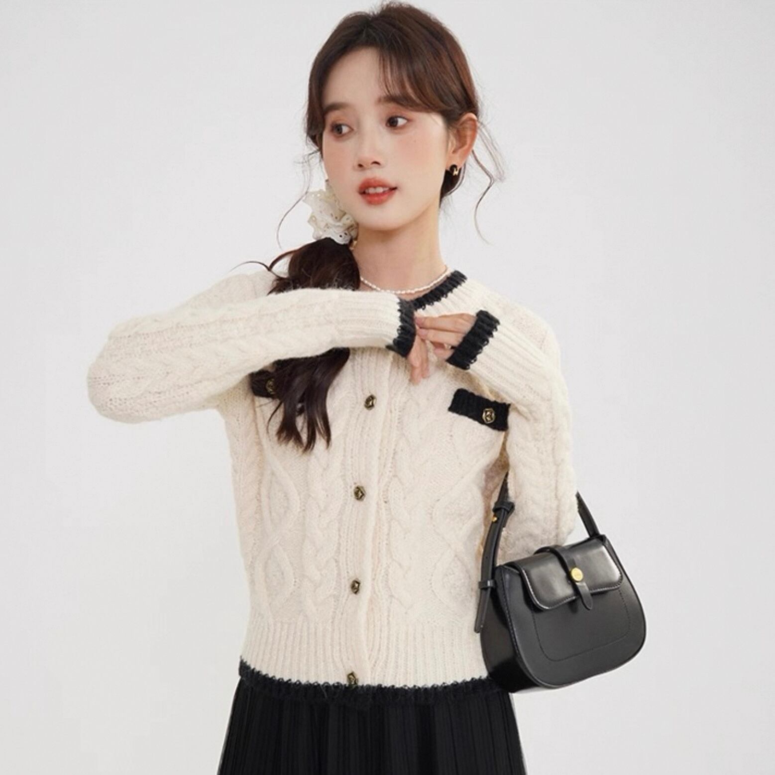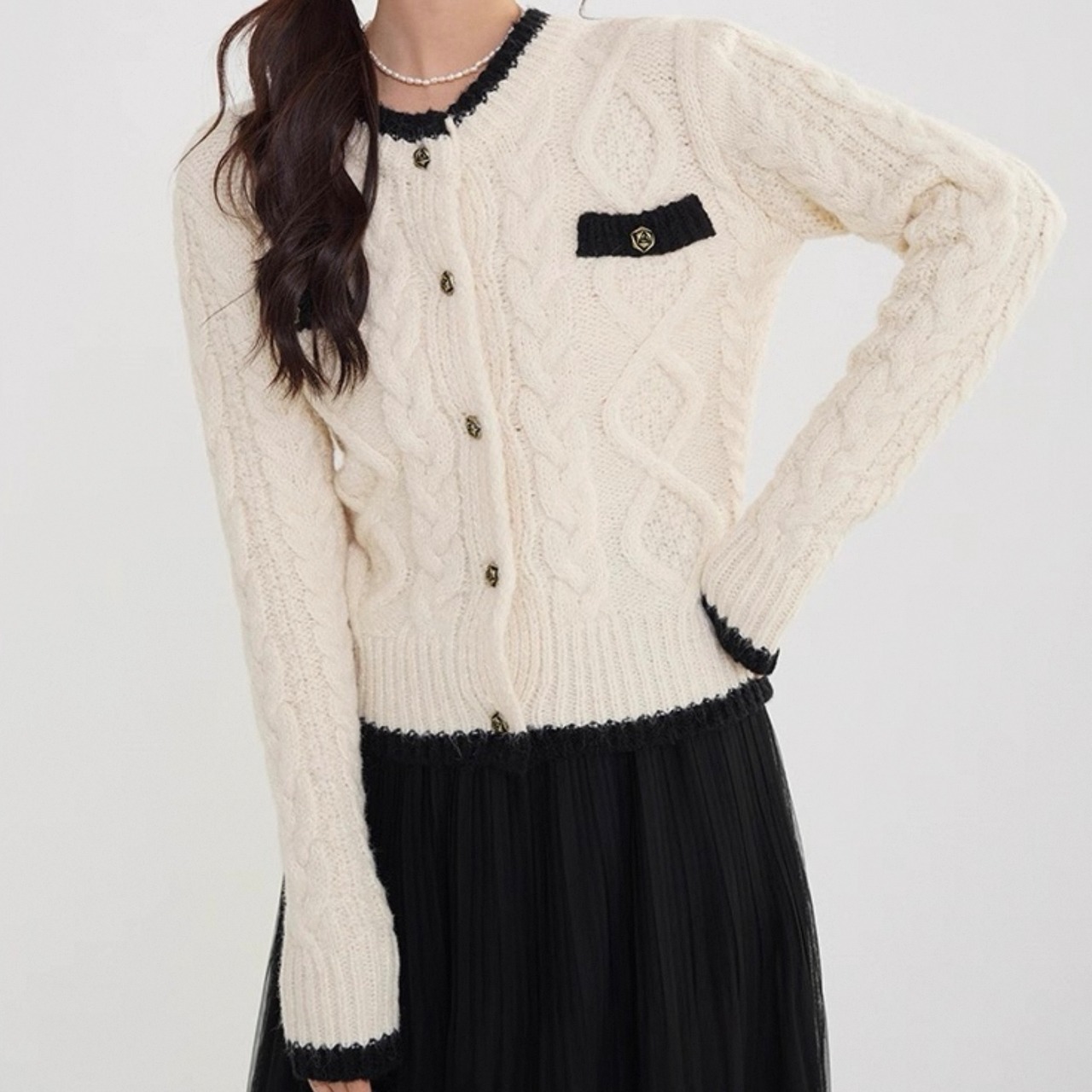 【outer】ケーブル柄ニットカーディガン HK0267