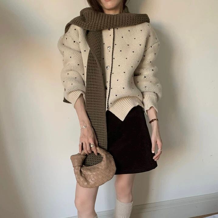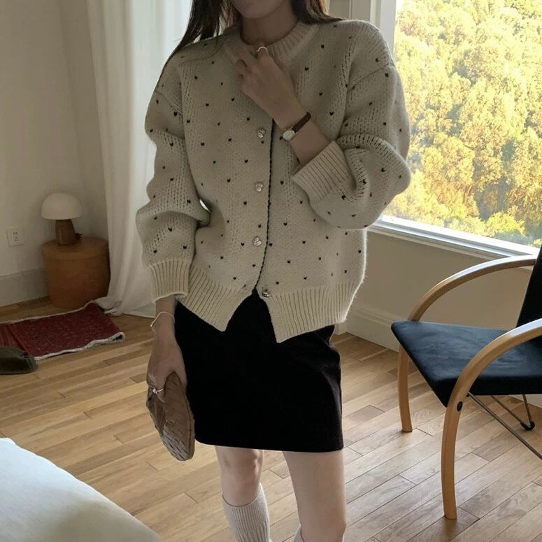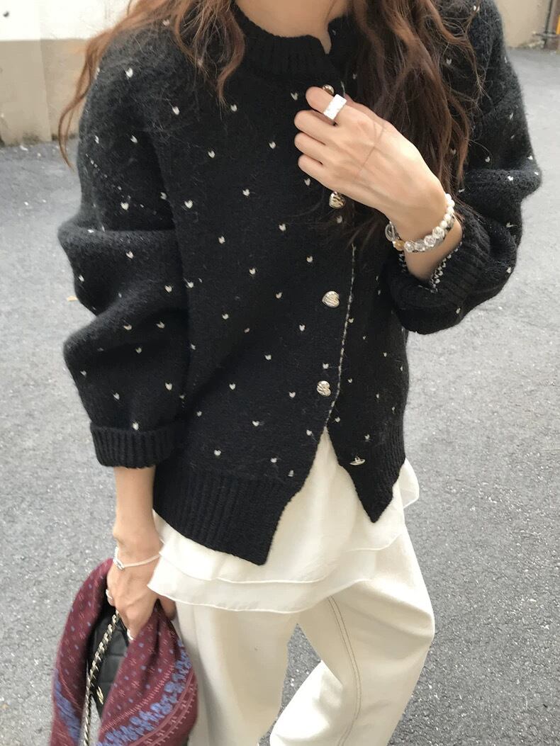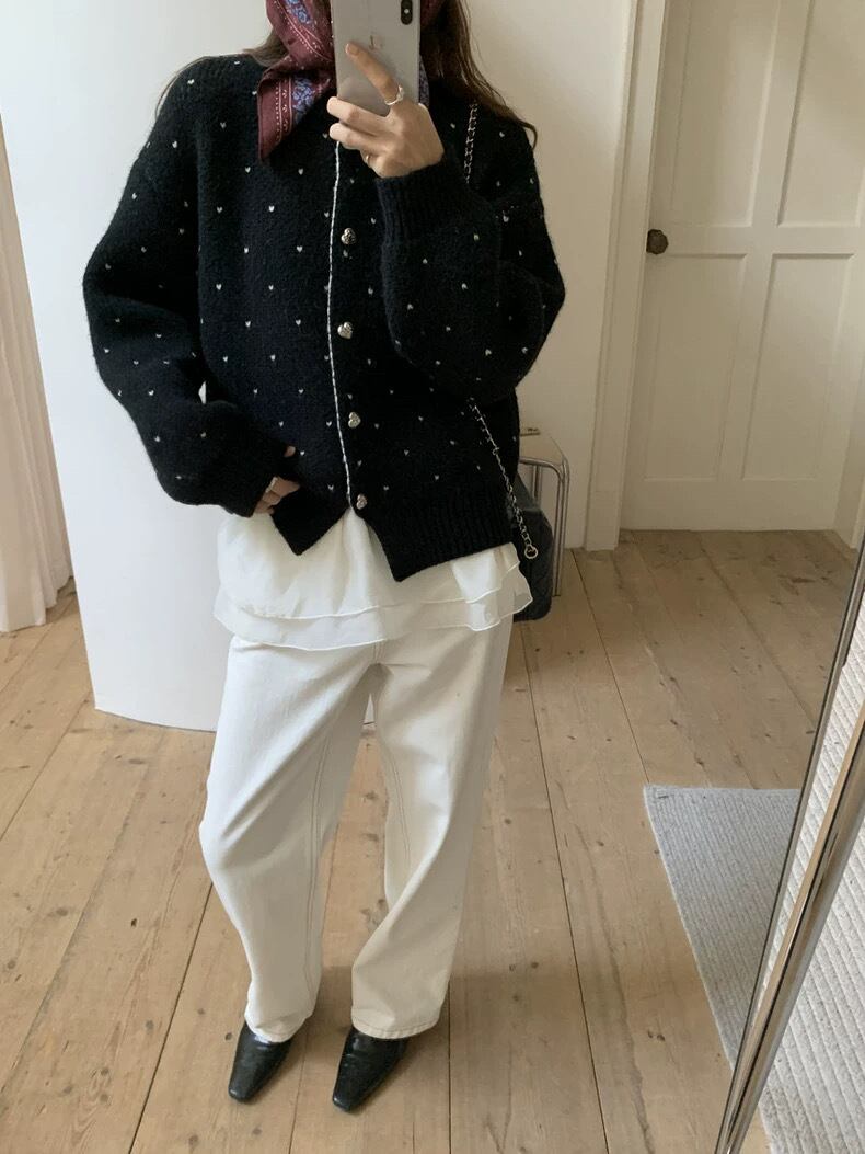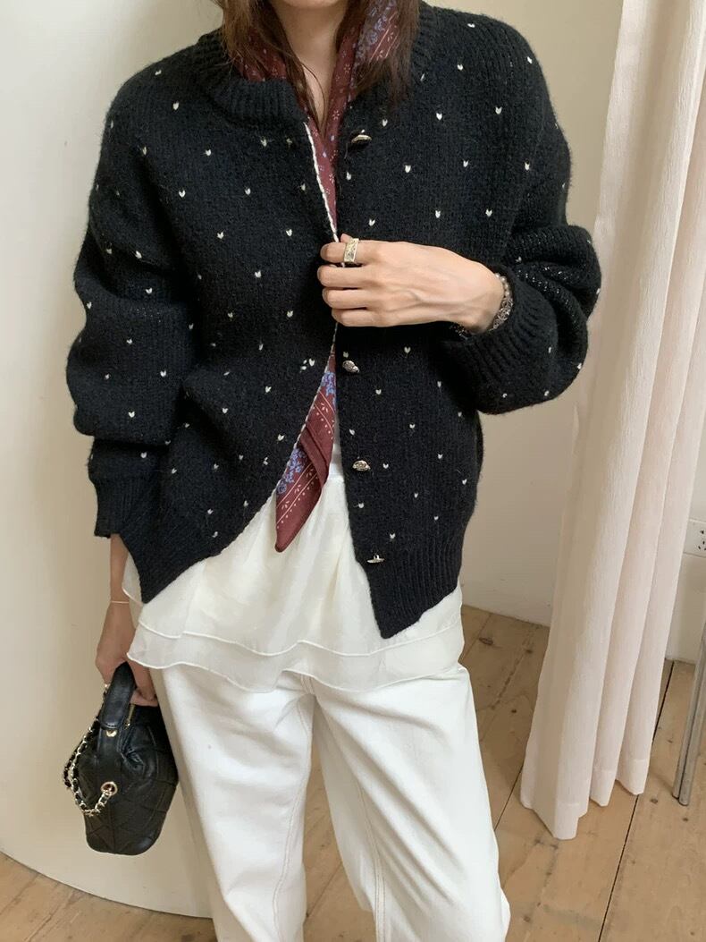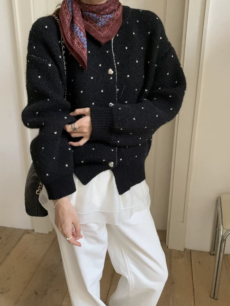 【outer】ハートプリントニットカーディガン2色 RD017