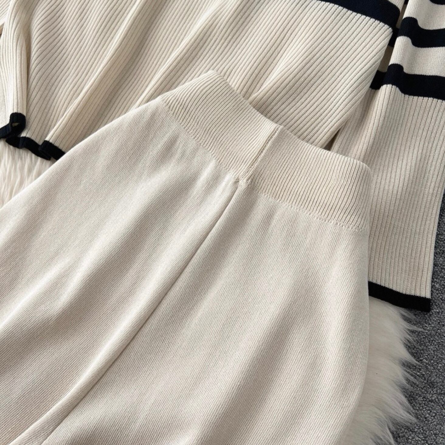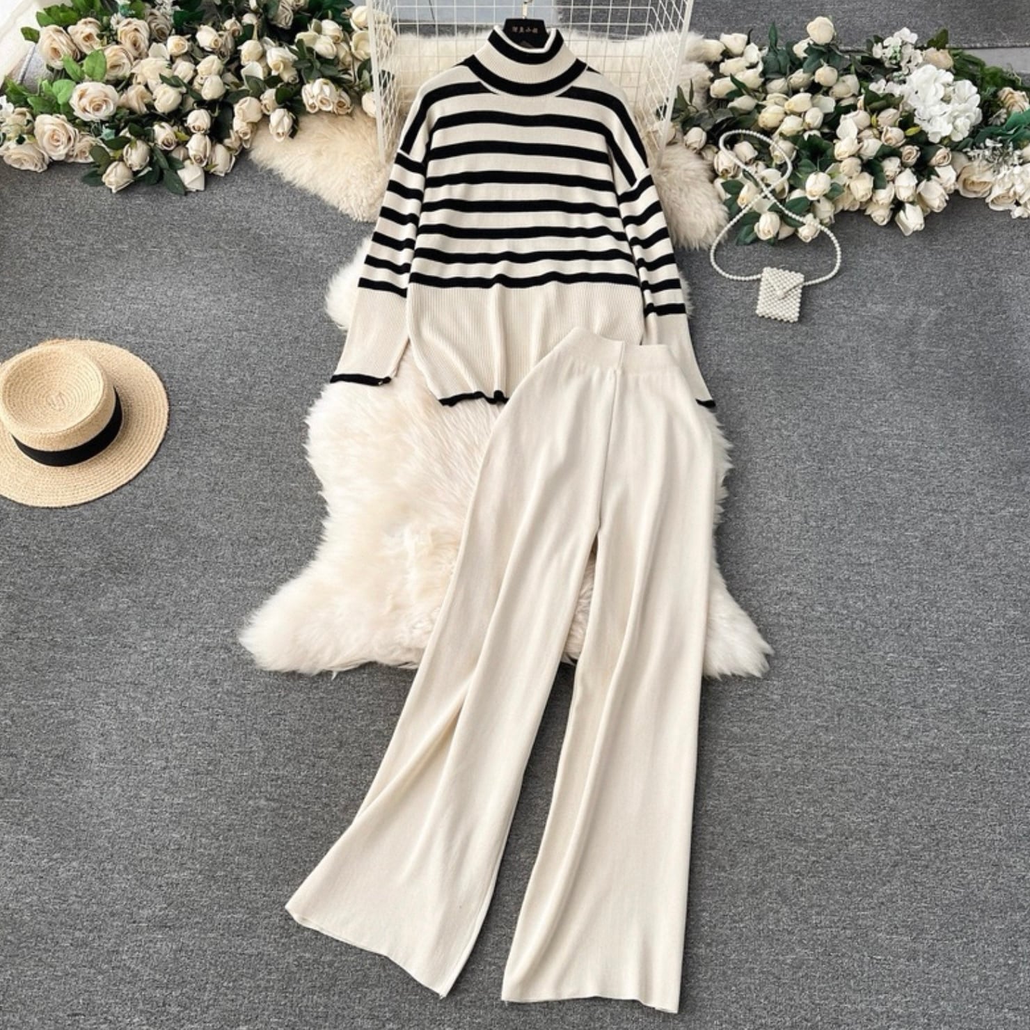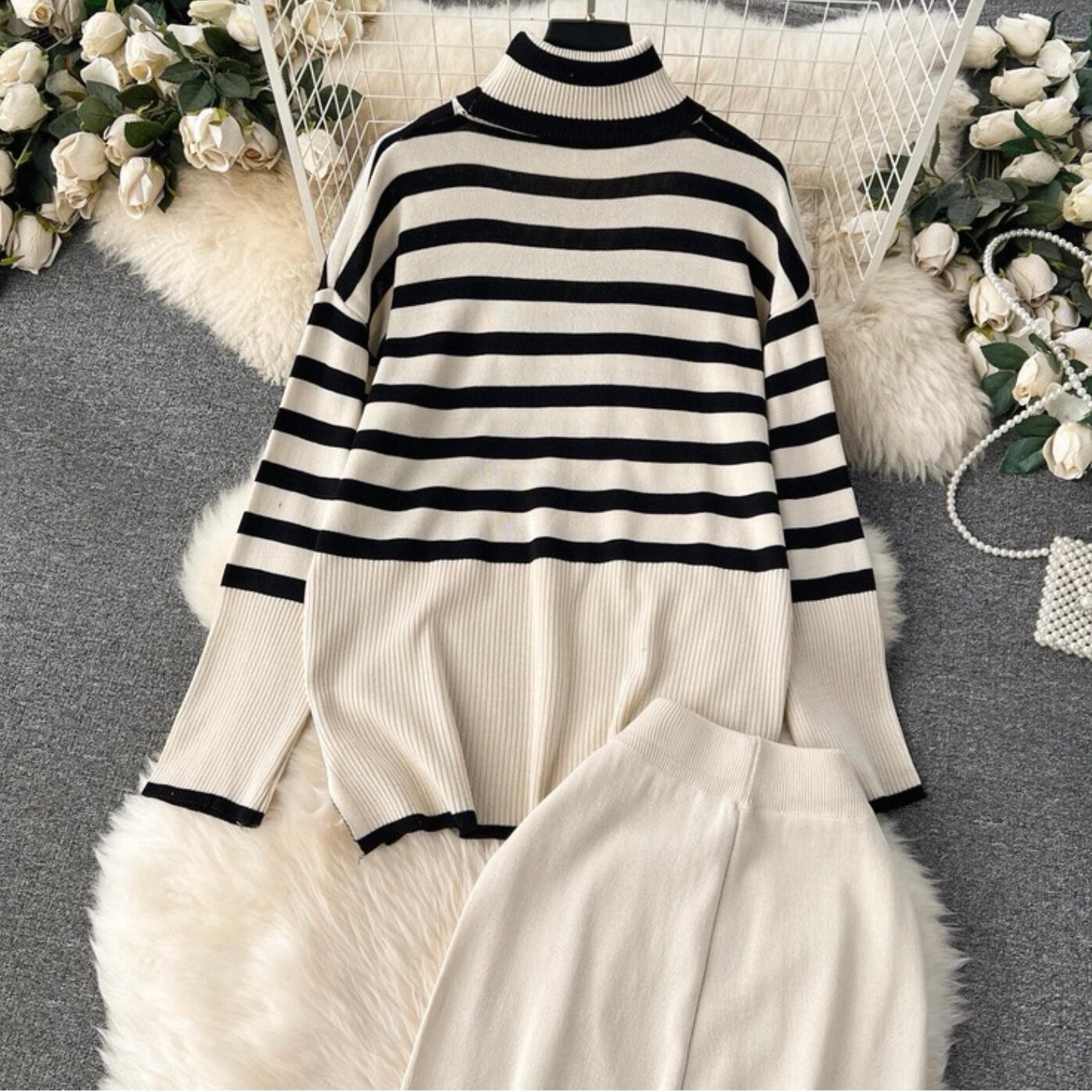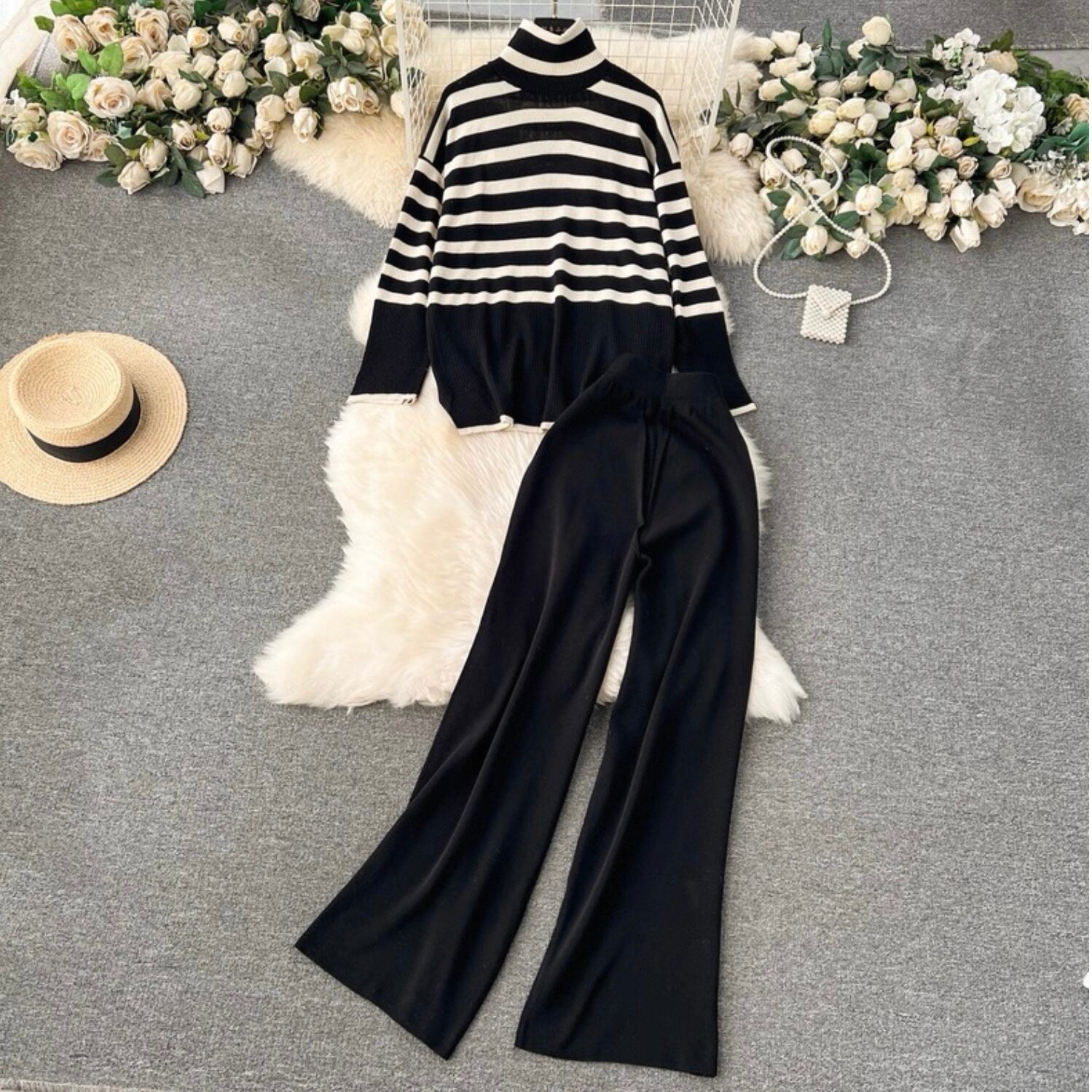 【set】タートルネックニットトップス×フレアパンツ2色 HK0270