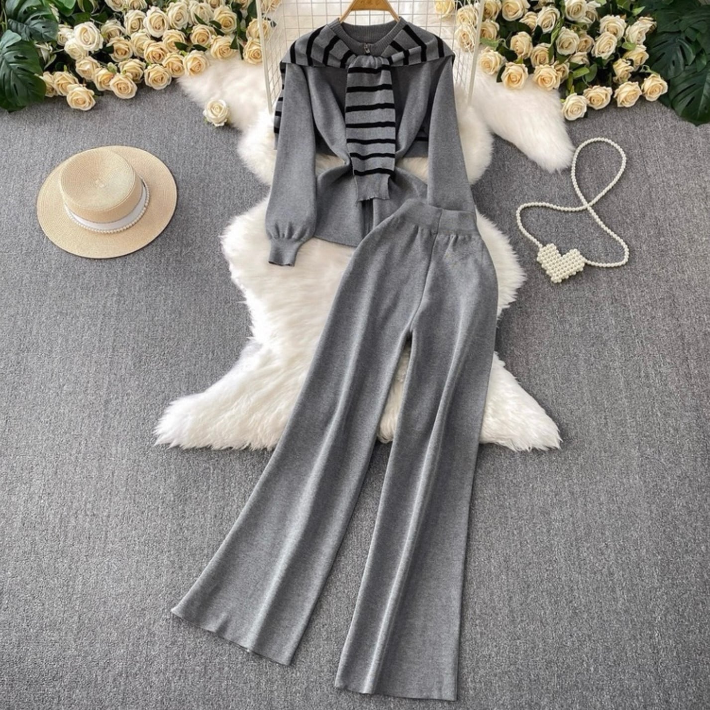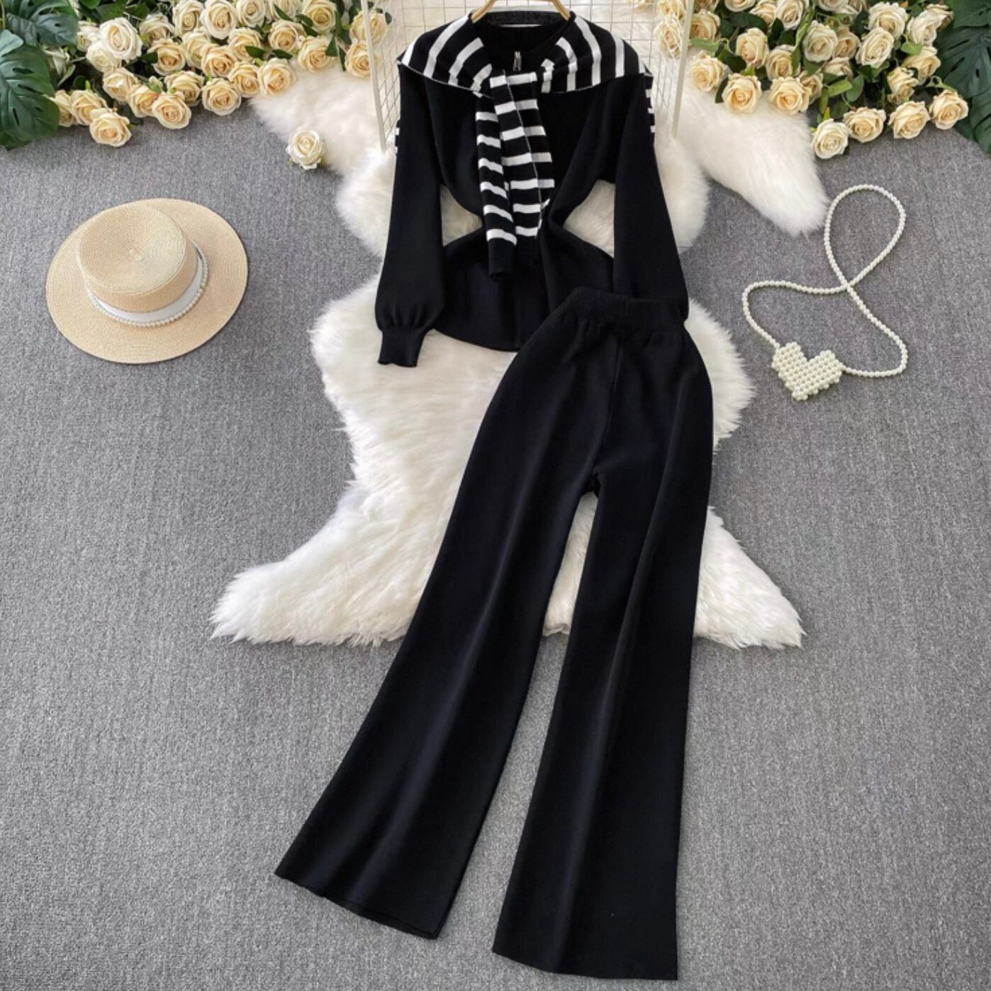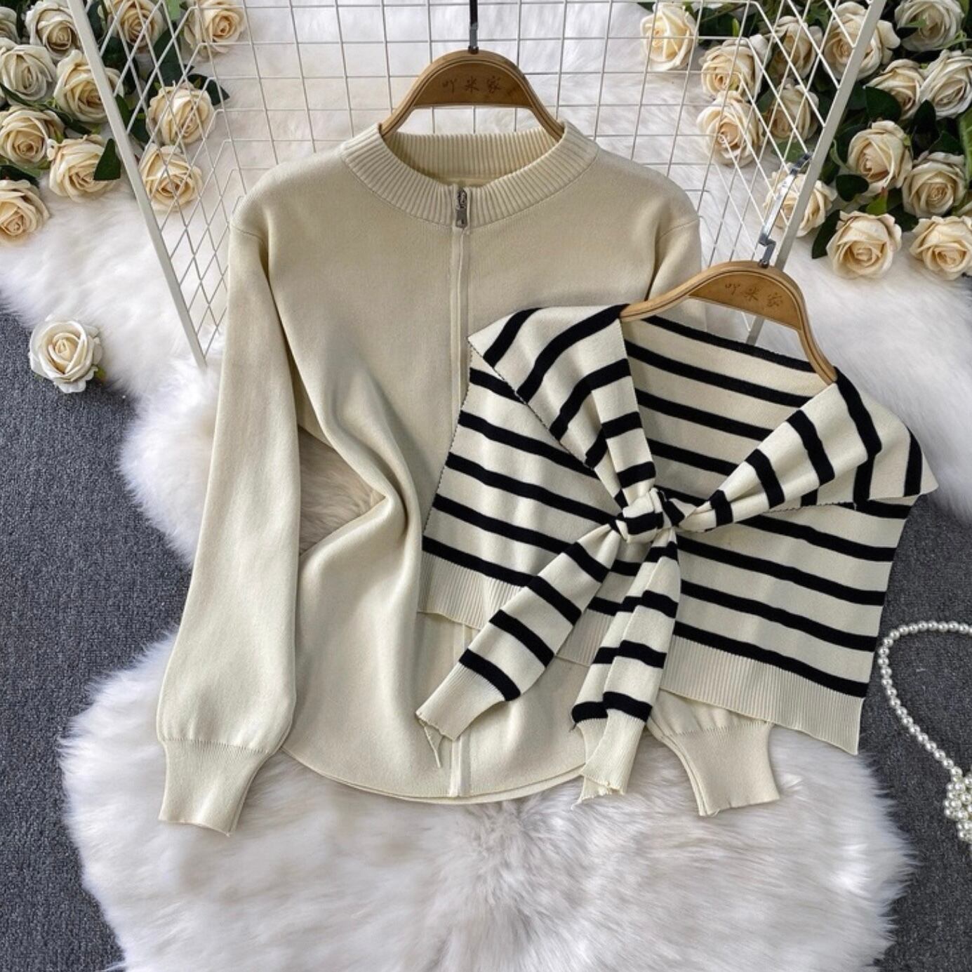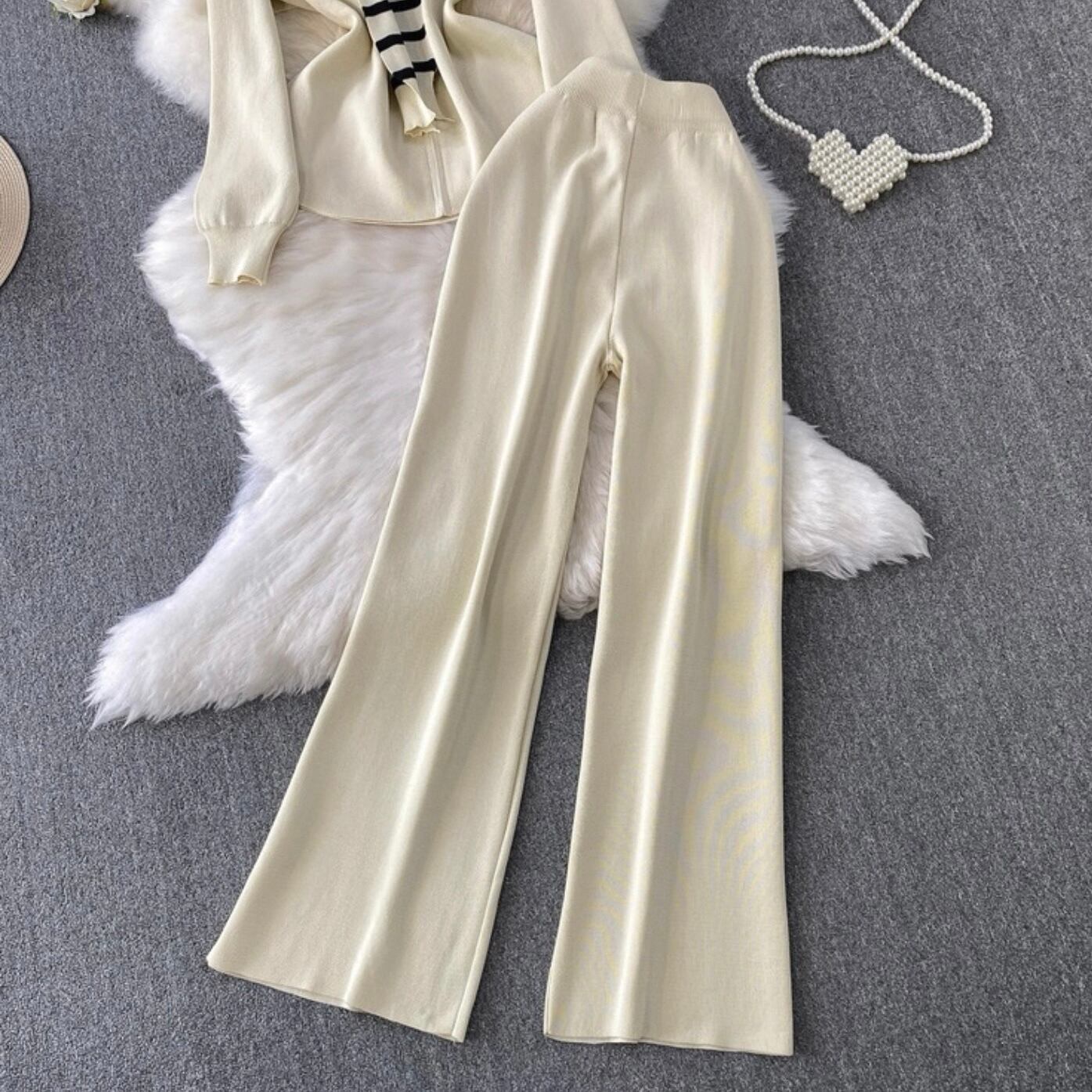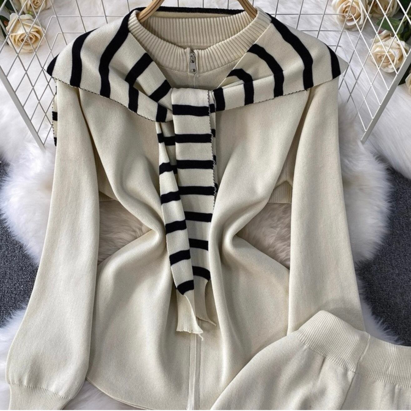 【set】着回しノーマルジャンパー×フレアパンツ×重ね着ボーダーニット3色 HK0272