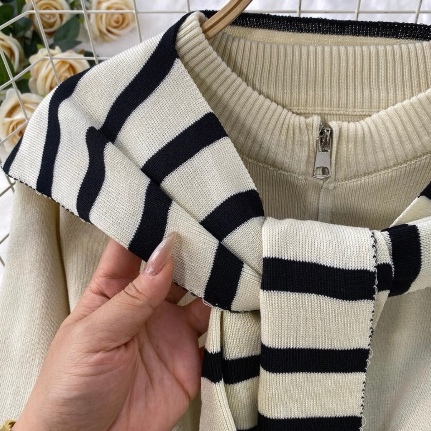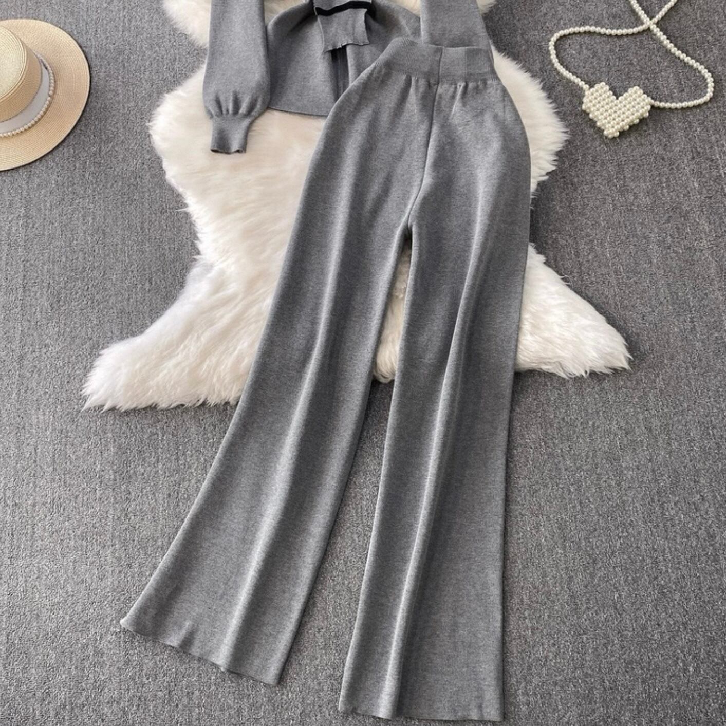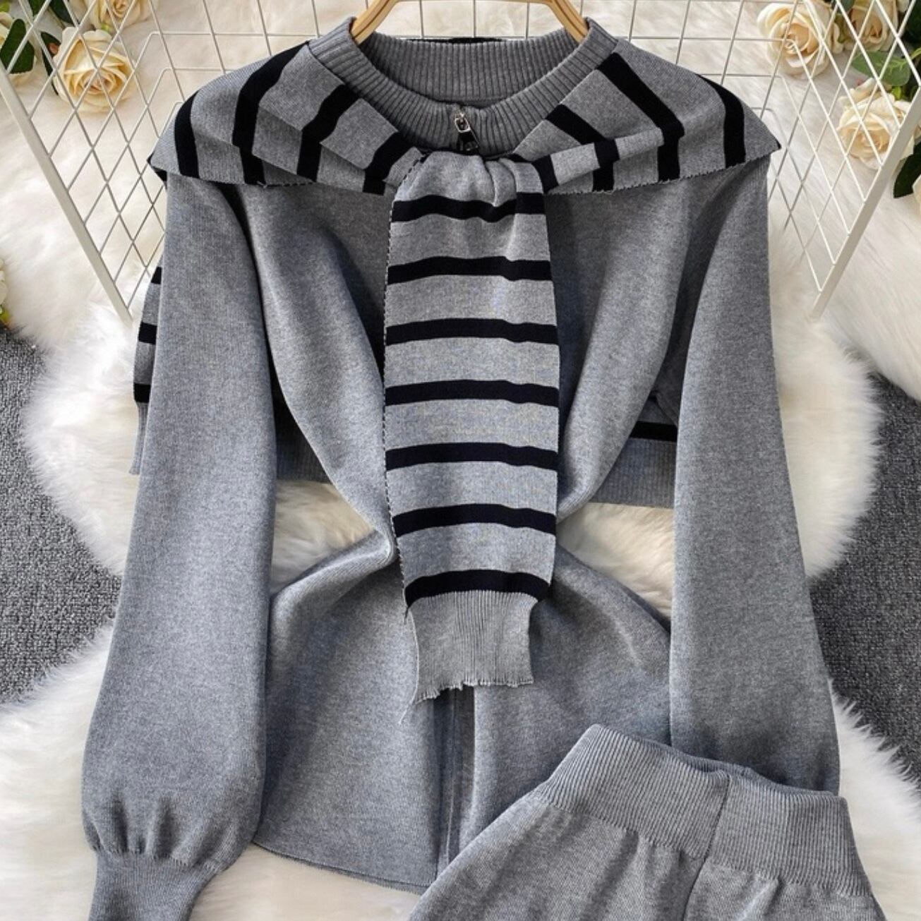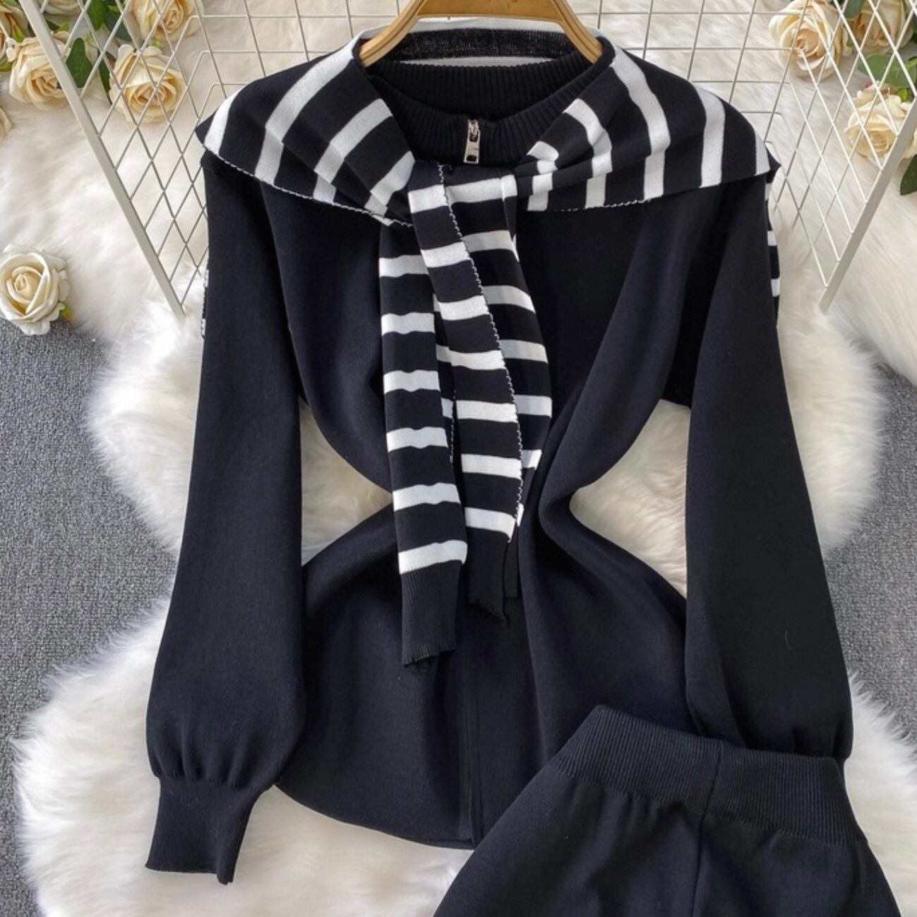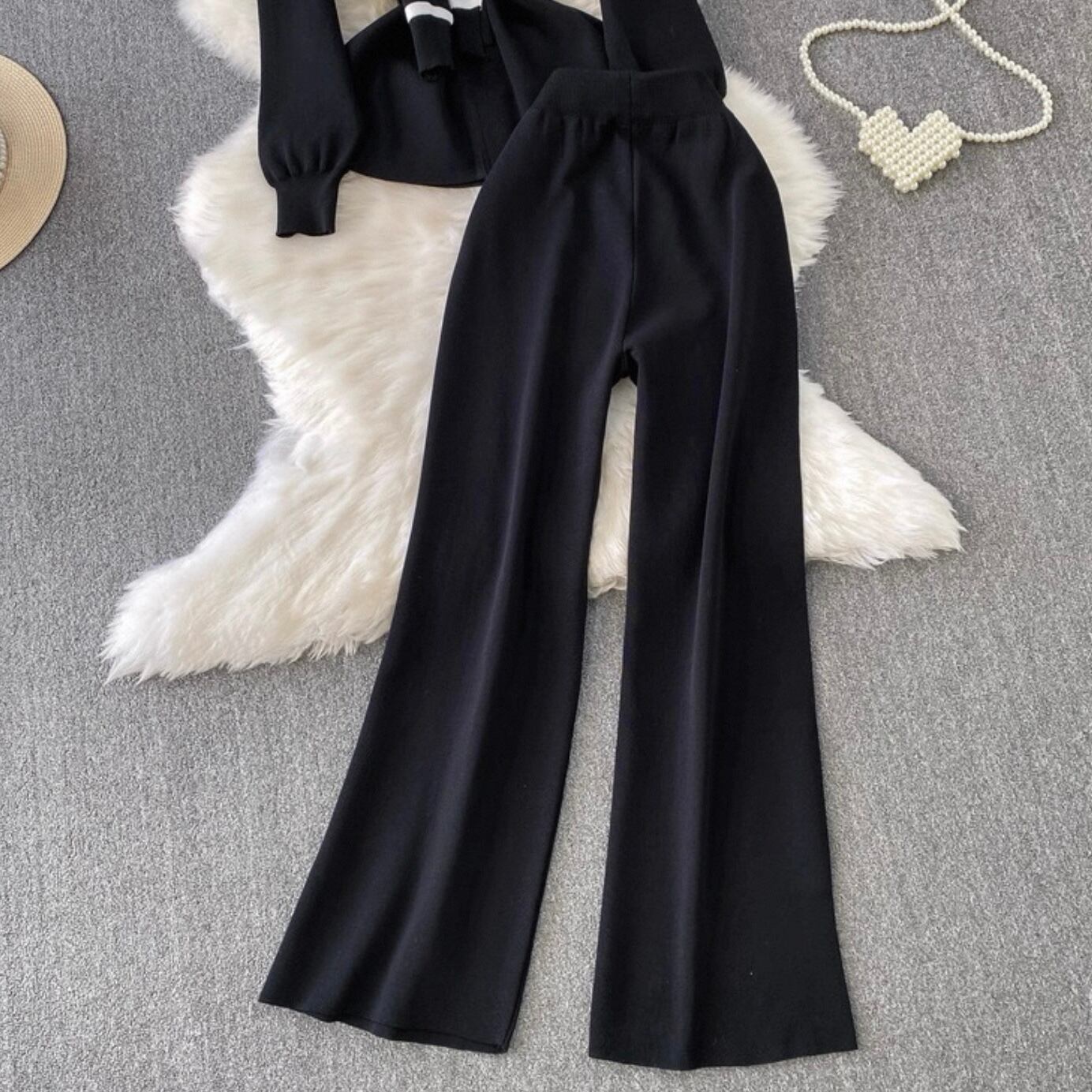 【set】着回しノーマルジャンパー×フレアパンツ×重ね着ボーダーニット3色 HK0272