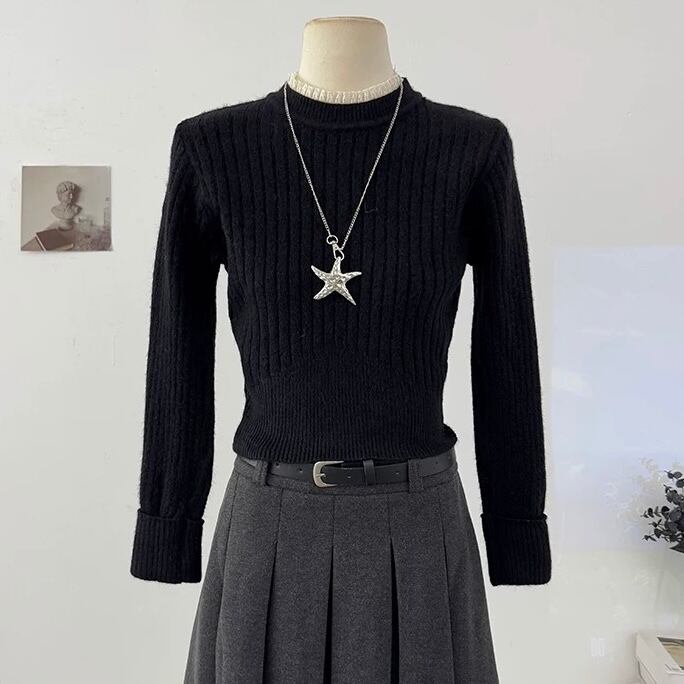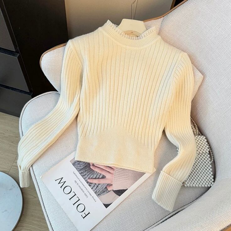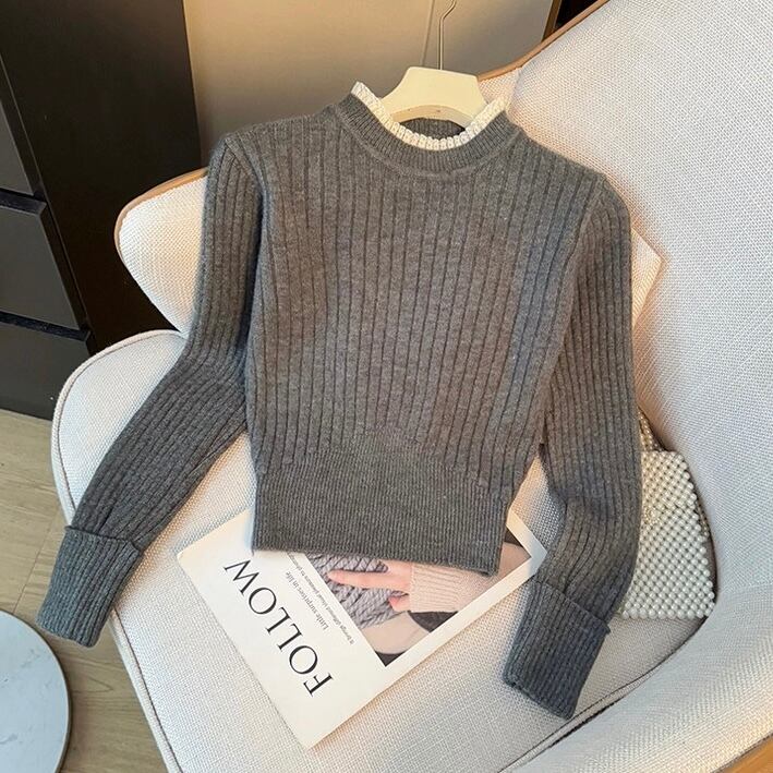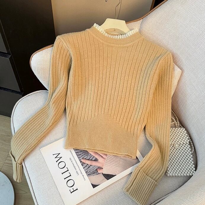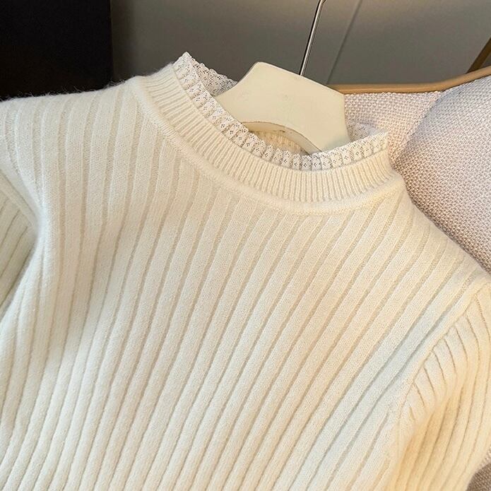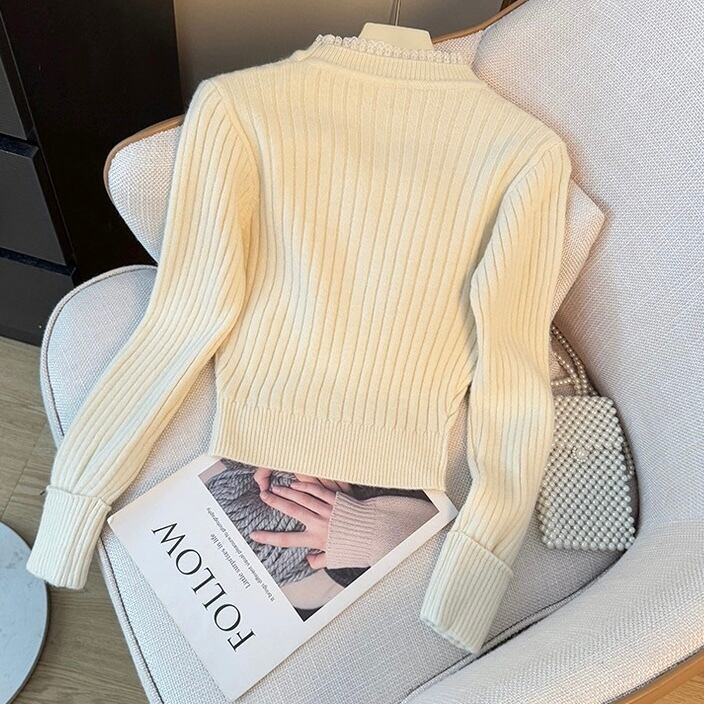 【tops】フリルネックニットトップス4色 RD023