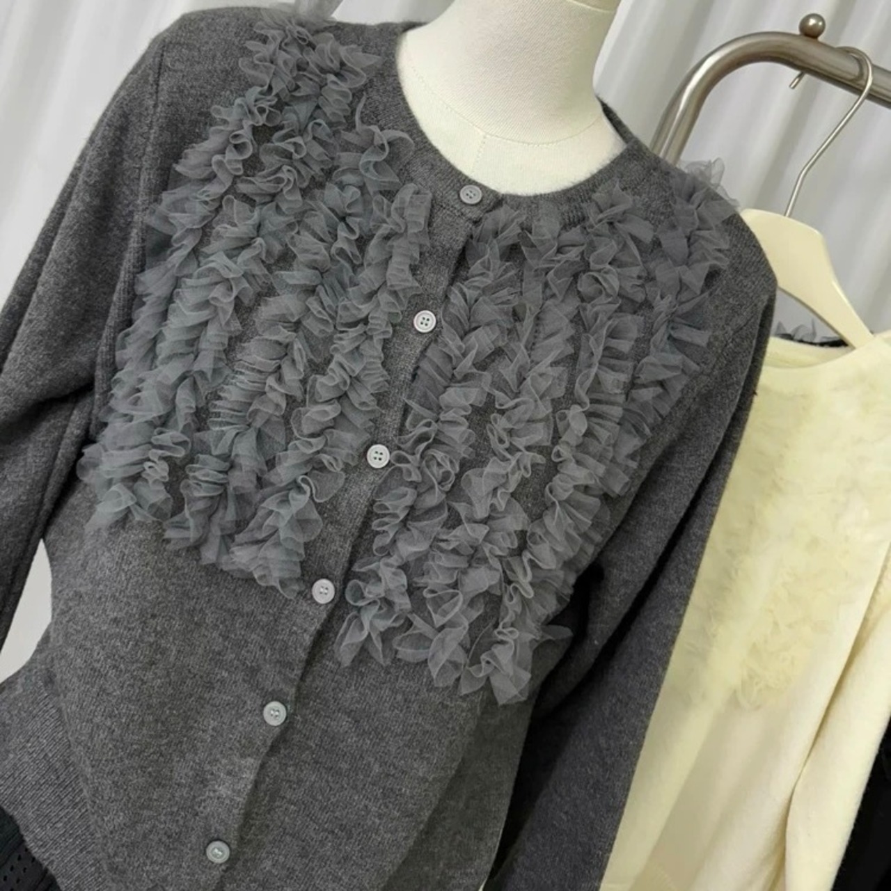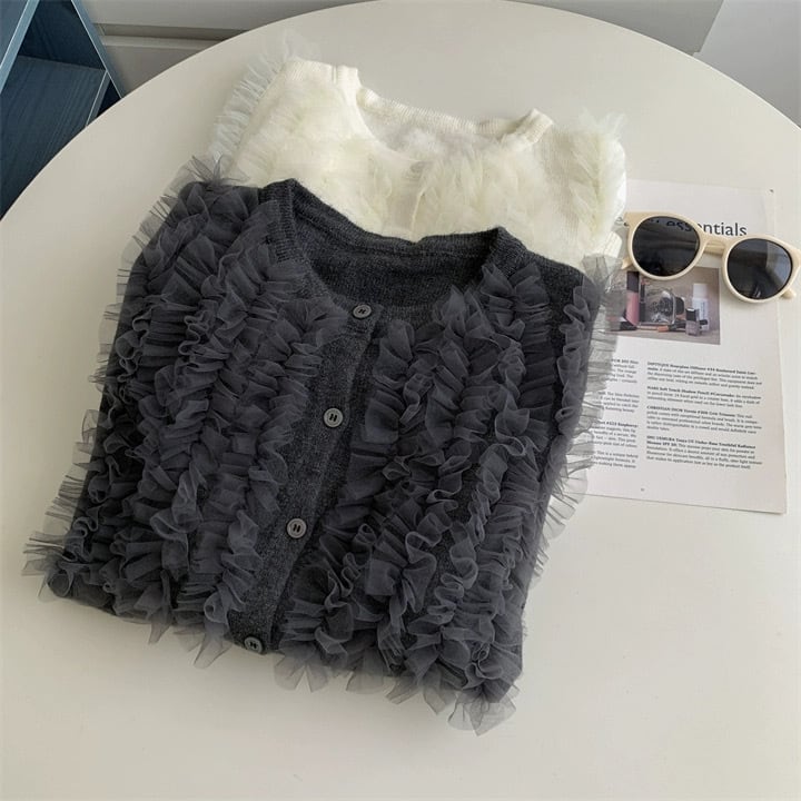 【tops】チュールフリルカーディガン3色 RD0048