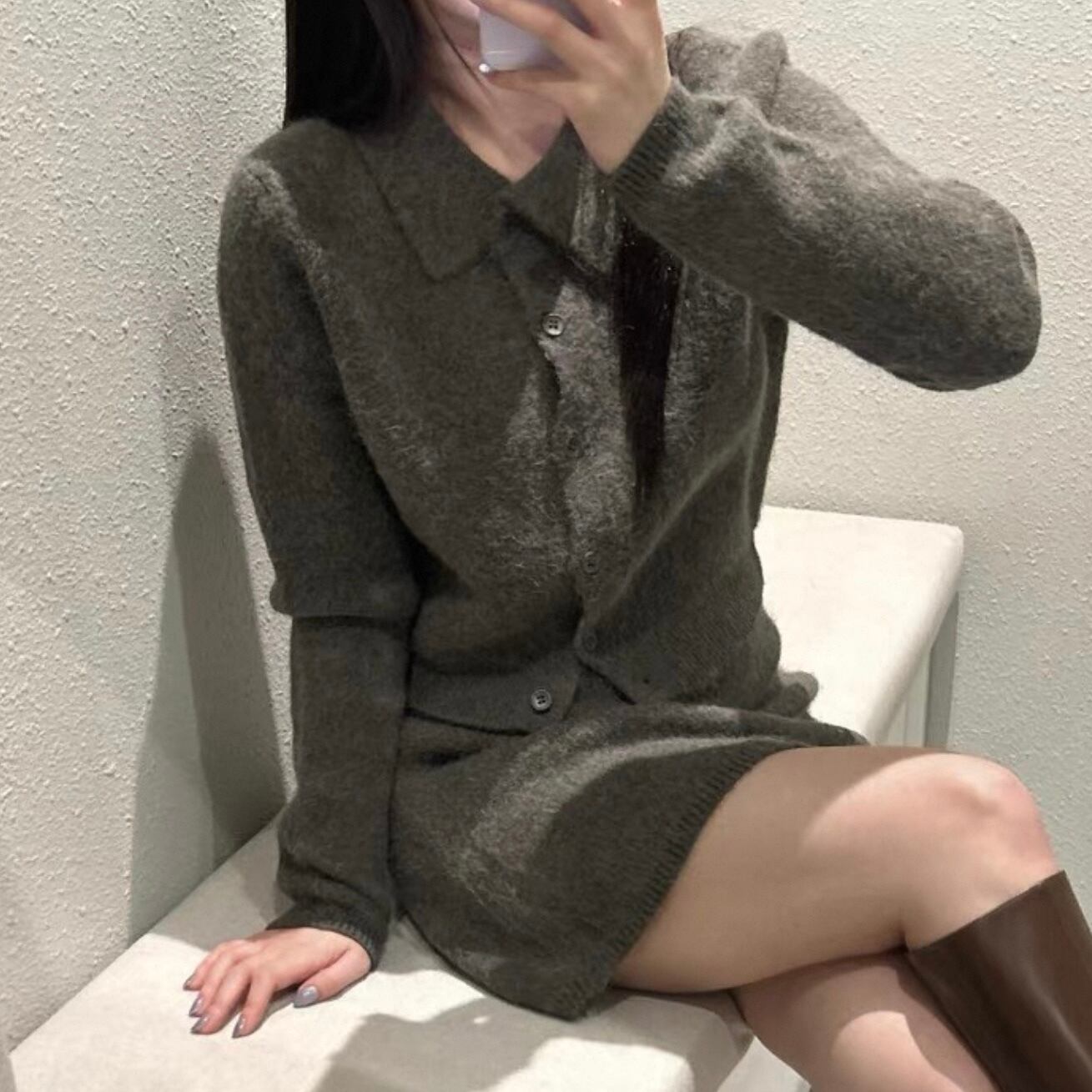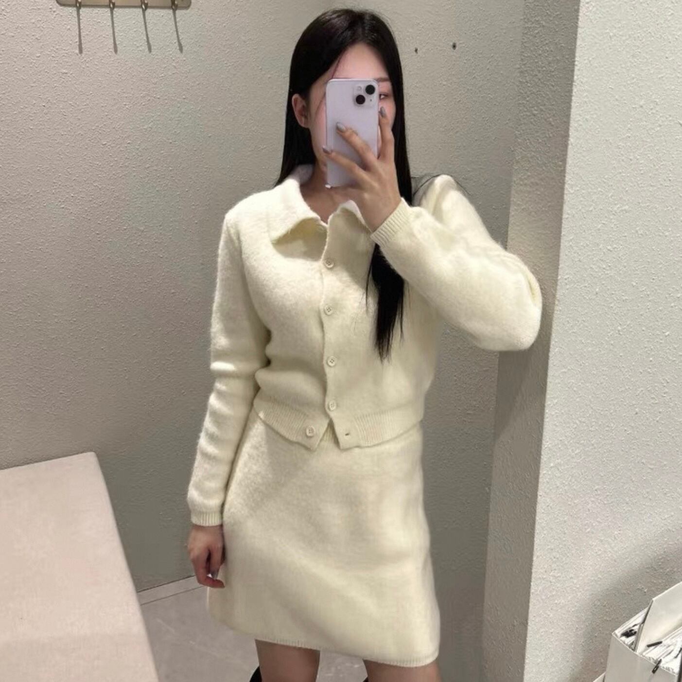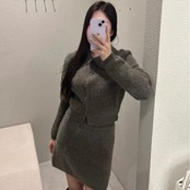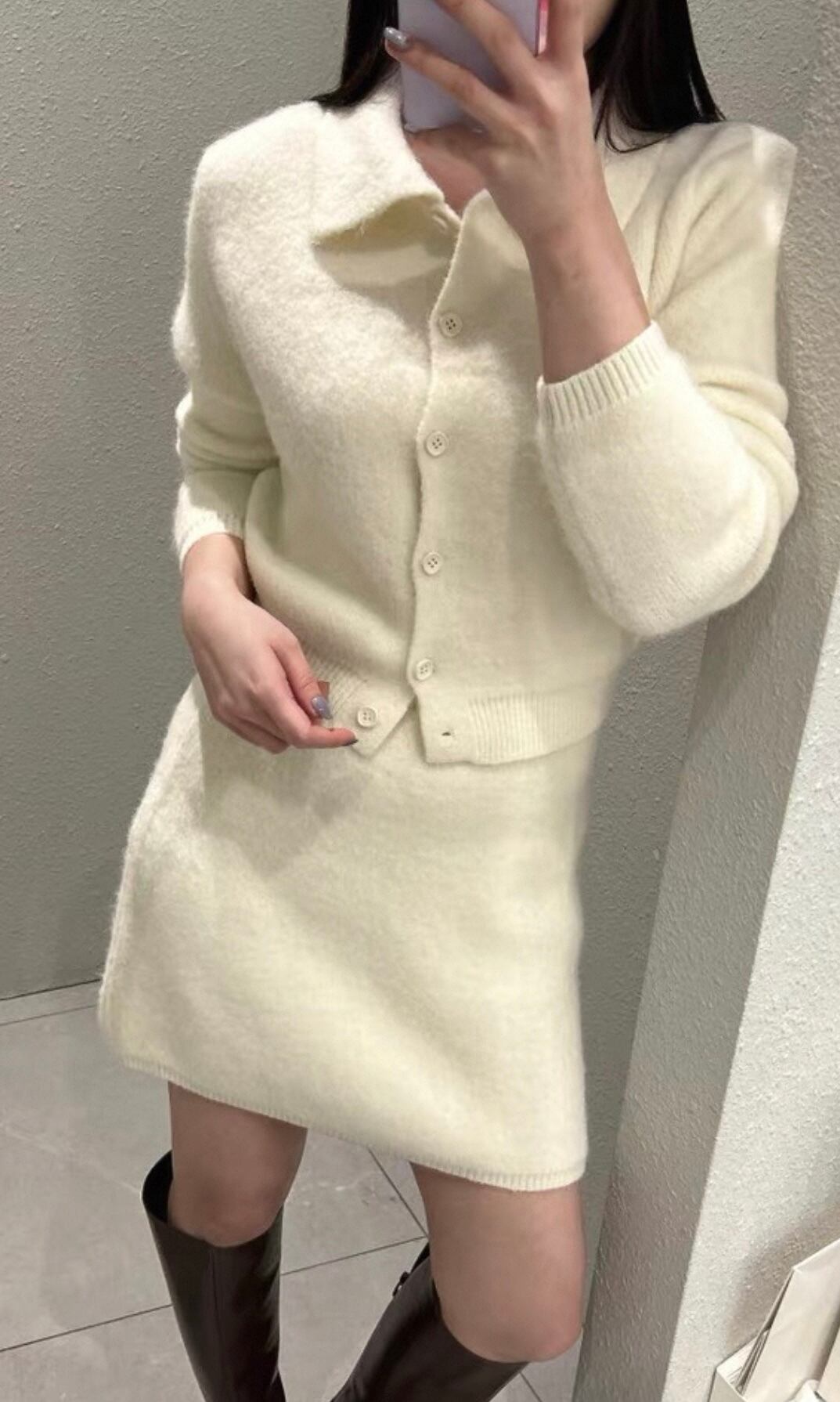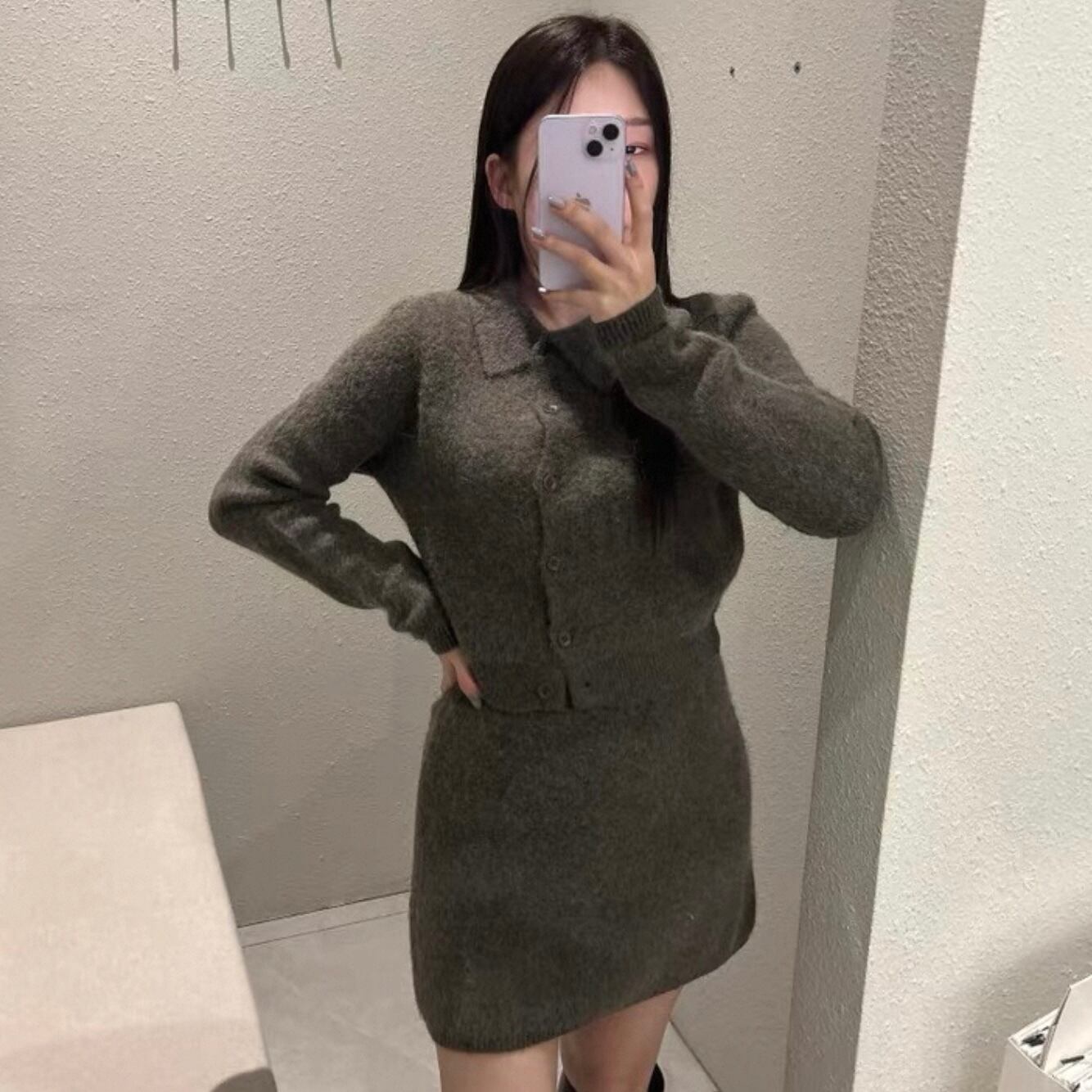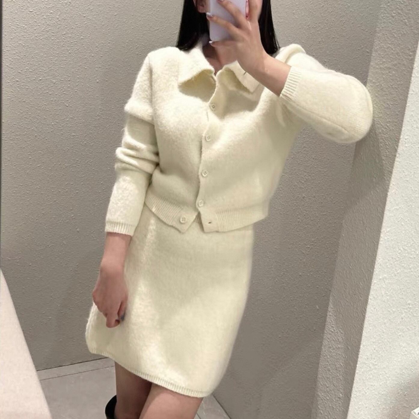 【set】襟付きニットトップス×ハイウエストミニスカート2色 HK0282
