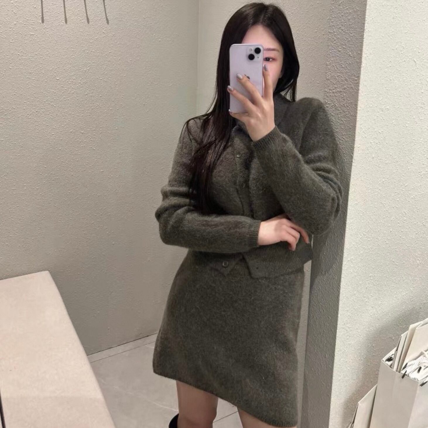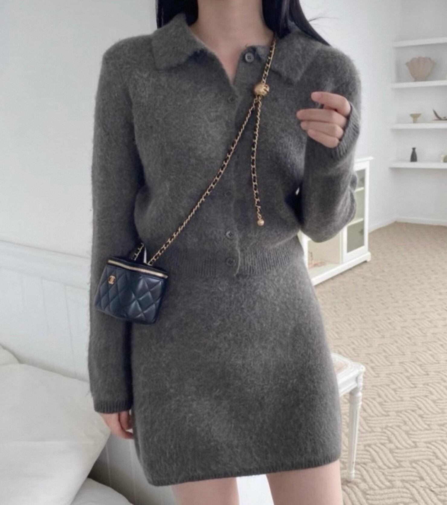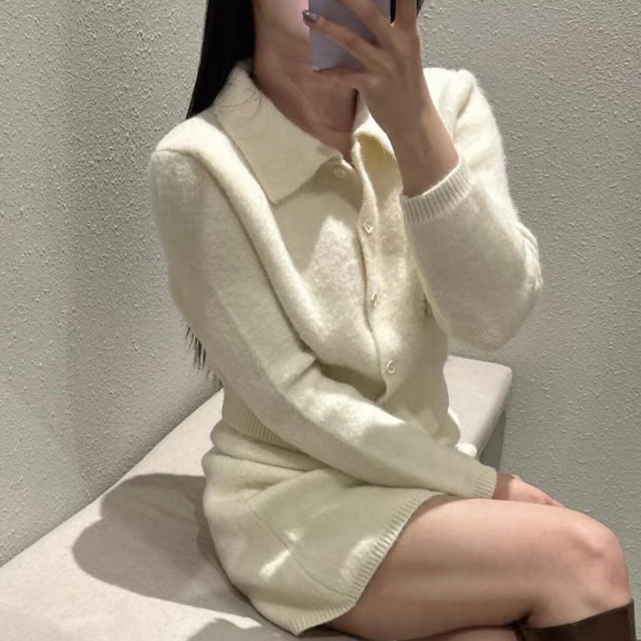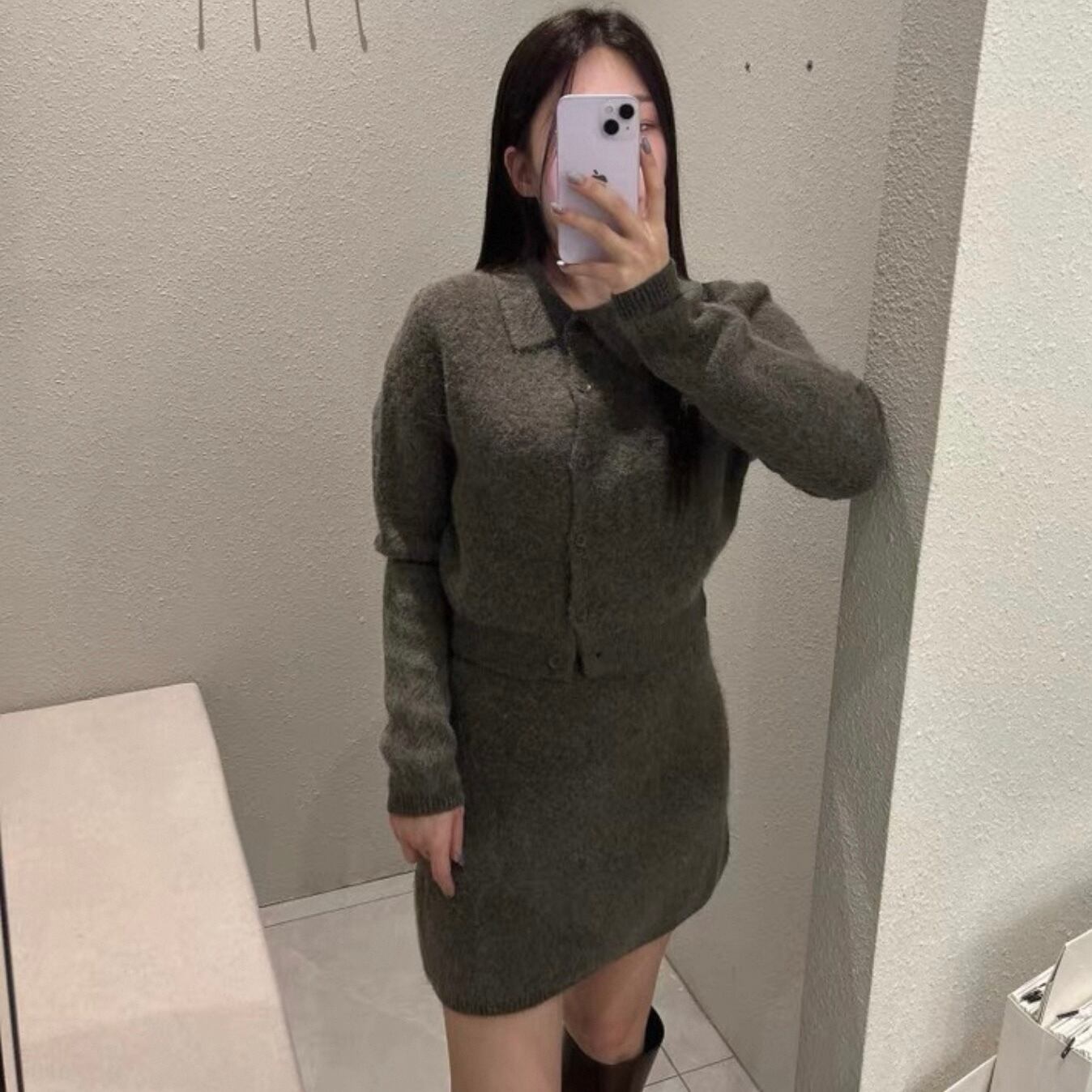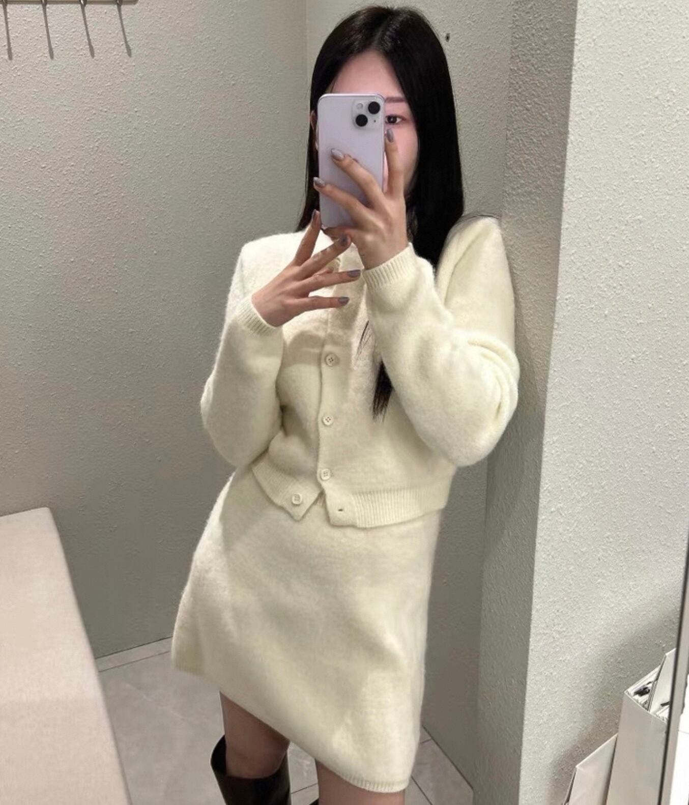 【set】襟付きニットトップス×ハイウエストミニスカート2色 HK0282