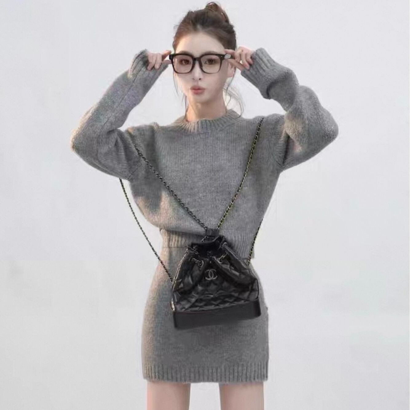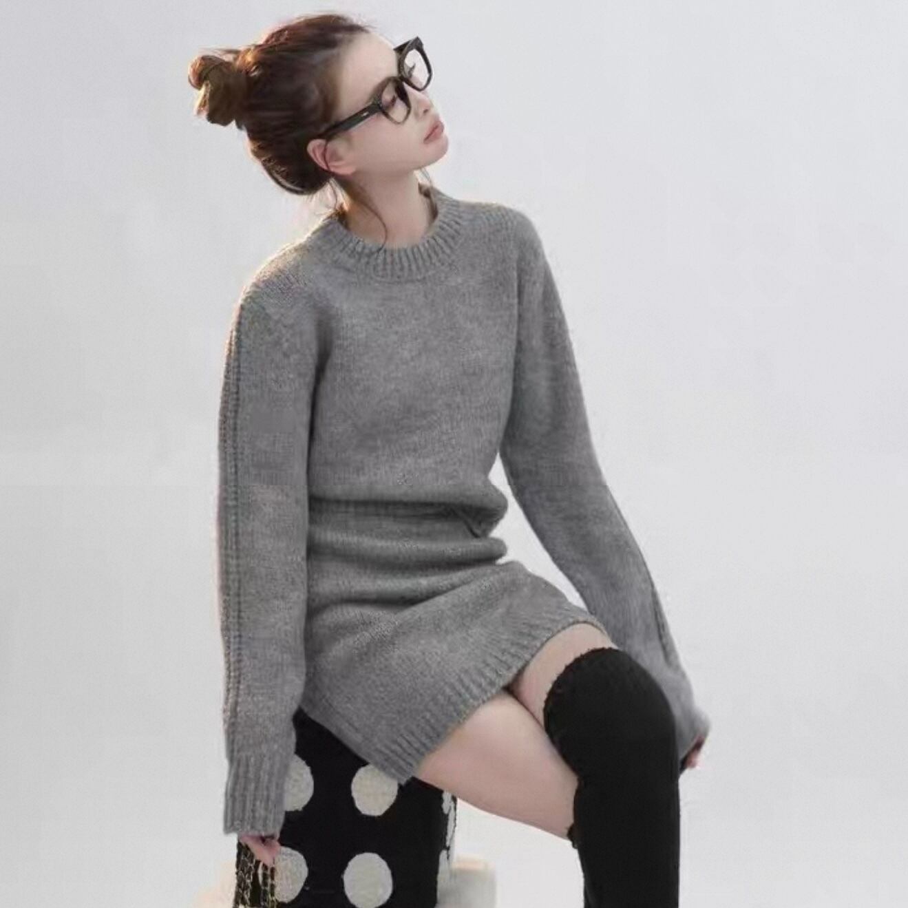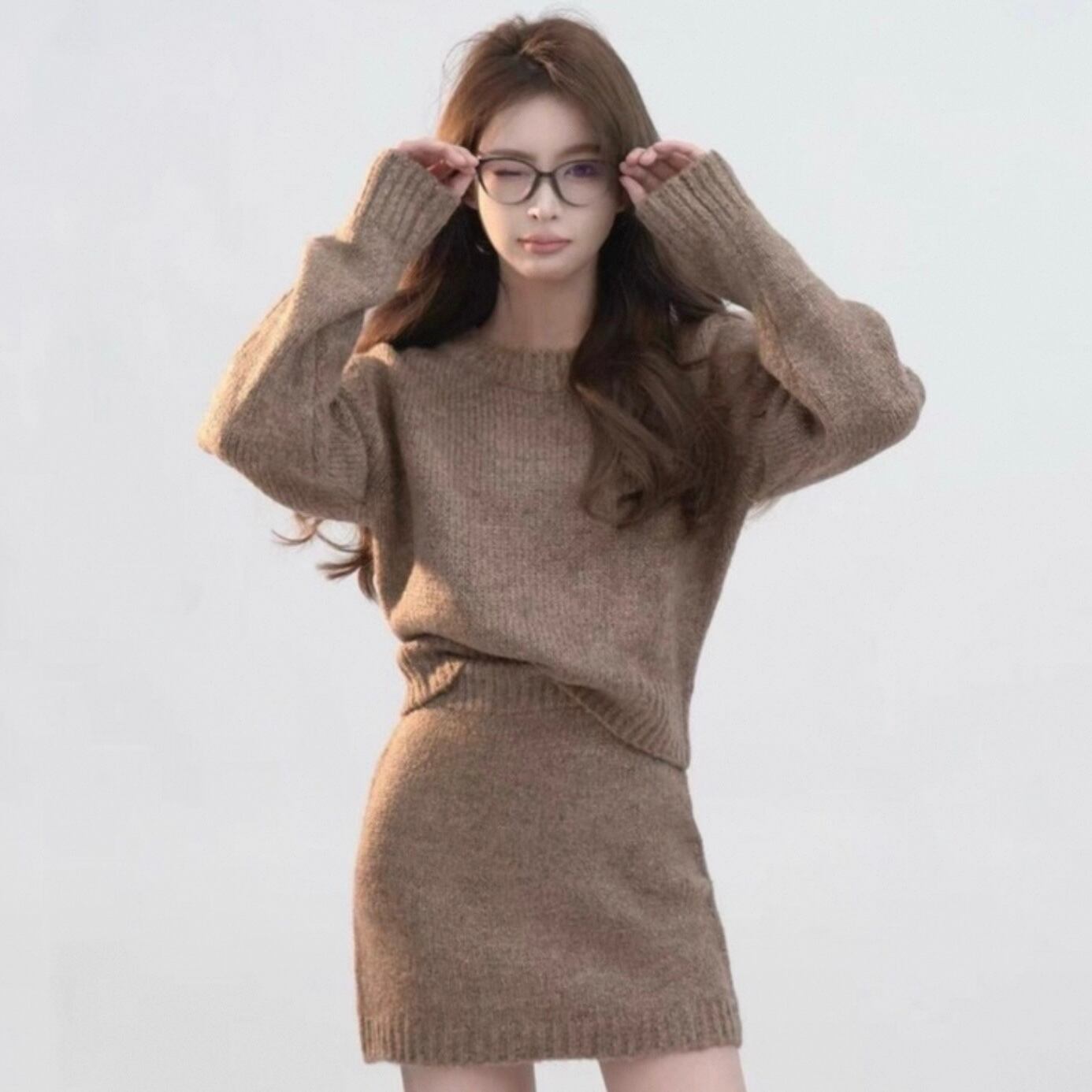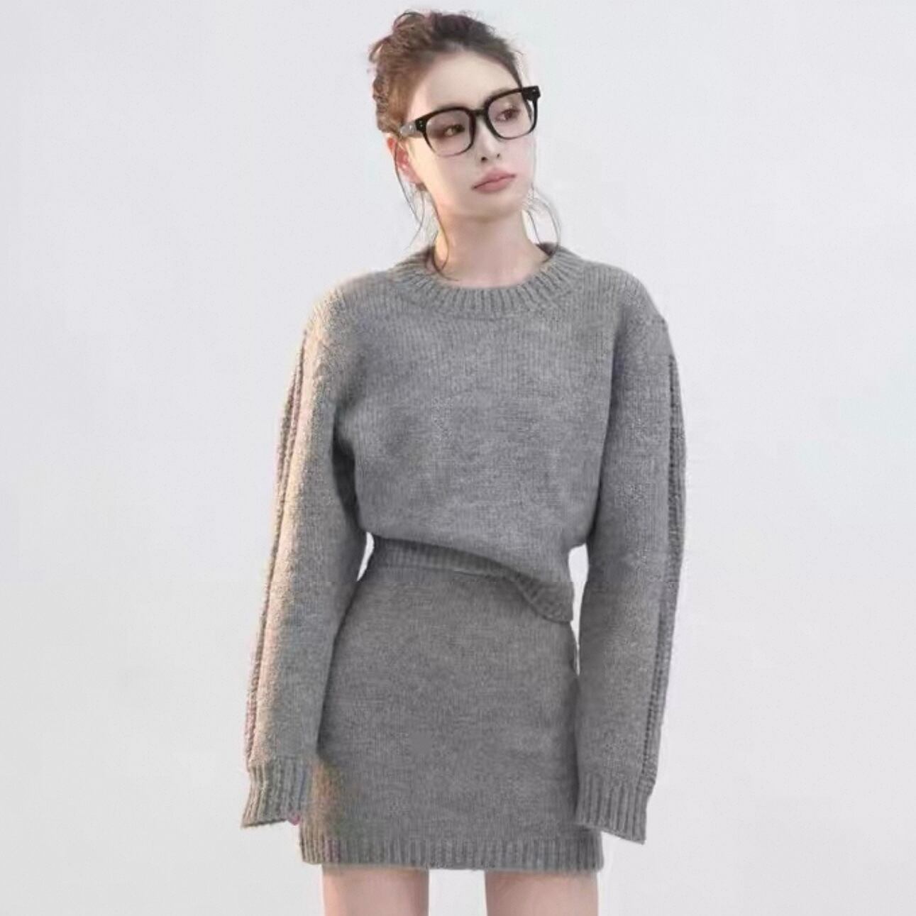 【set】ニットプルオーバー×ニットミニスカート3色 HK0283