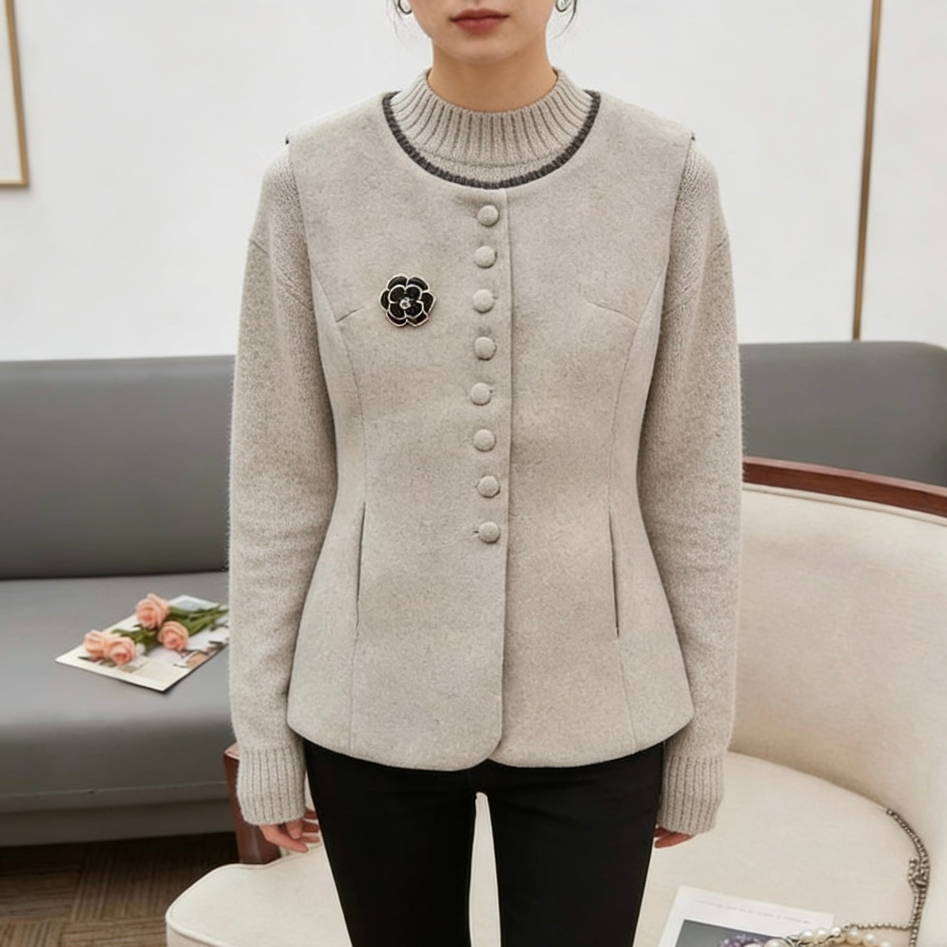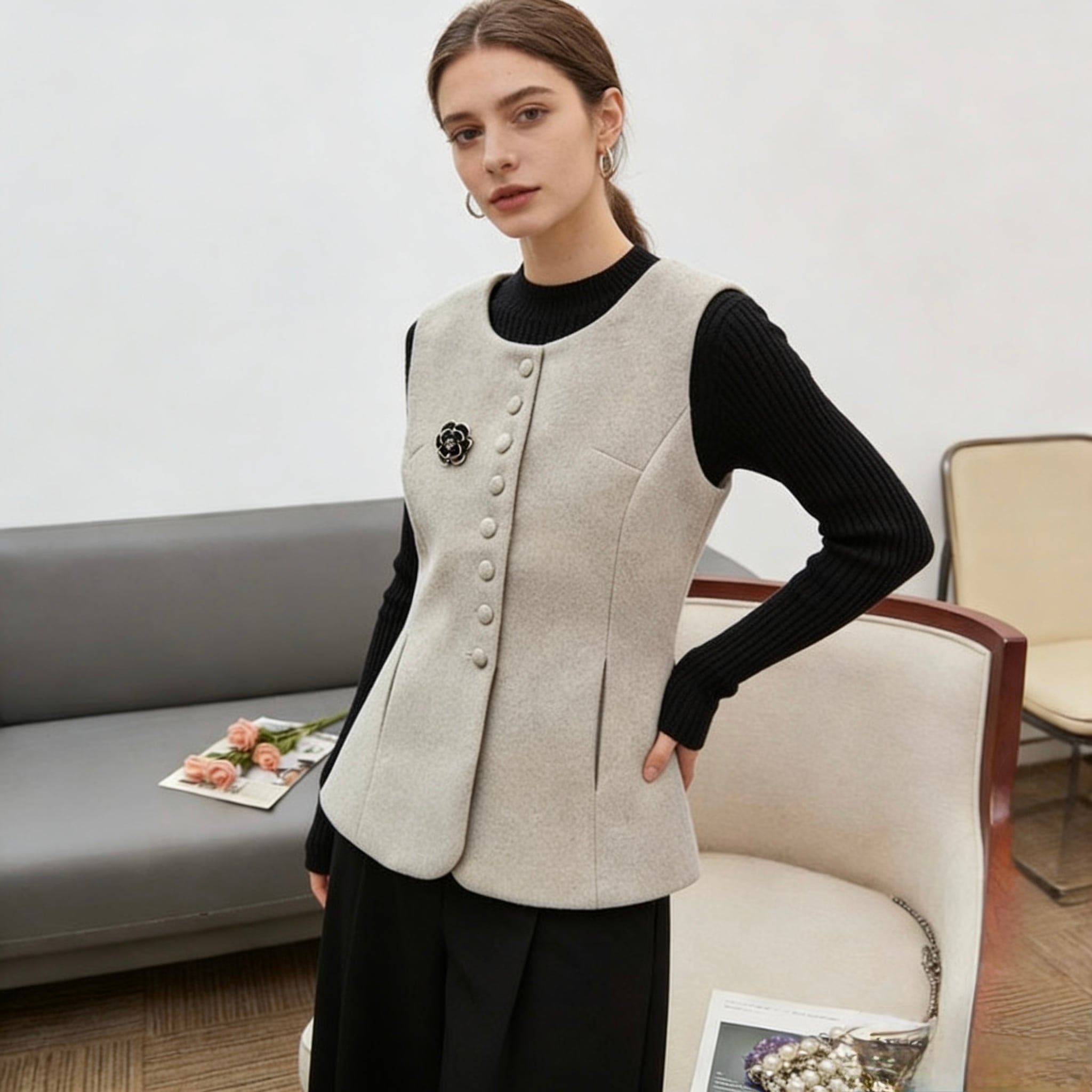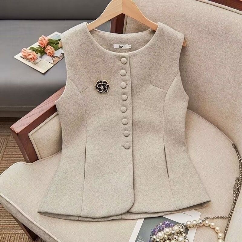 【outer】ブローチ付きベストジレトップス RD0061