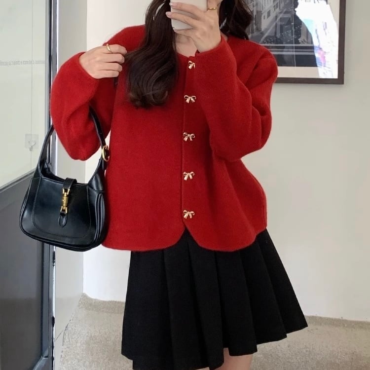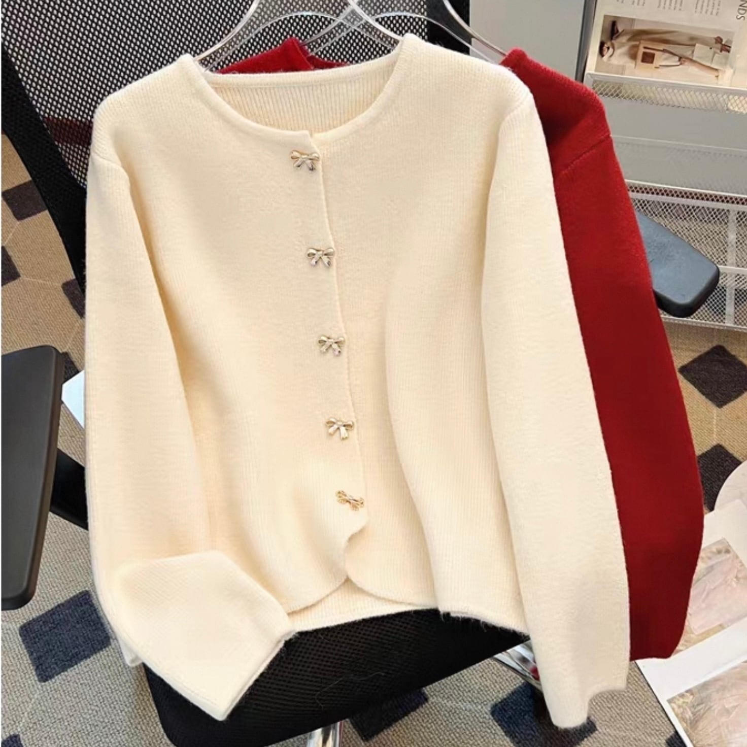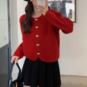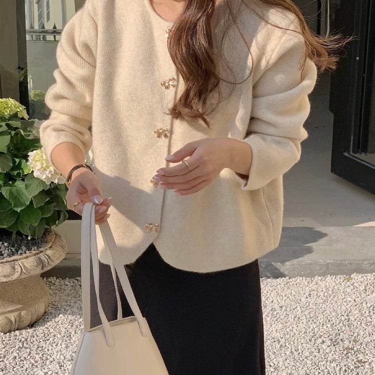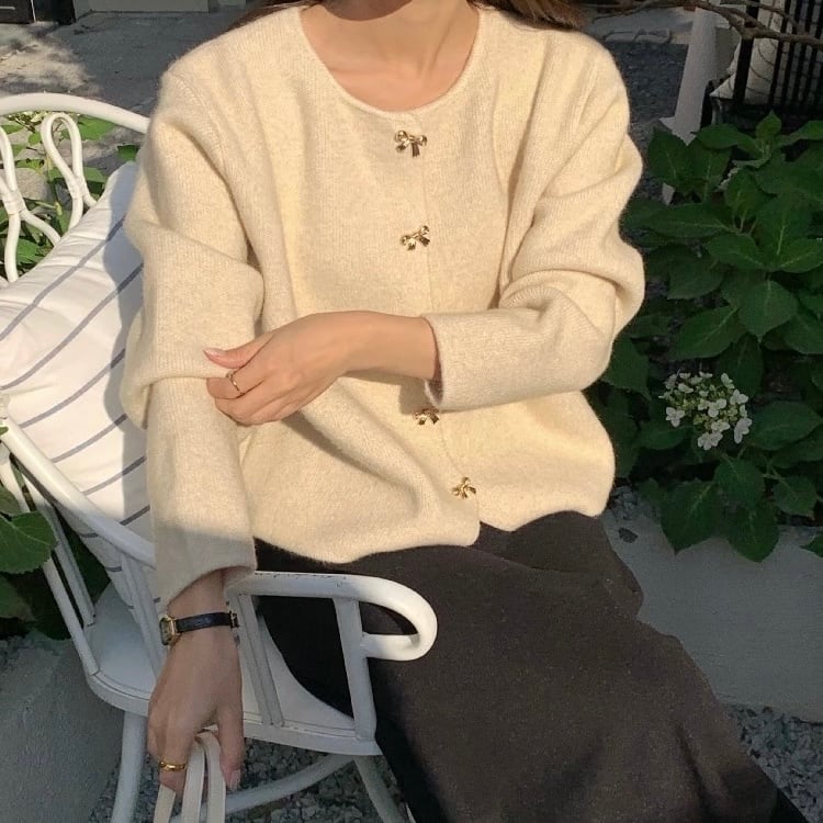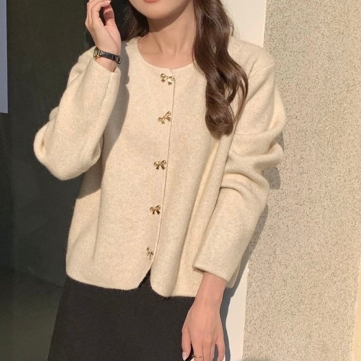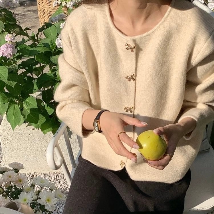 【outer】リボン釦ニットカーディガン3色 HK0284
