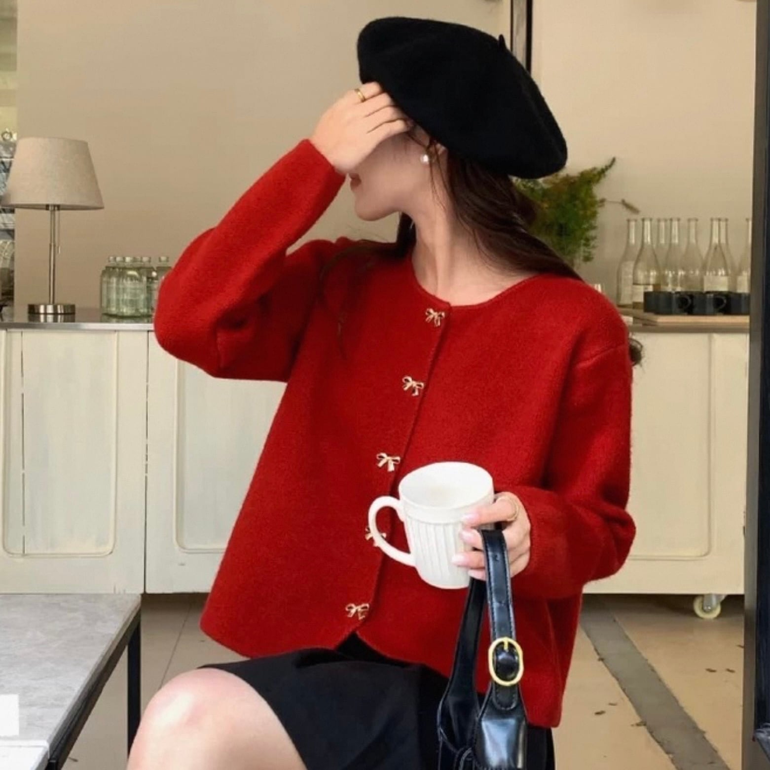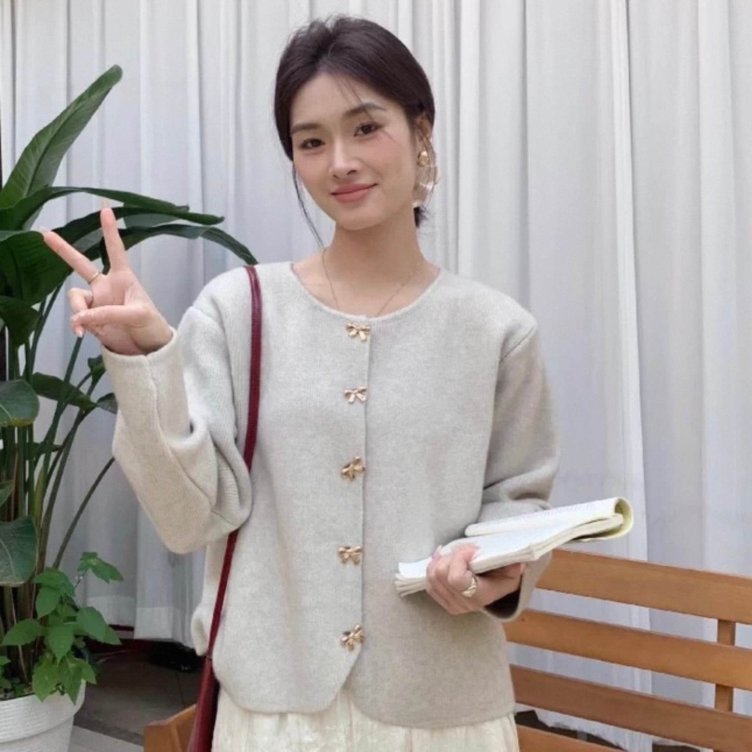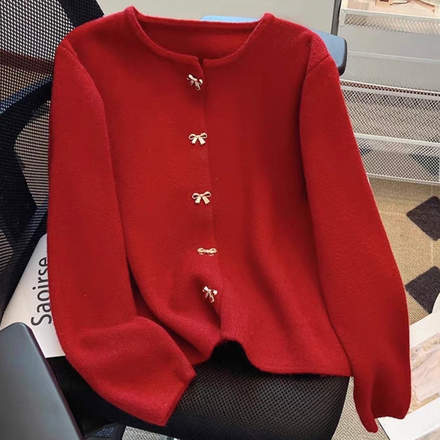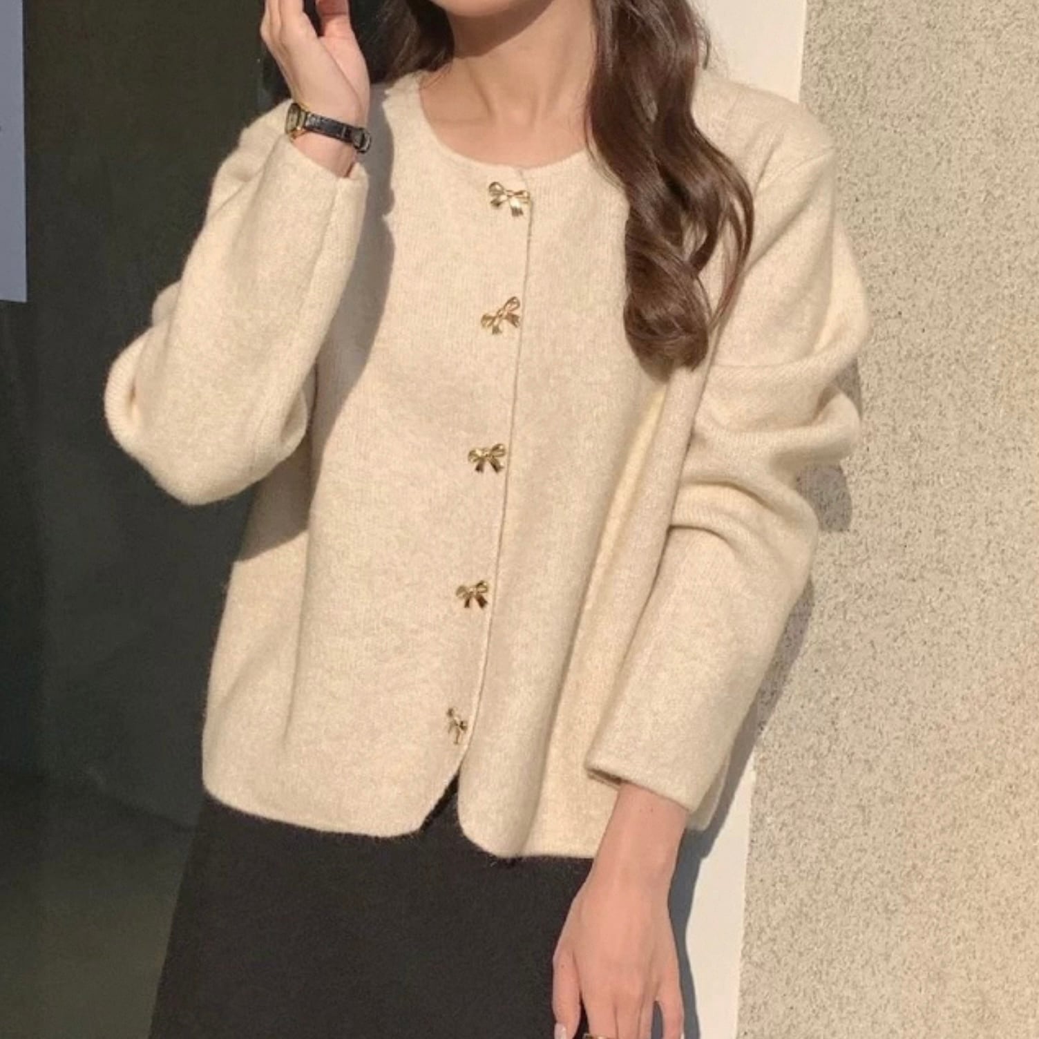 【outer】リボン釦ニットカーディガン3色 HK0284
