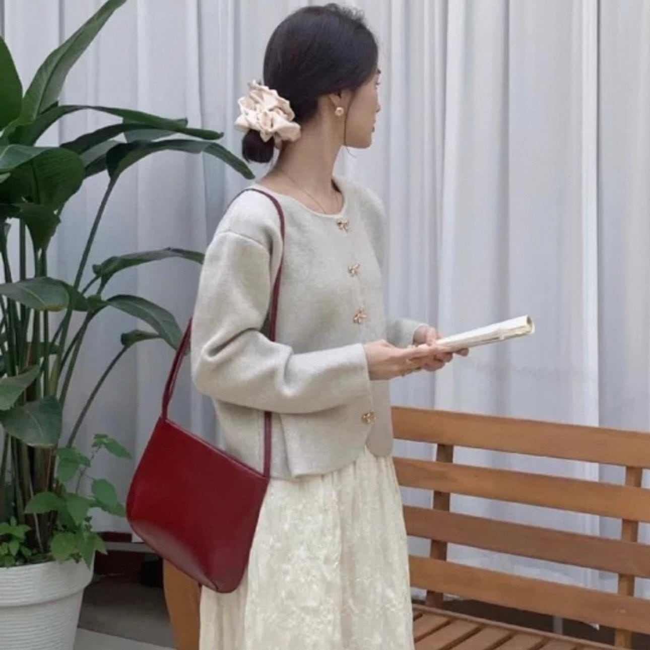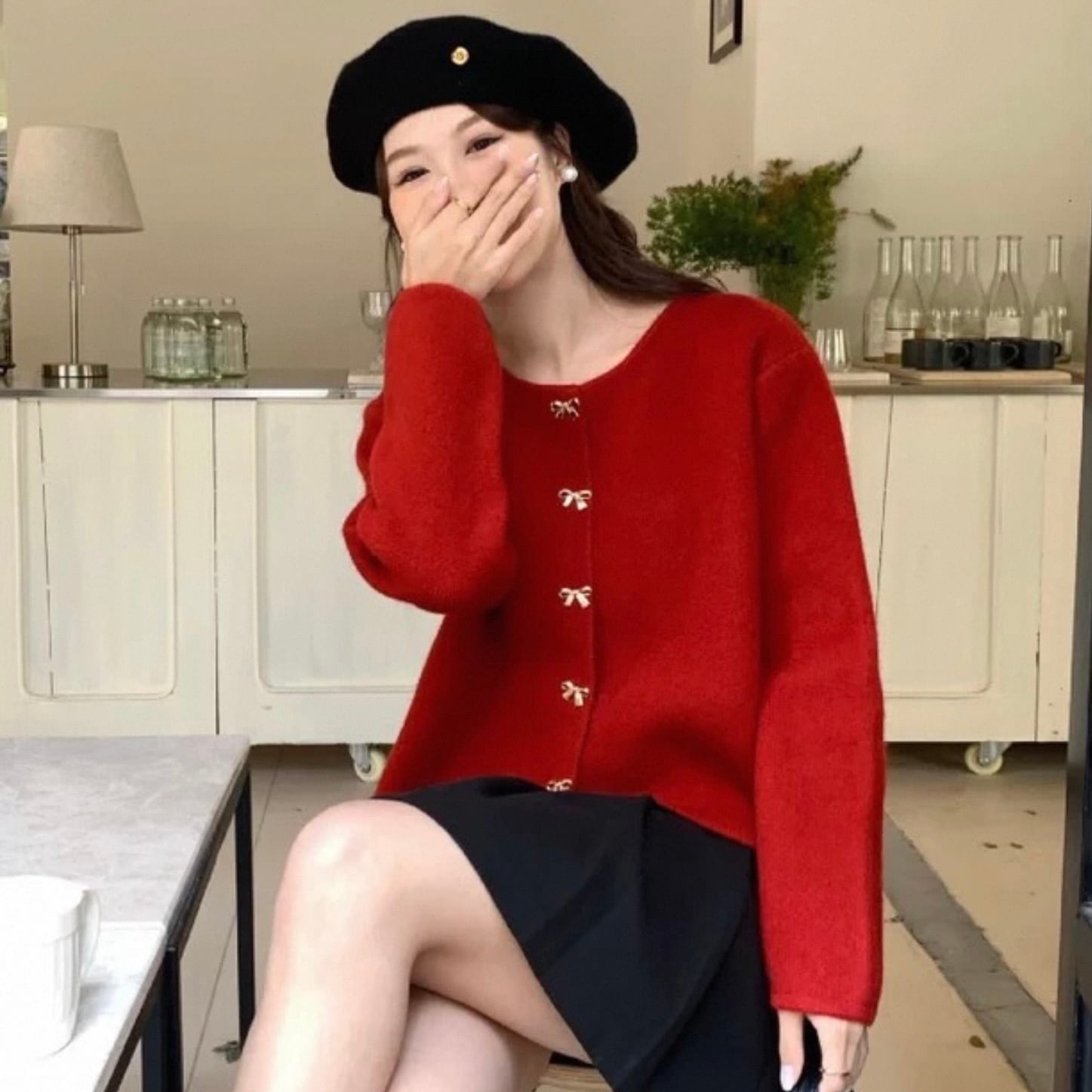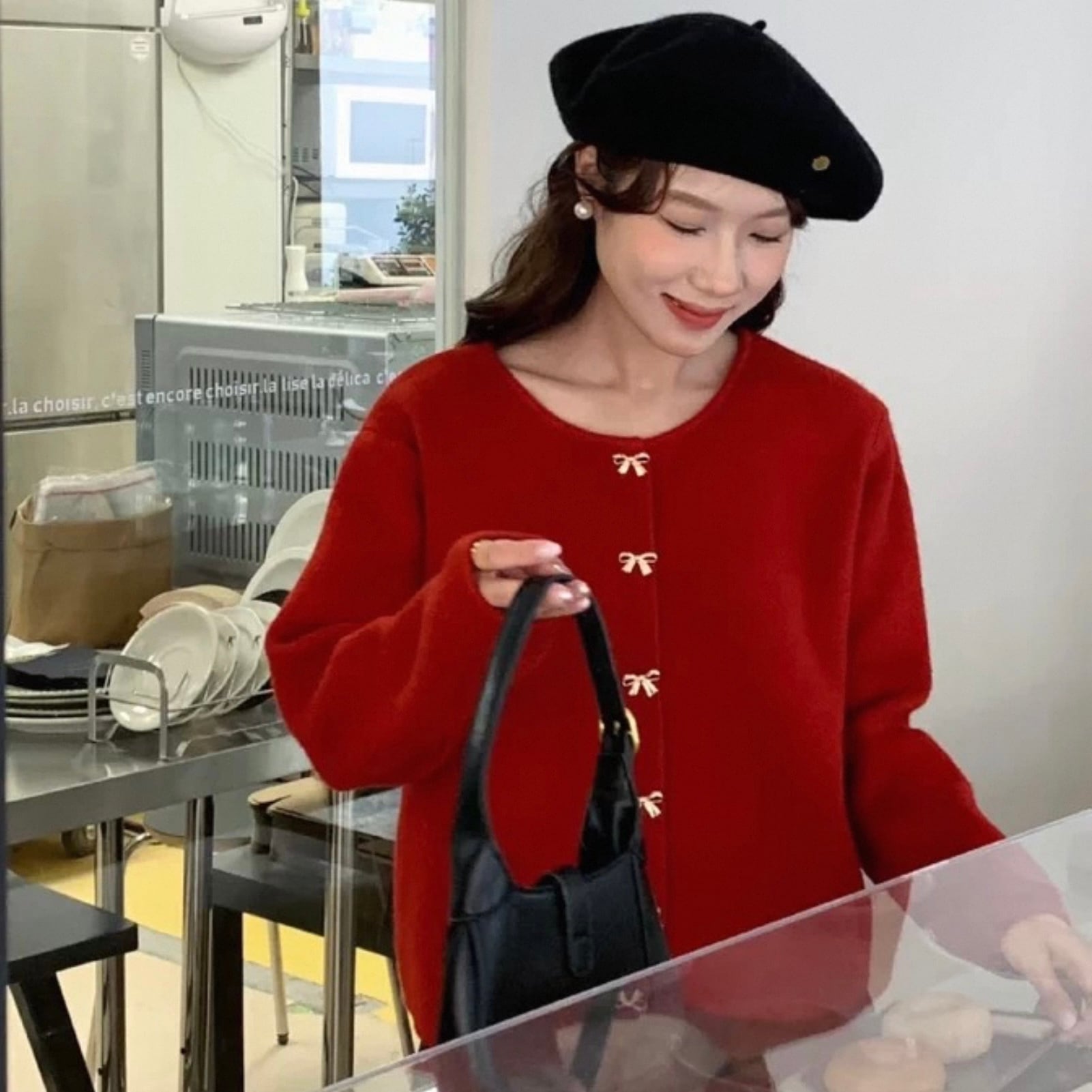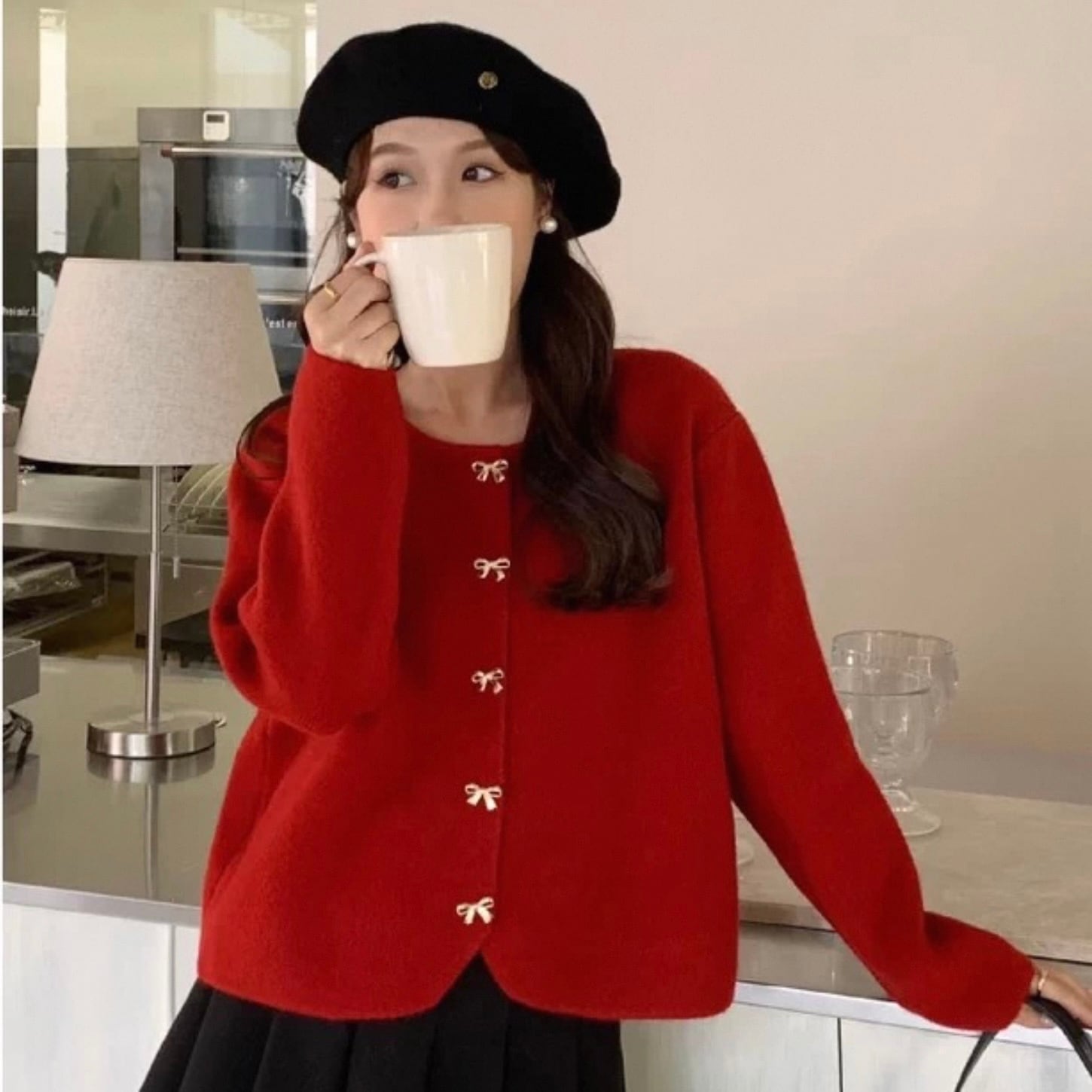 【outer】リボン釦ニットカーディガン3色 HK0284