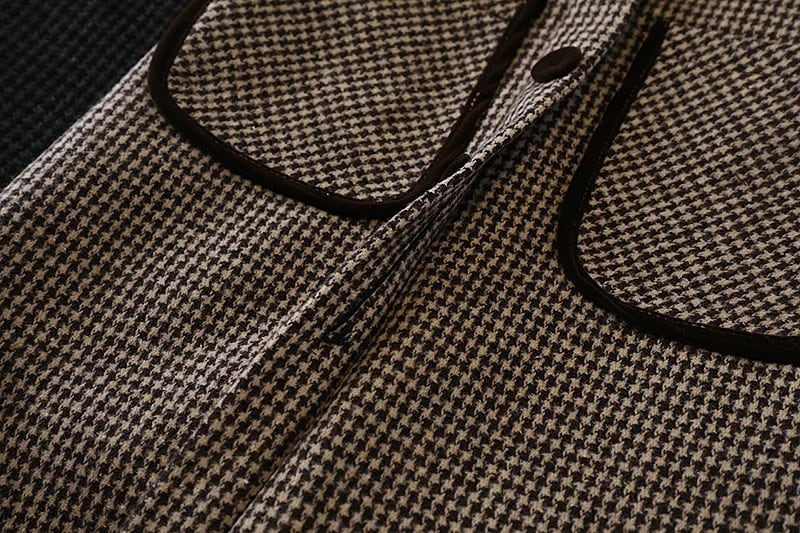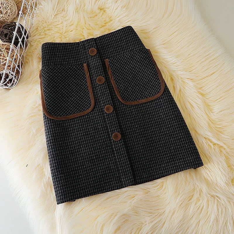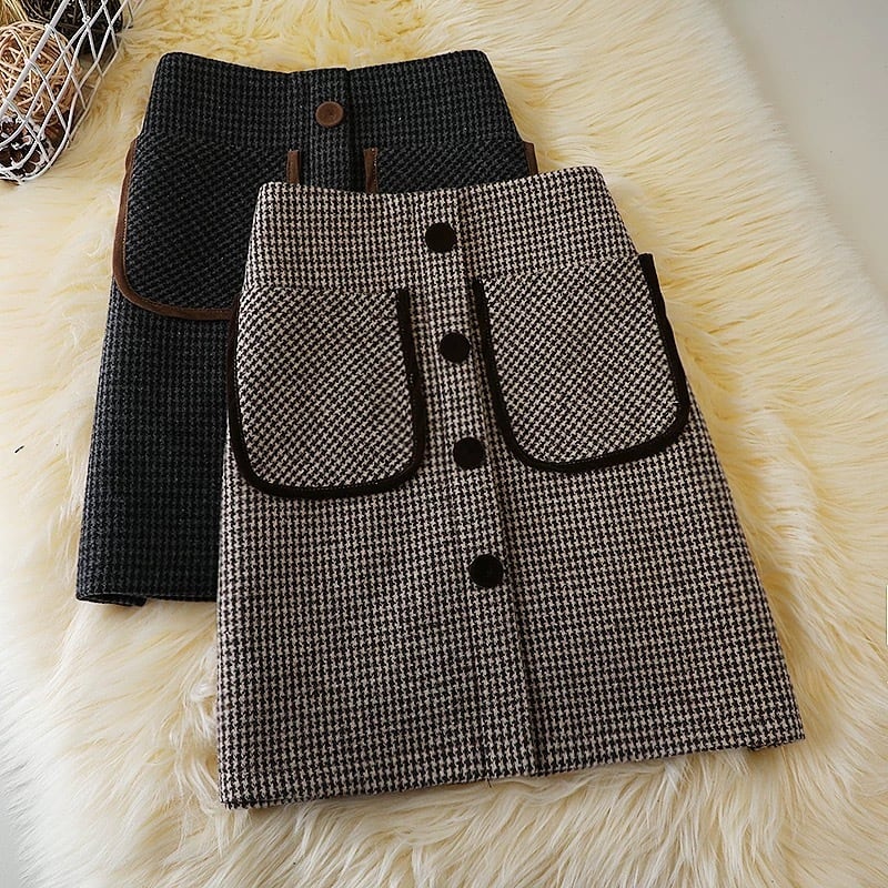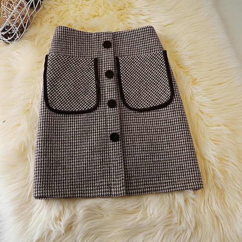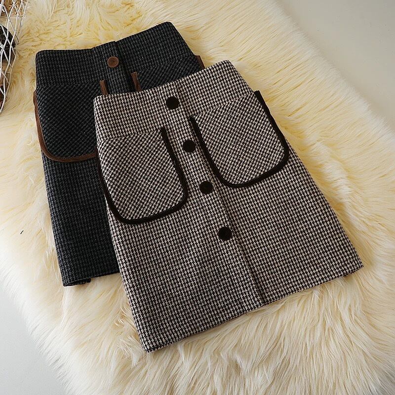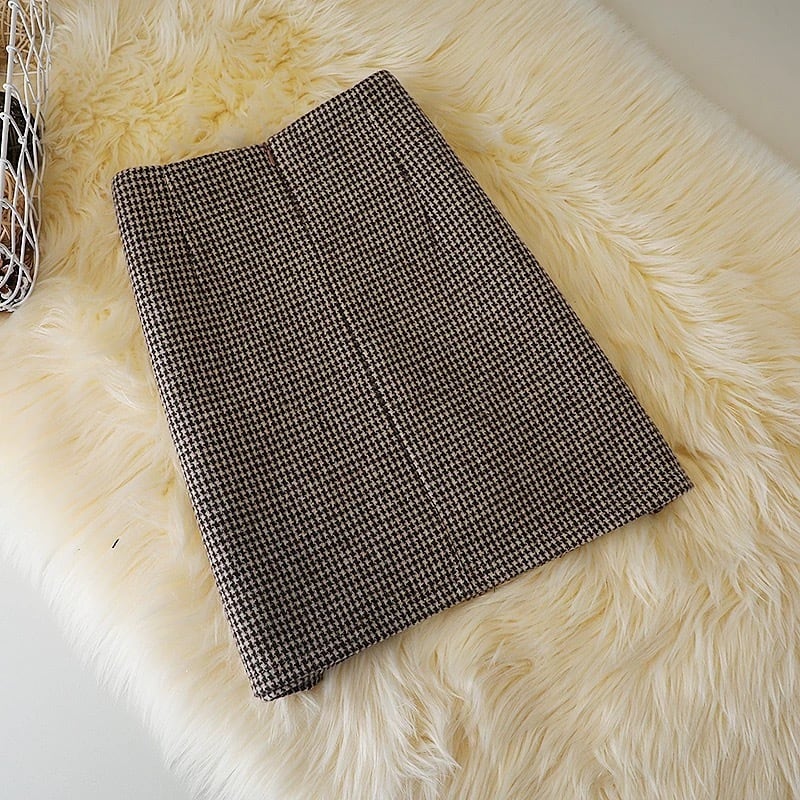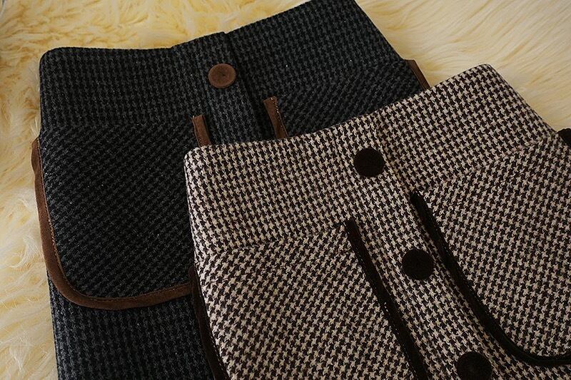【bottoms】S-2XLインパン付き千鳥柄ハイウエストスカート2色 HD0072