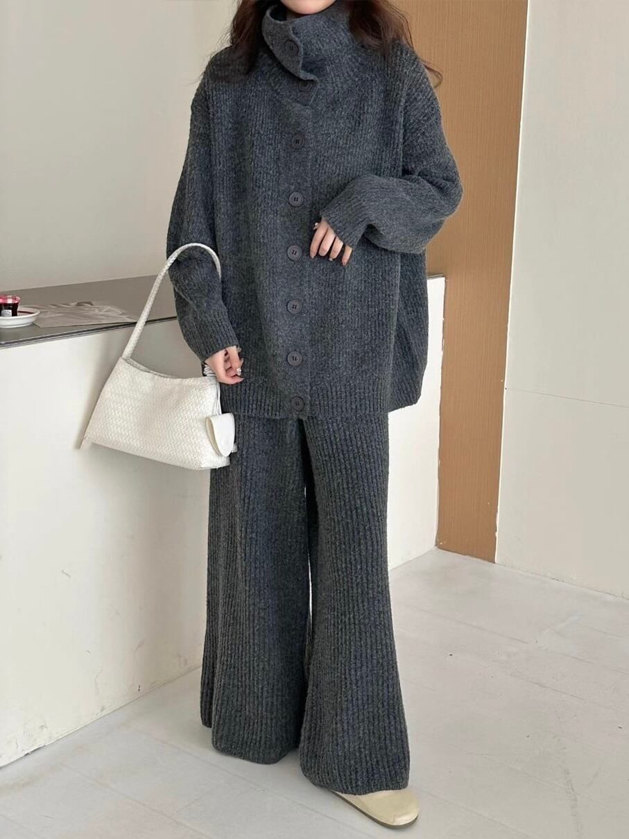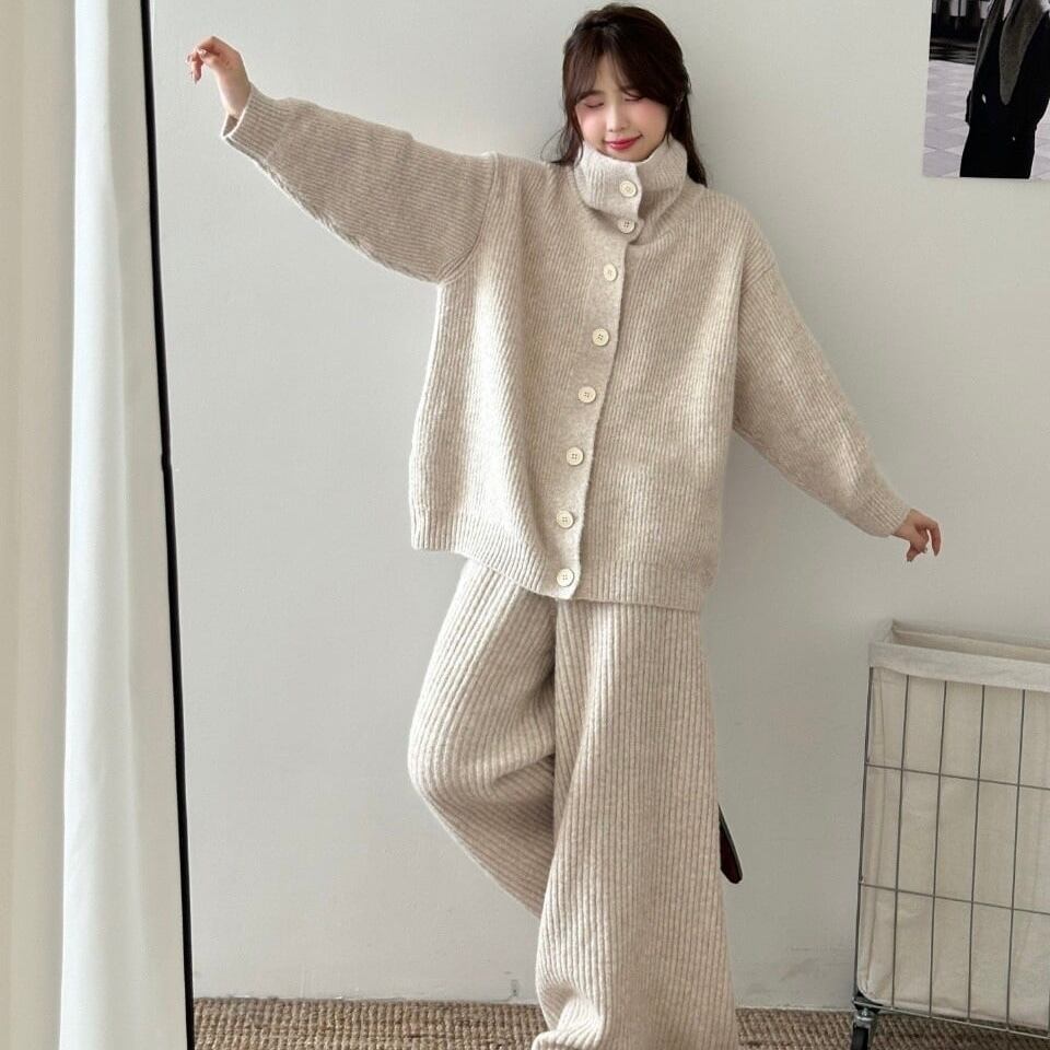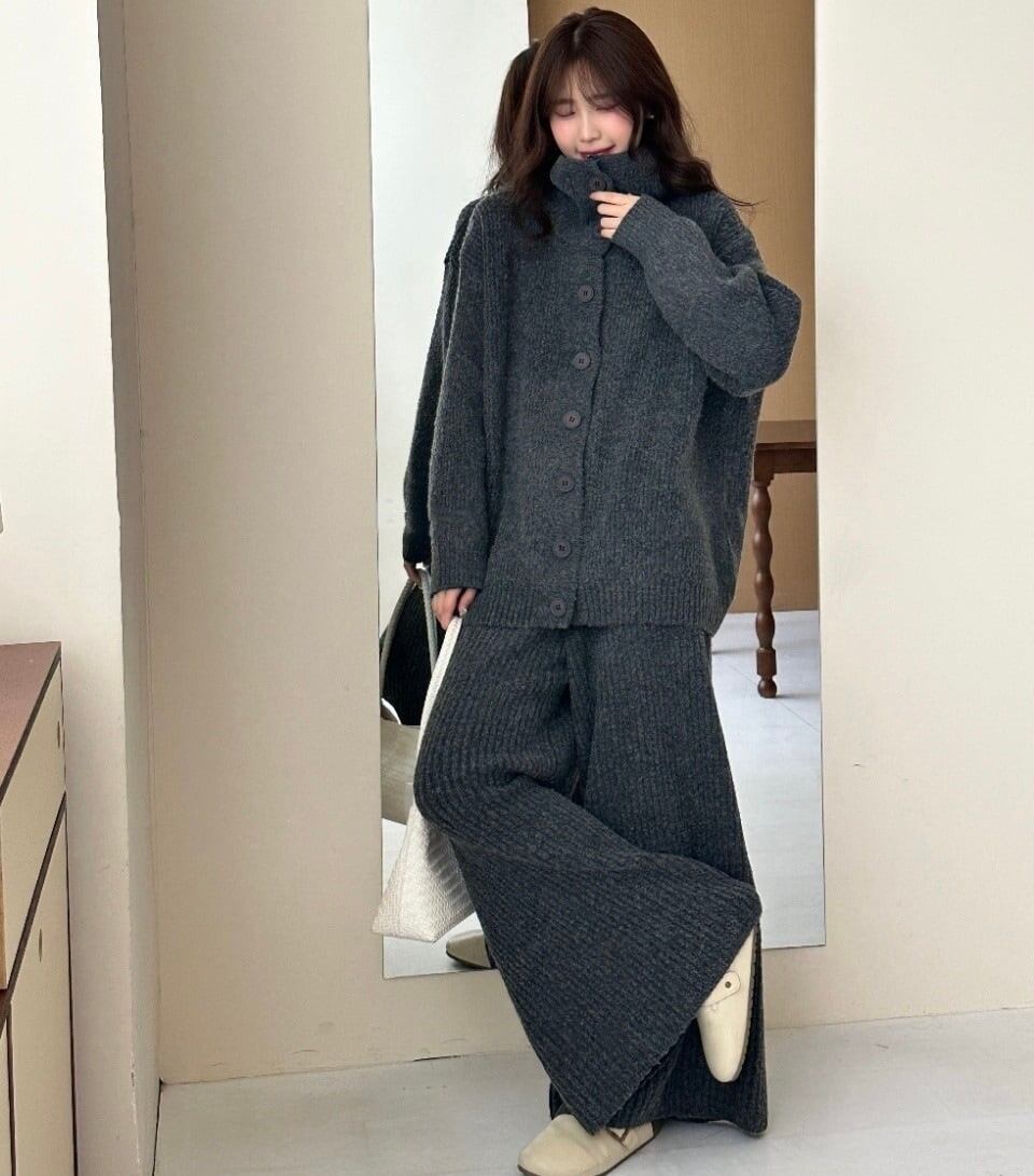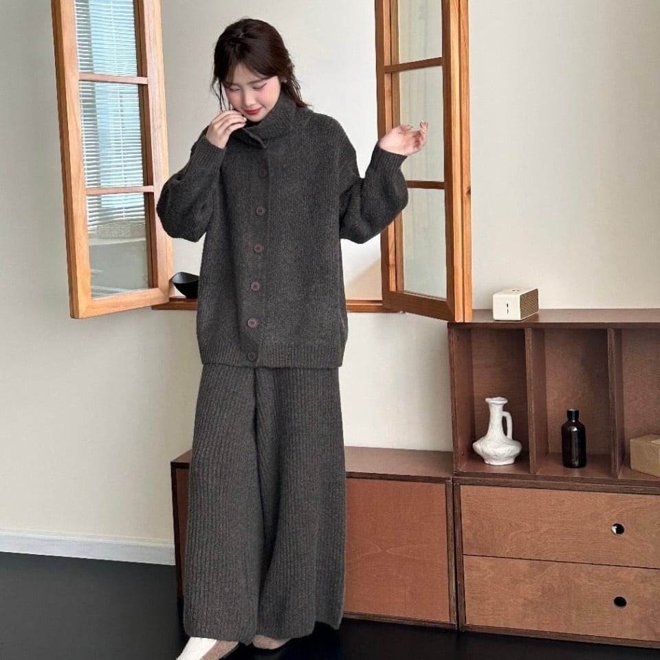 【set】ハイネックニットカーディガン×ワイドパンツセット3色 HK0288