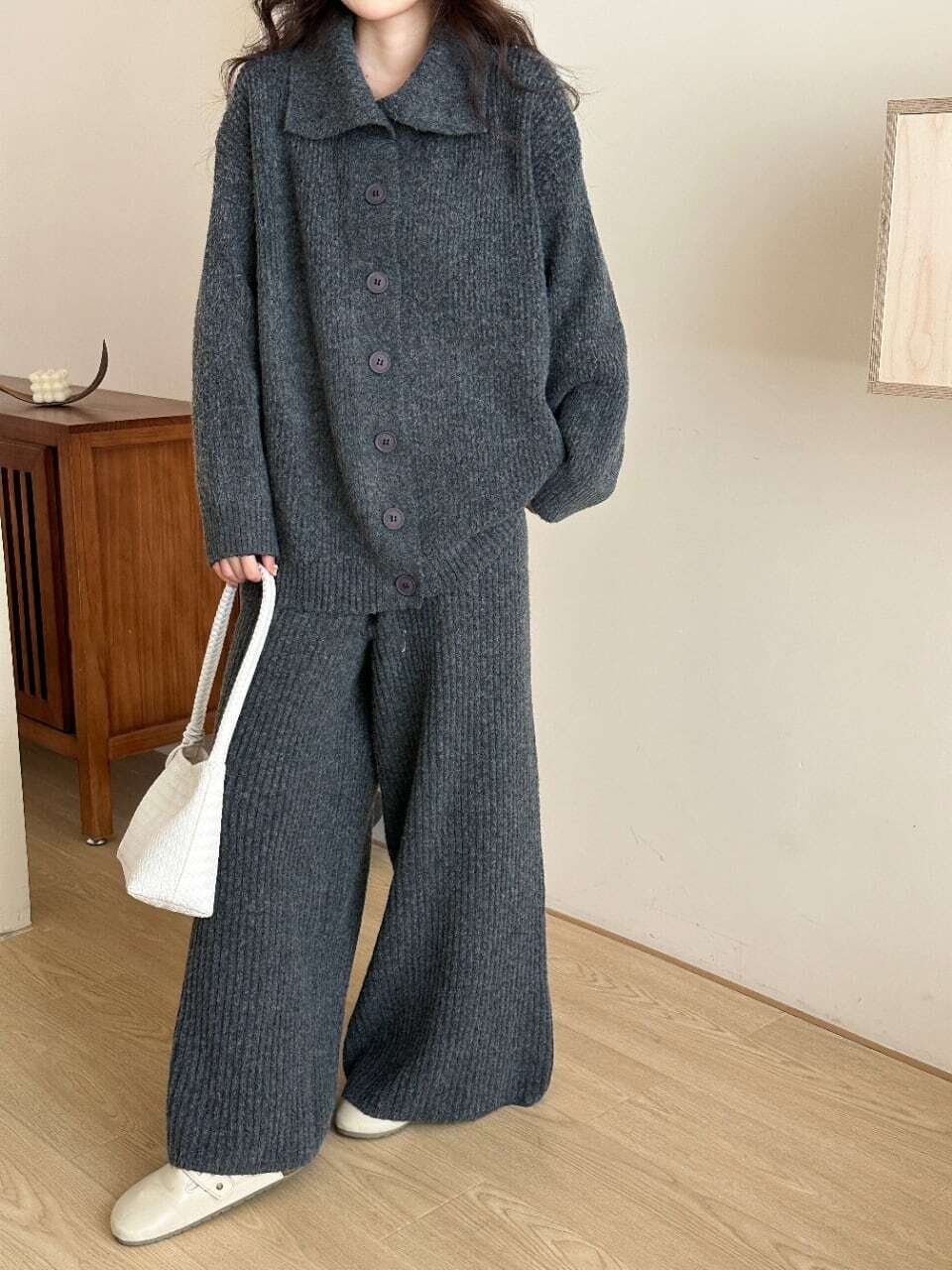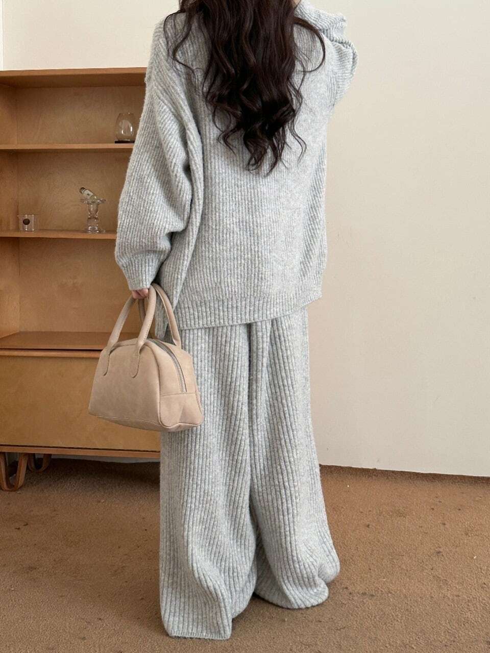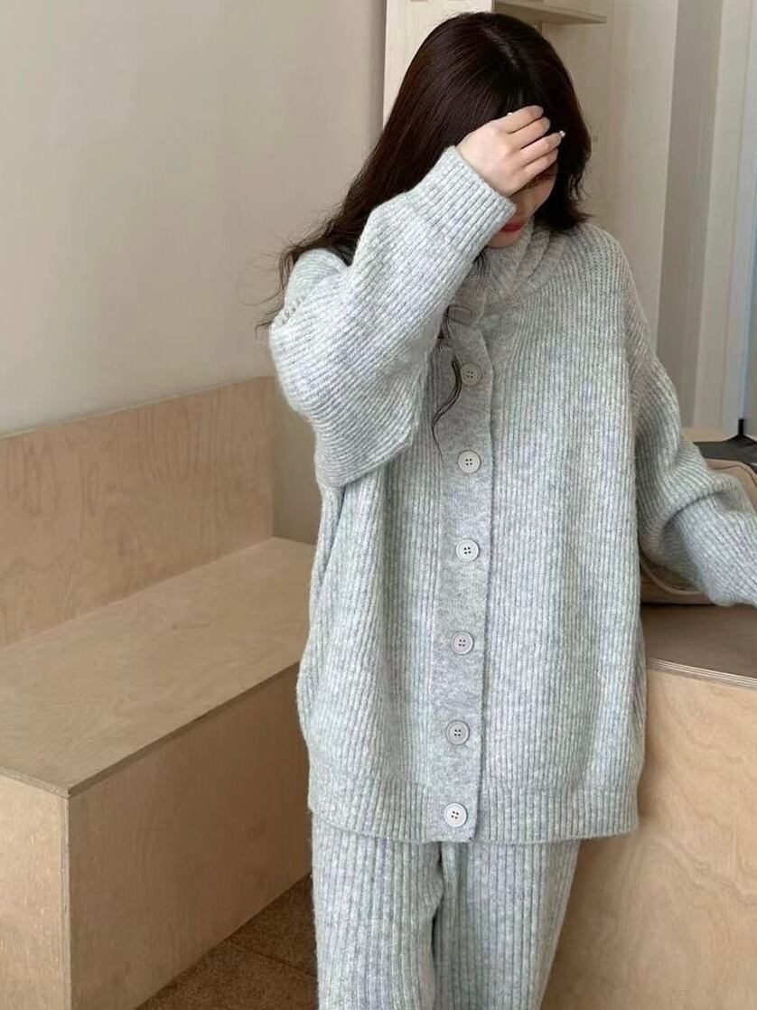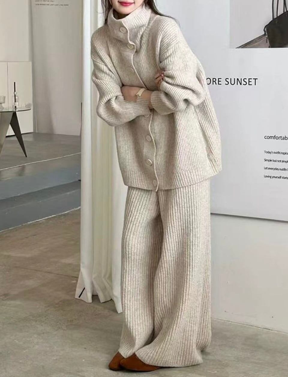 【set】ハイネックニットカーディガン×ワイドパンツセット3色 HK0288