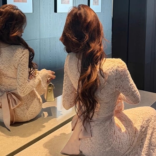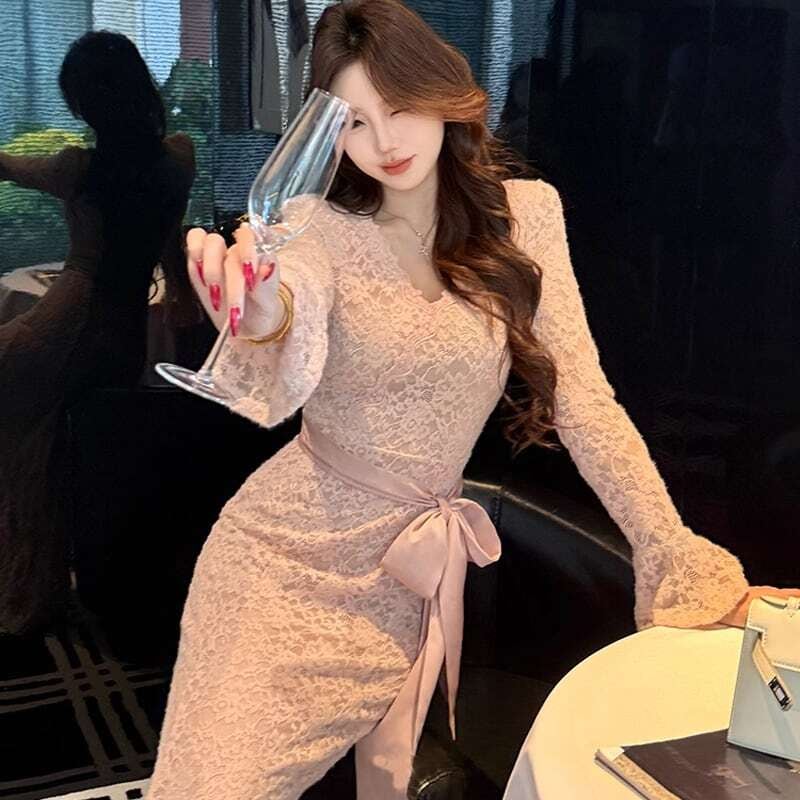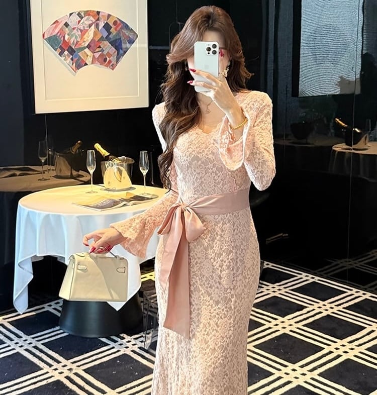 【dress】リボン付きロングレースワンピース HK0291