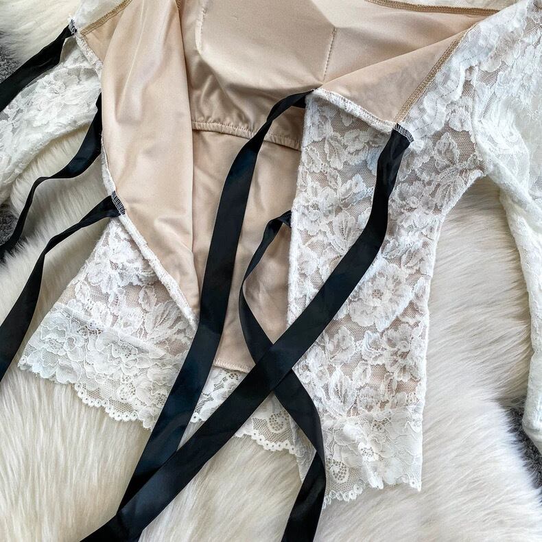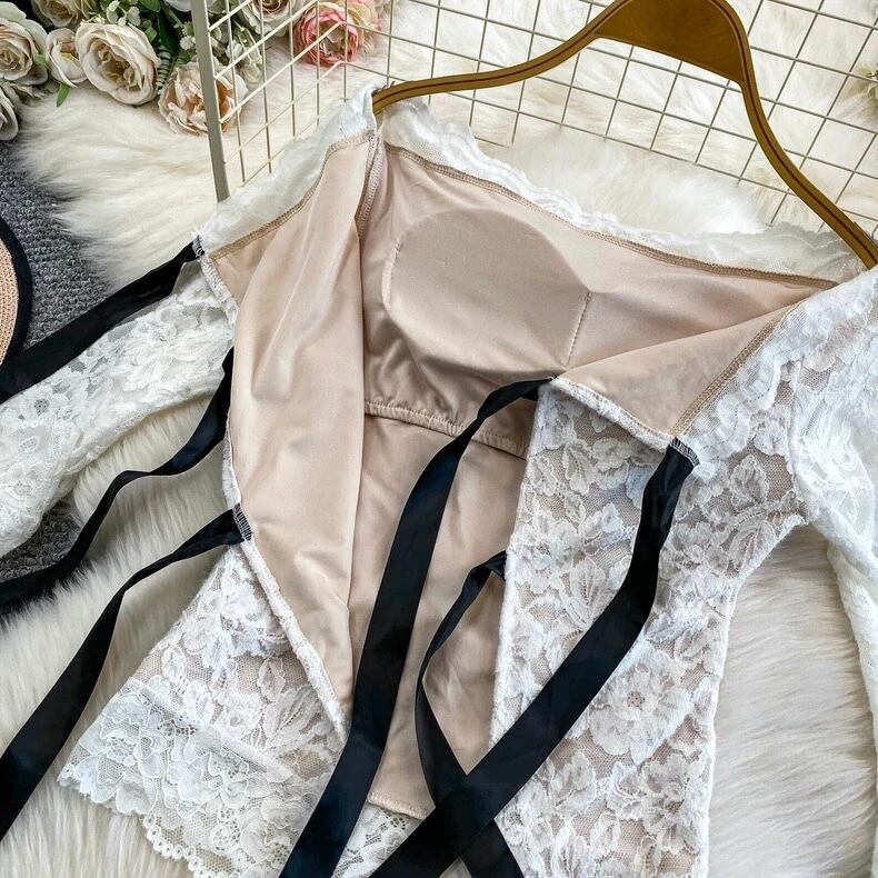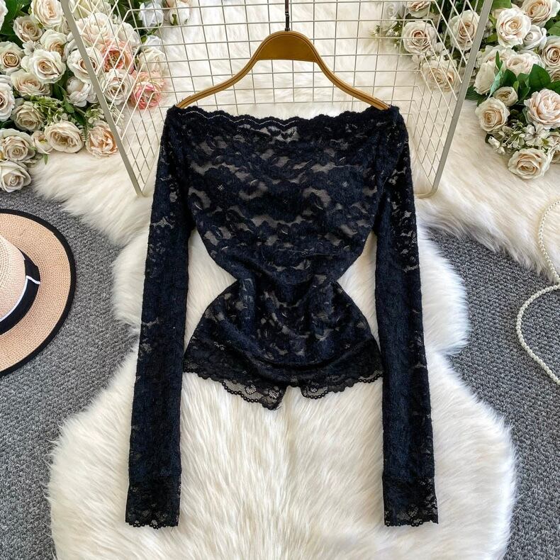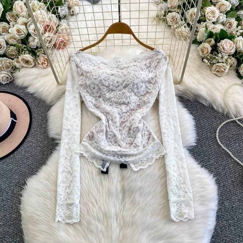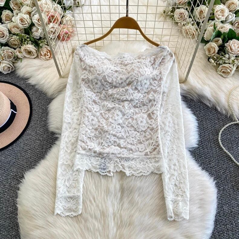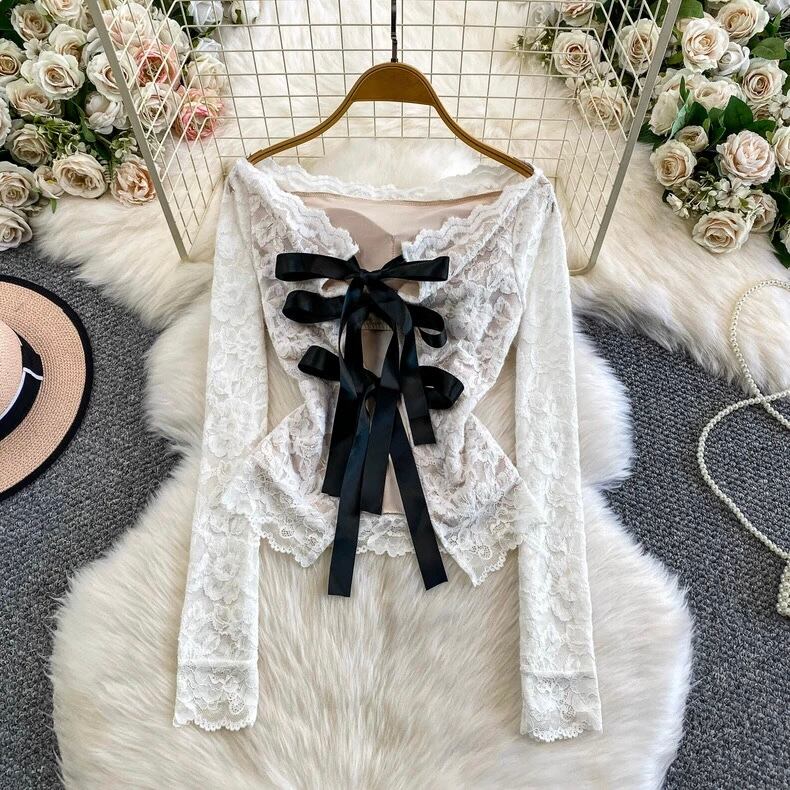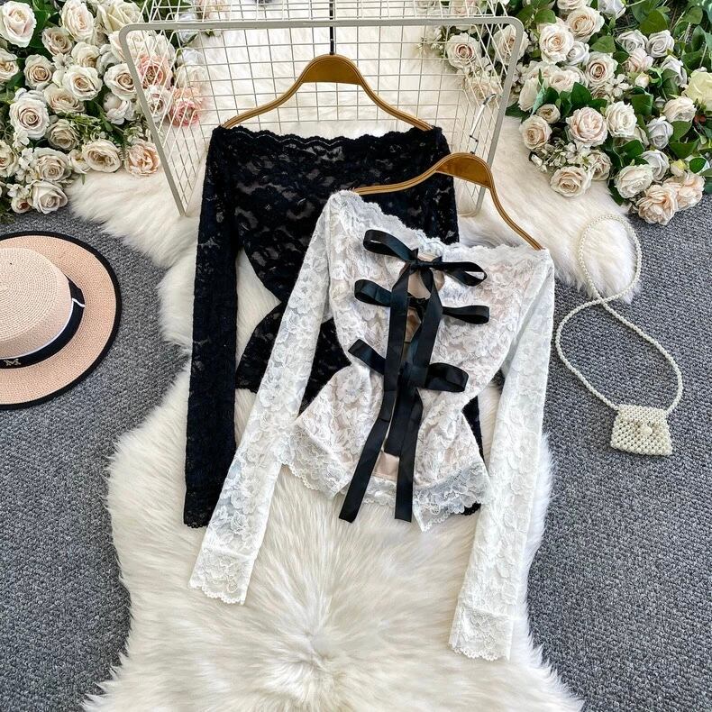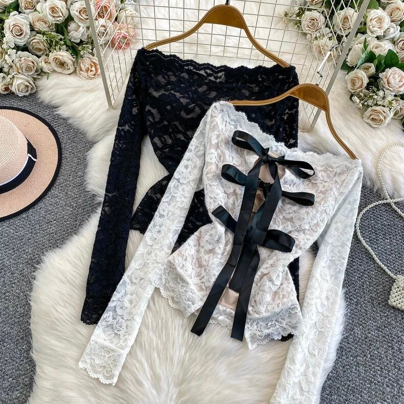 【tops】オフショルダーバックデザインレーストップス2色 HD0092