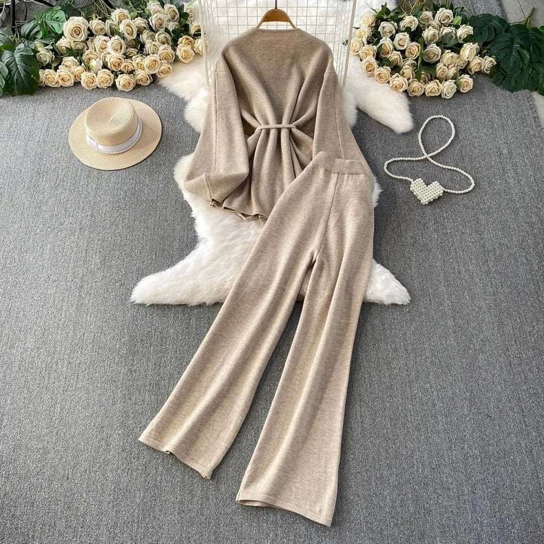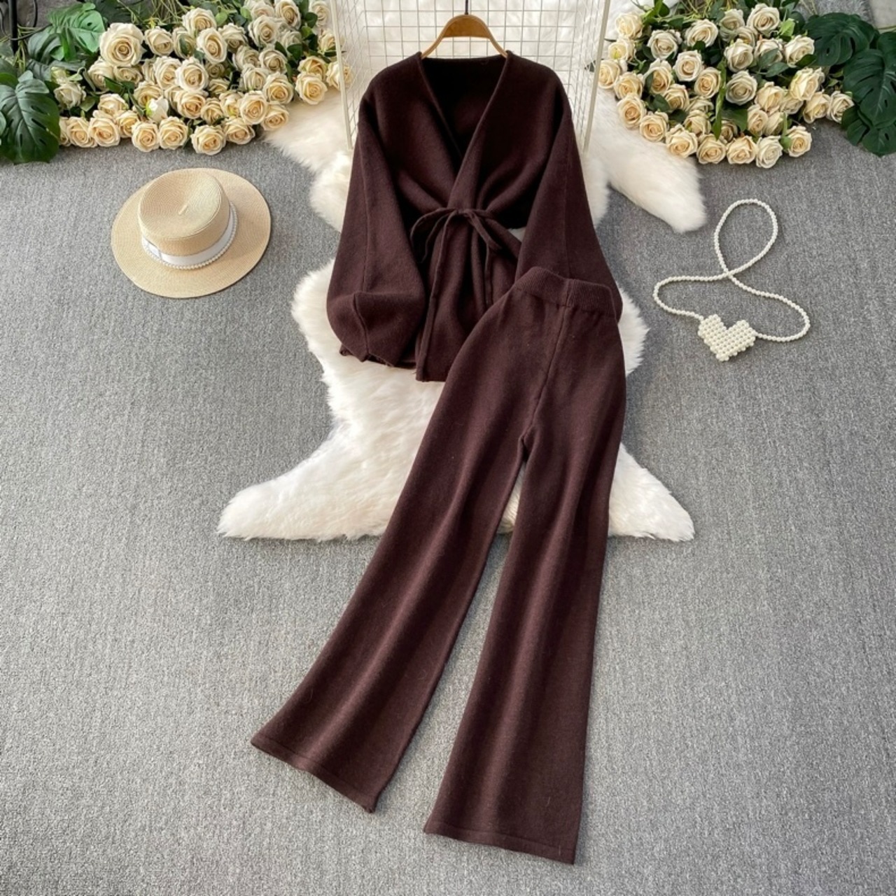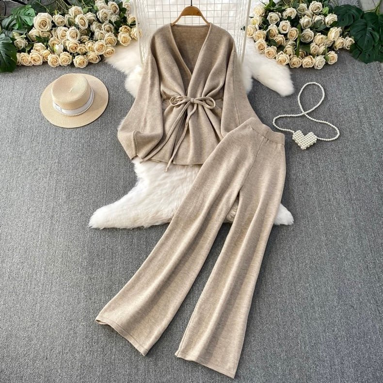 【set】カーディガンxワイドパンツ3色 HD0093
