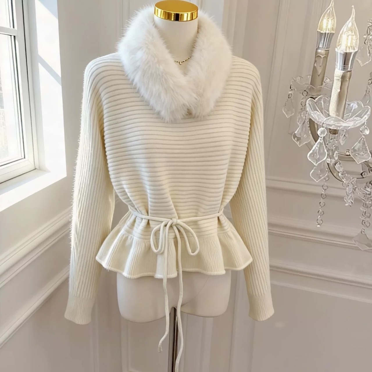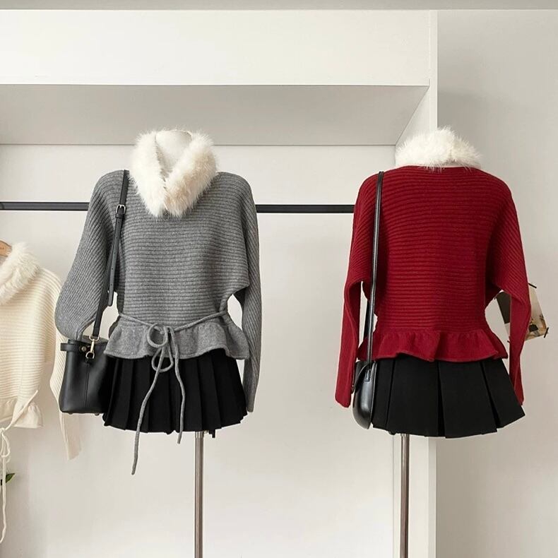 【tops】ファー付きペプラムトップス4色 HD0098