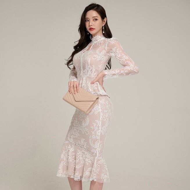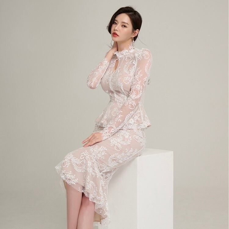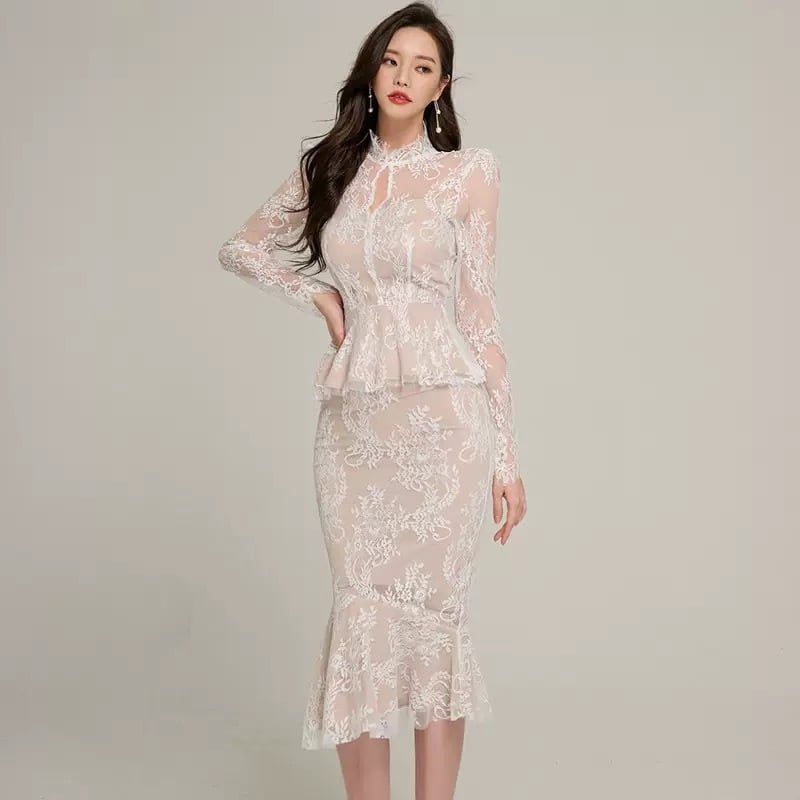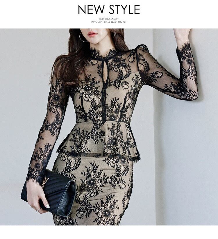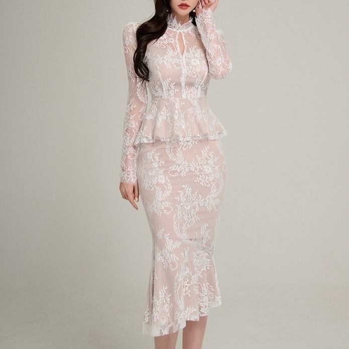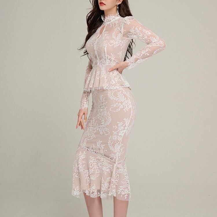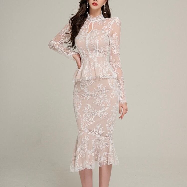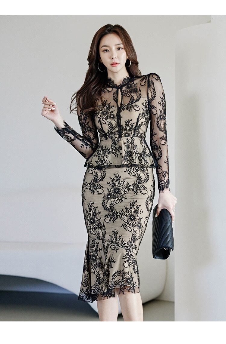 【set】シースルーレーストップスxマーメイドスカート2色 HD0099
