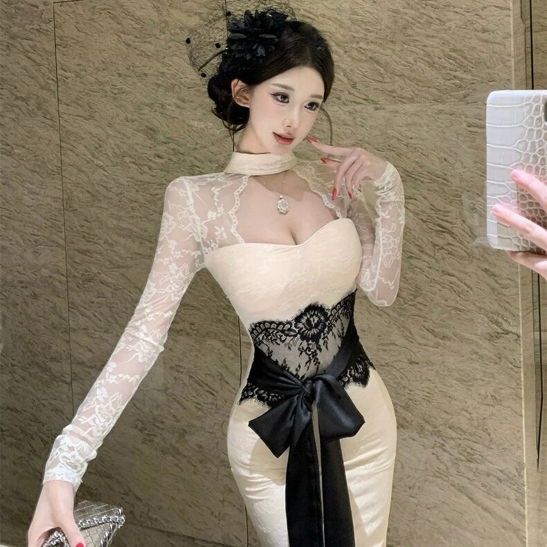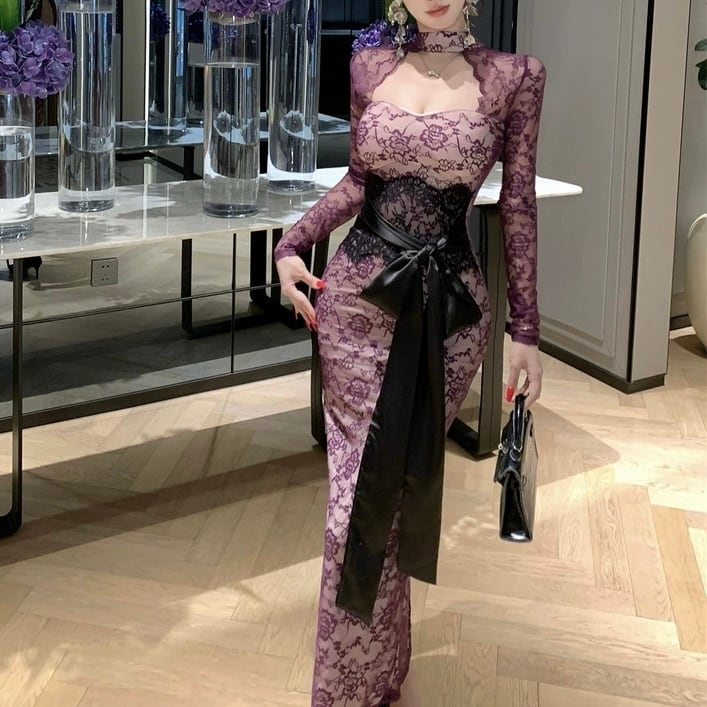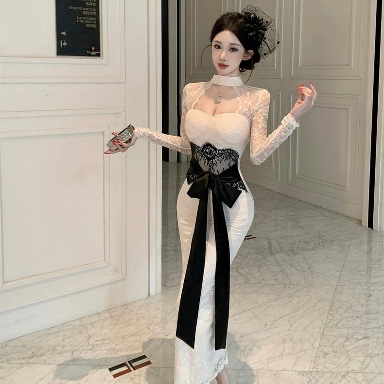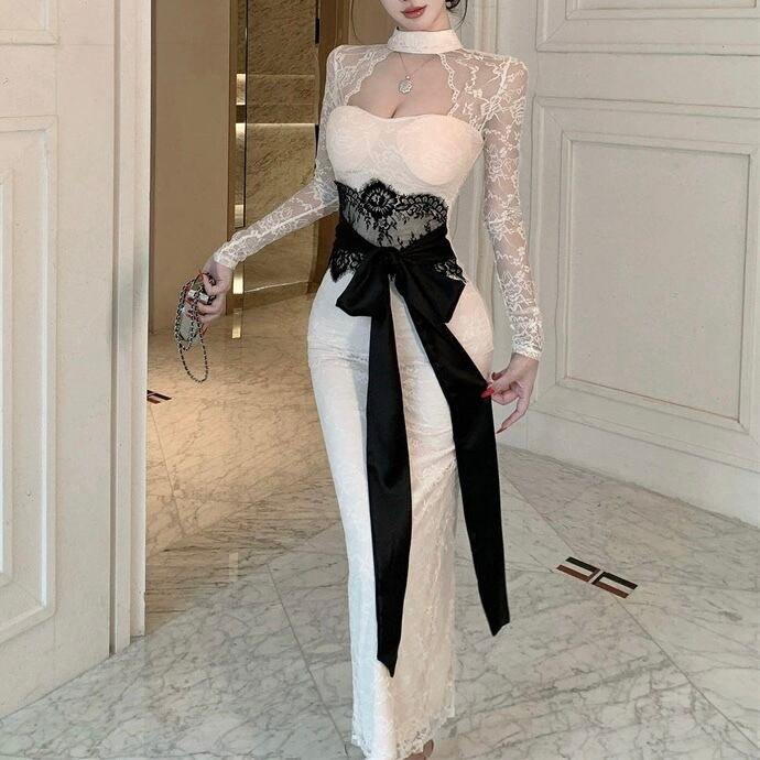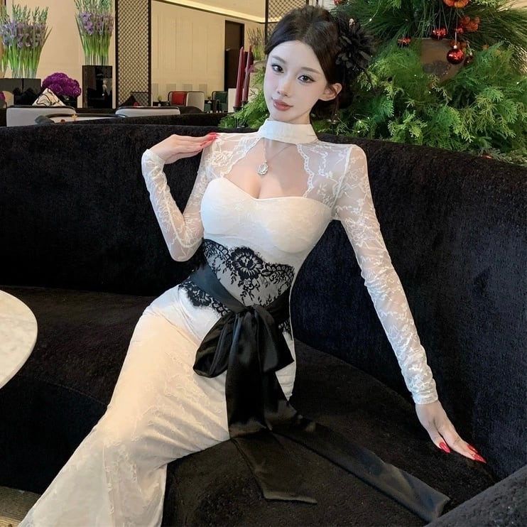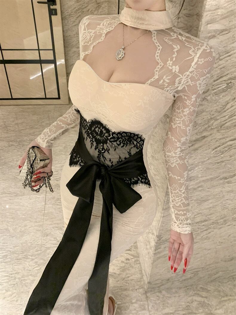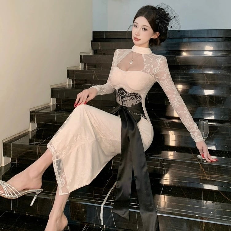 【dress】リボンベルトレースワンピース2色 HD0103