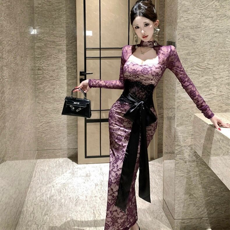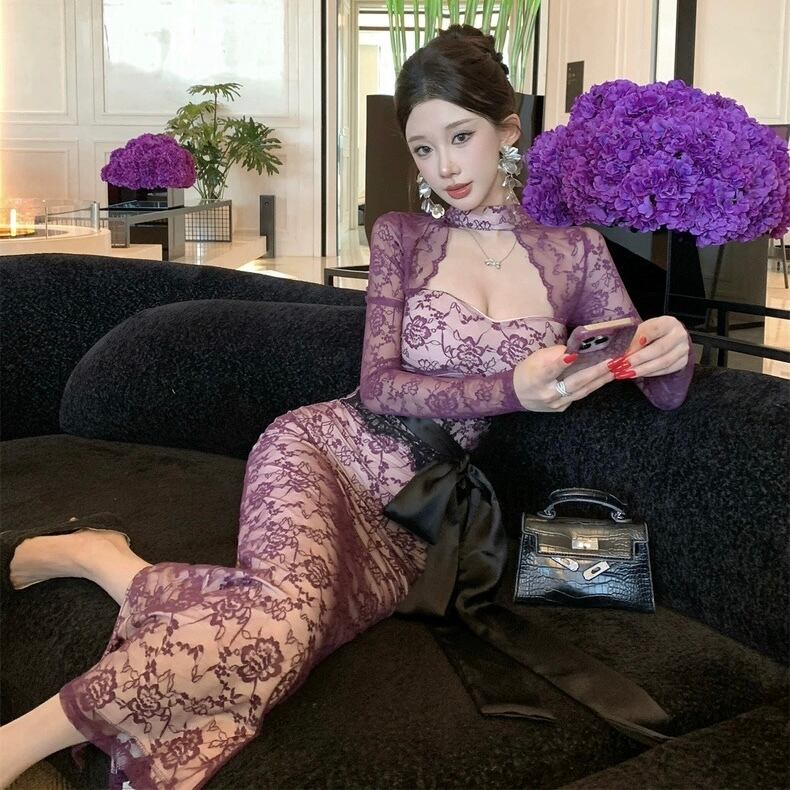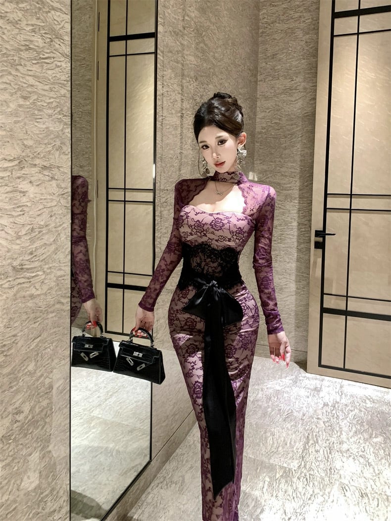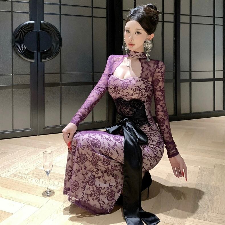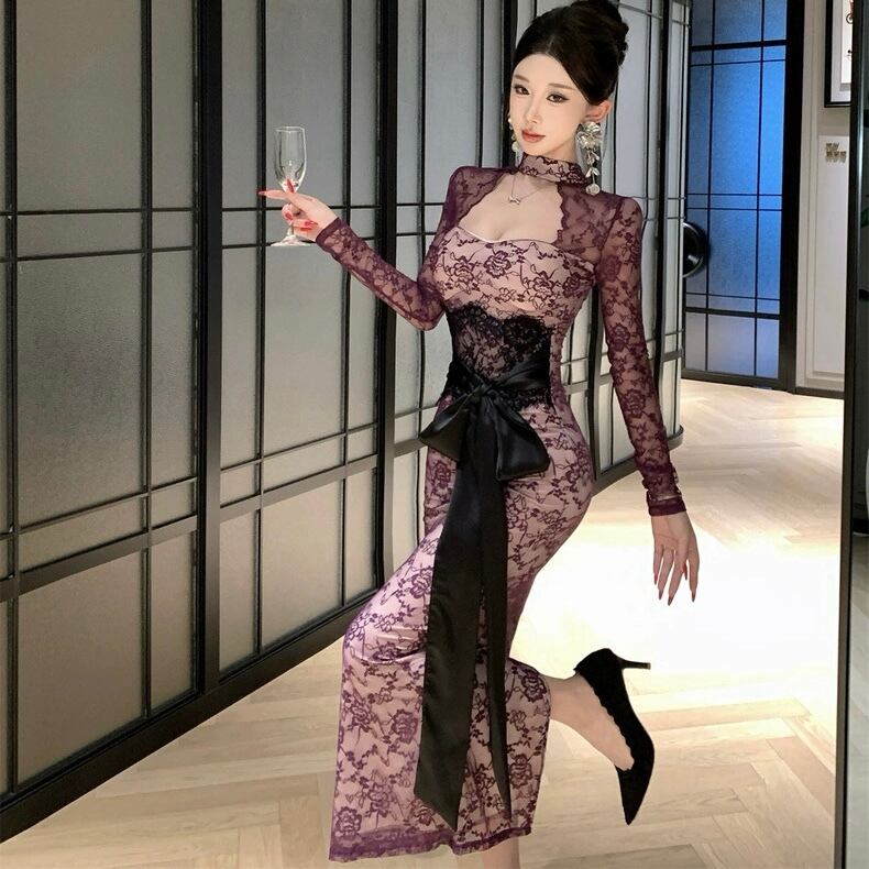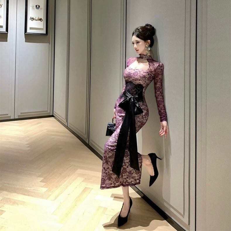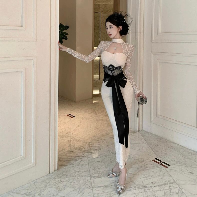 【dress】リボンベルトレースワンピース2色 HD0103